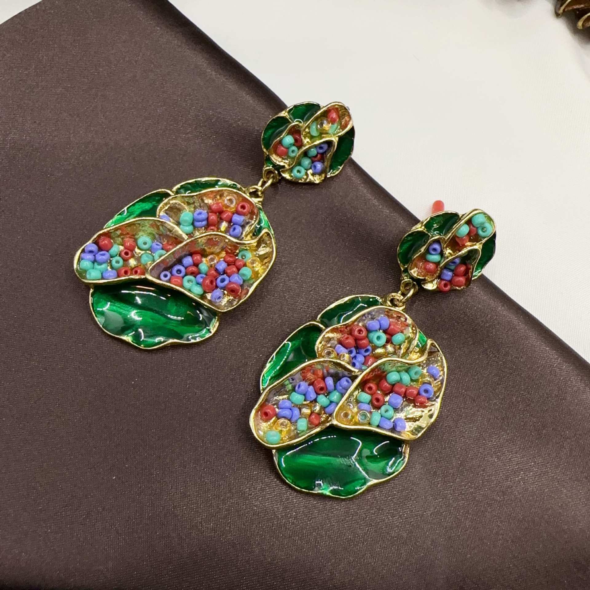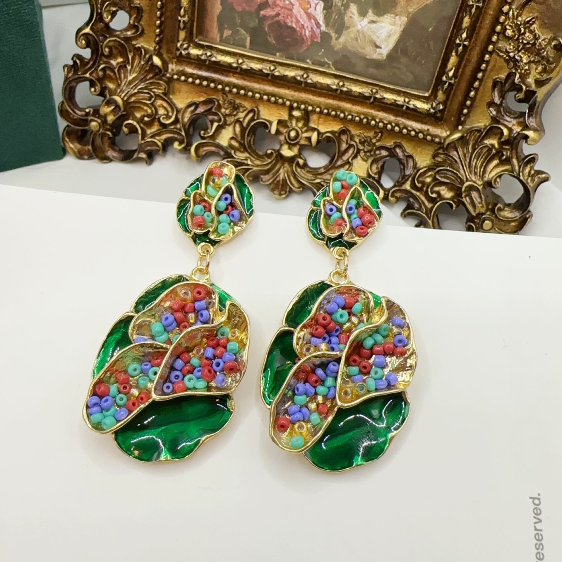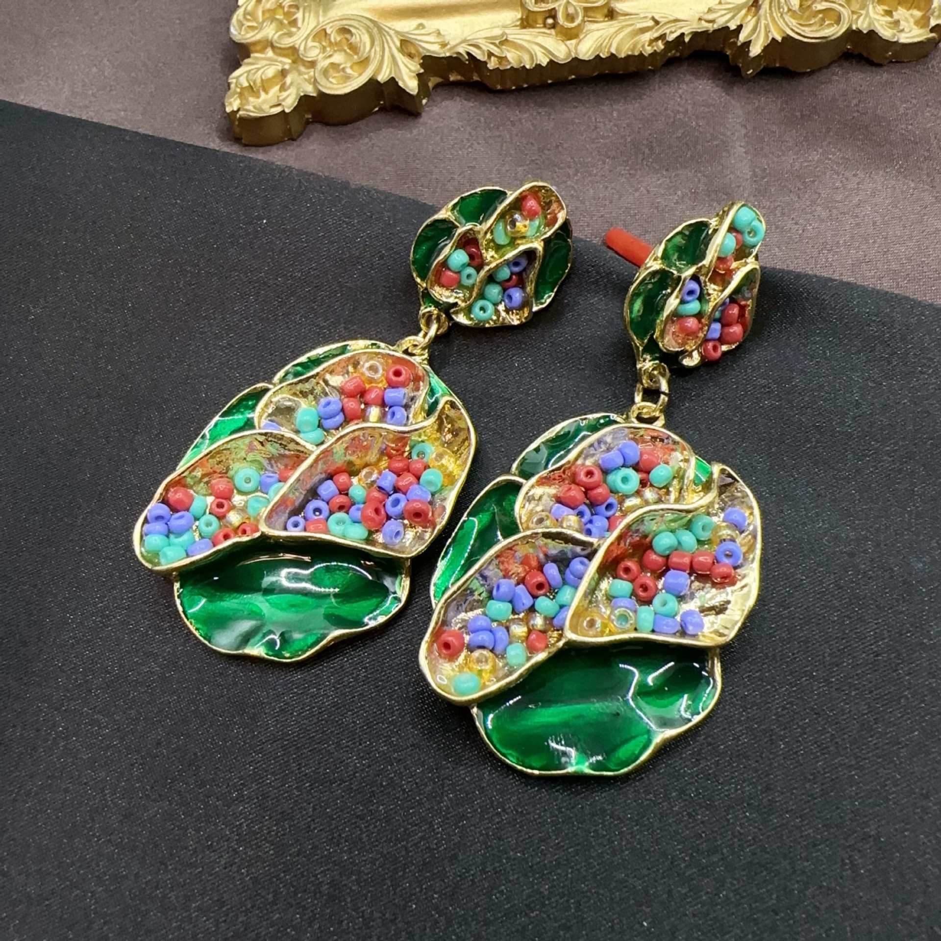 Pendientes retro largos exagerados de estilo europeo y americano, pendientes elegantes de moda para mujer, pendientes de flores que combinan con todo, pendientes para mujer