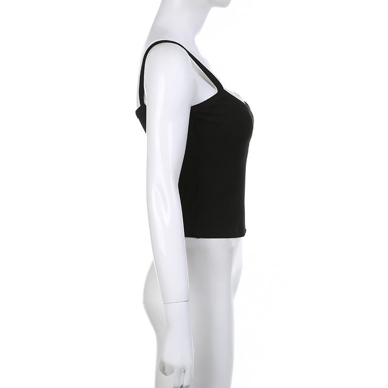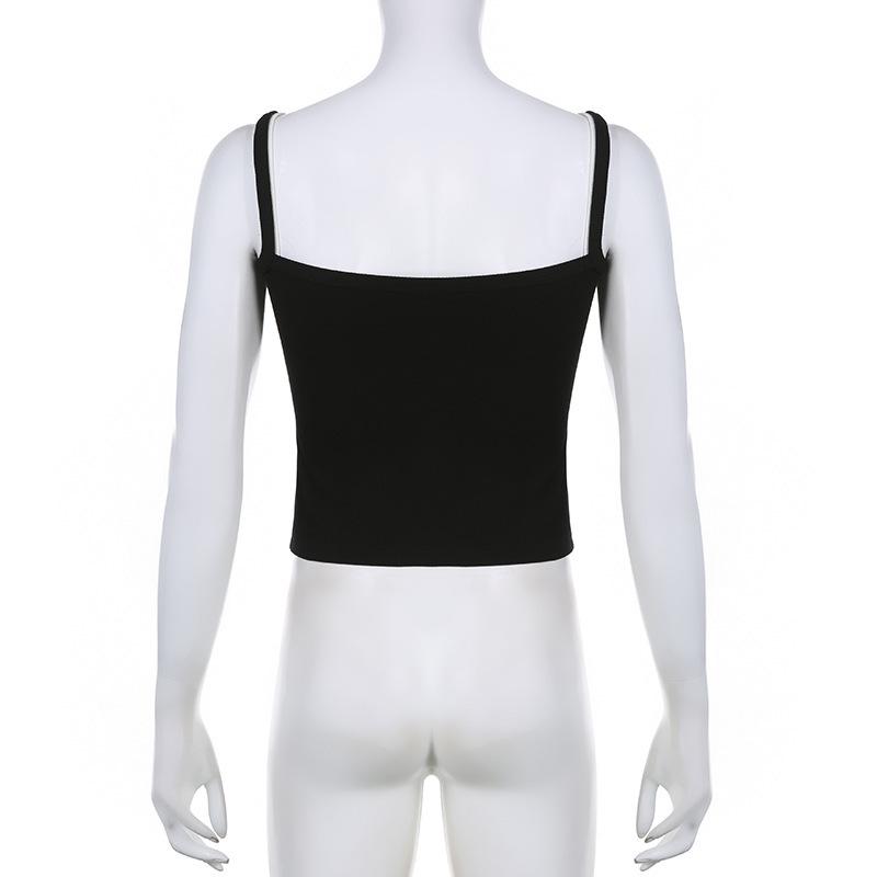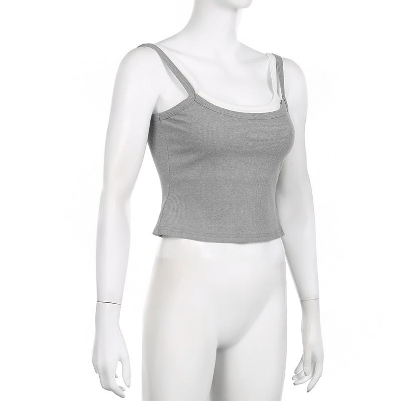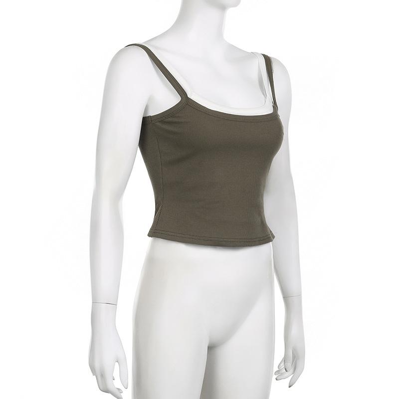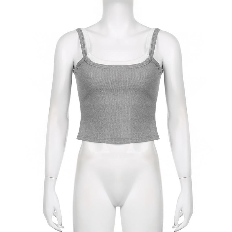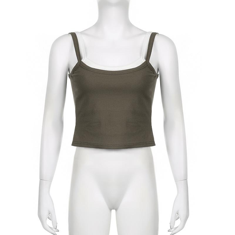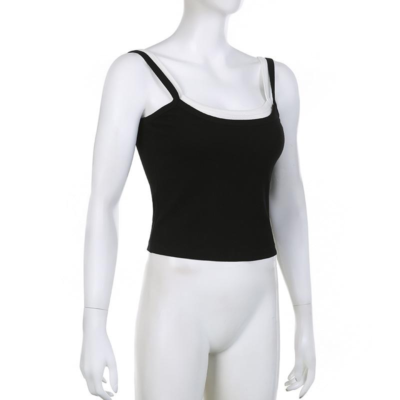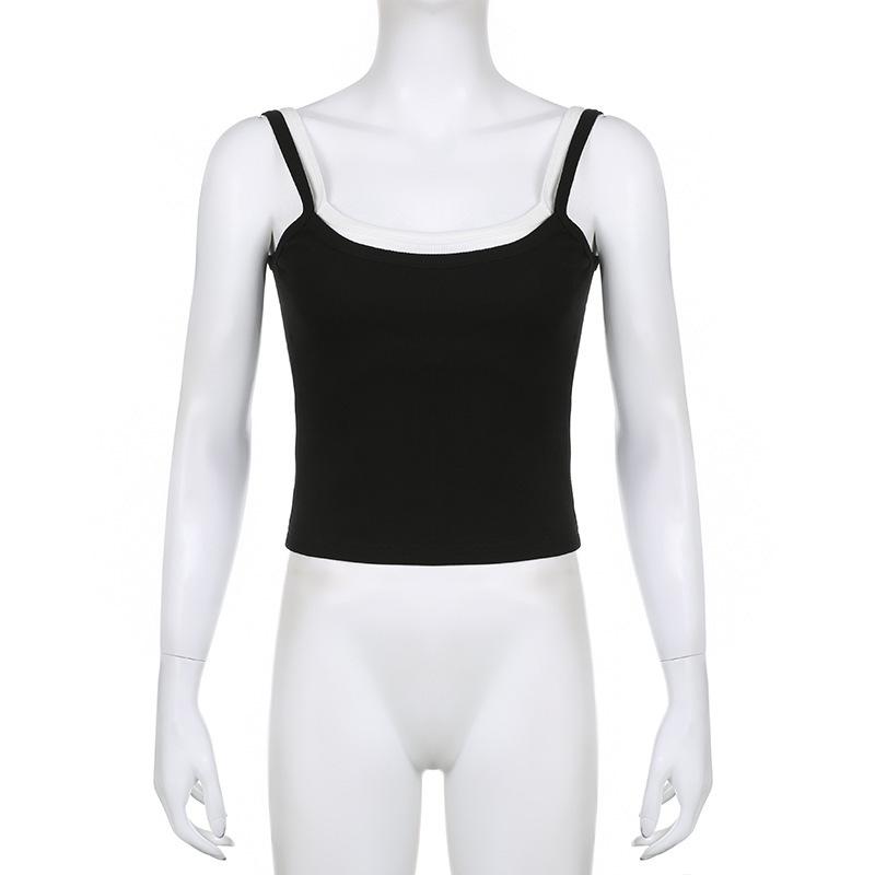 Estilo americano color contraste falso dos piezas tirante pequeño femenino chica caliente sexy ropa exterior doble tirante delgado chaleco básico top corto verano