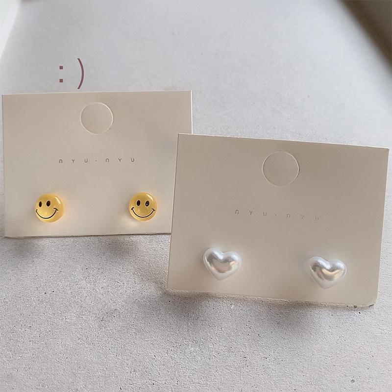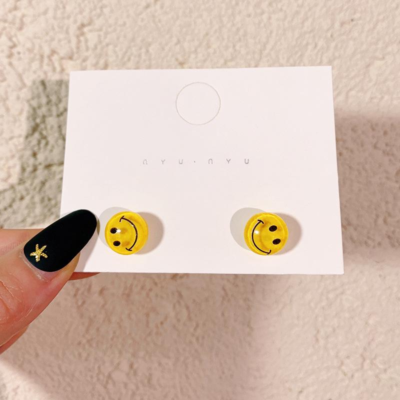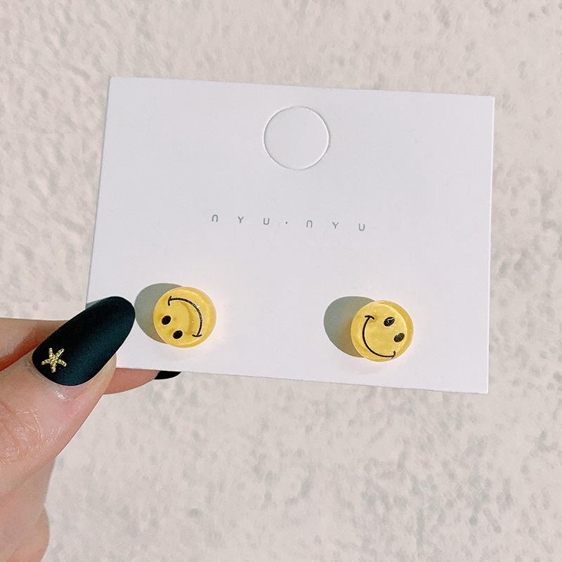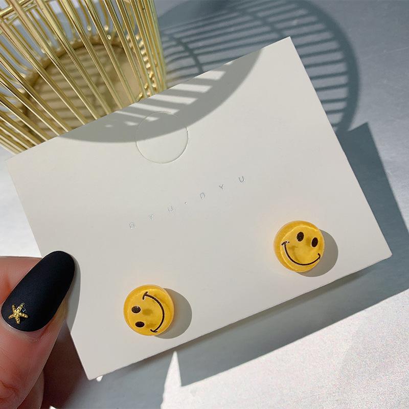 Pendientes pequeños con cara sonriente de Vigor Girl 2021, moda femenina, con explosiones de colores dulces frescos y famosos de Internet.