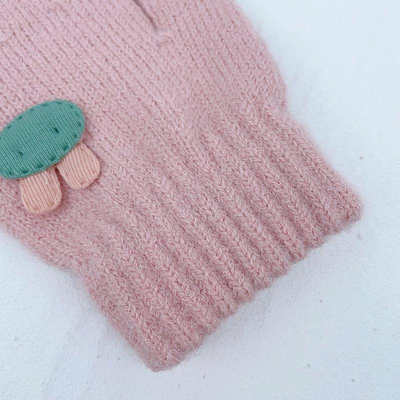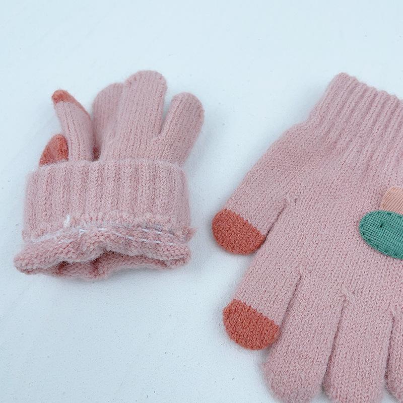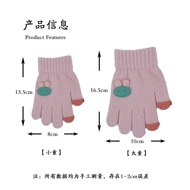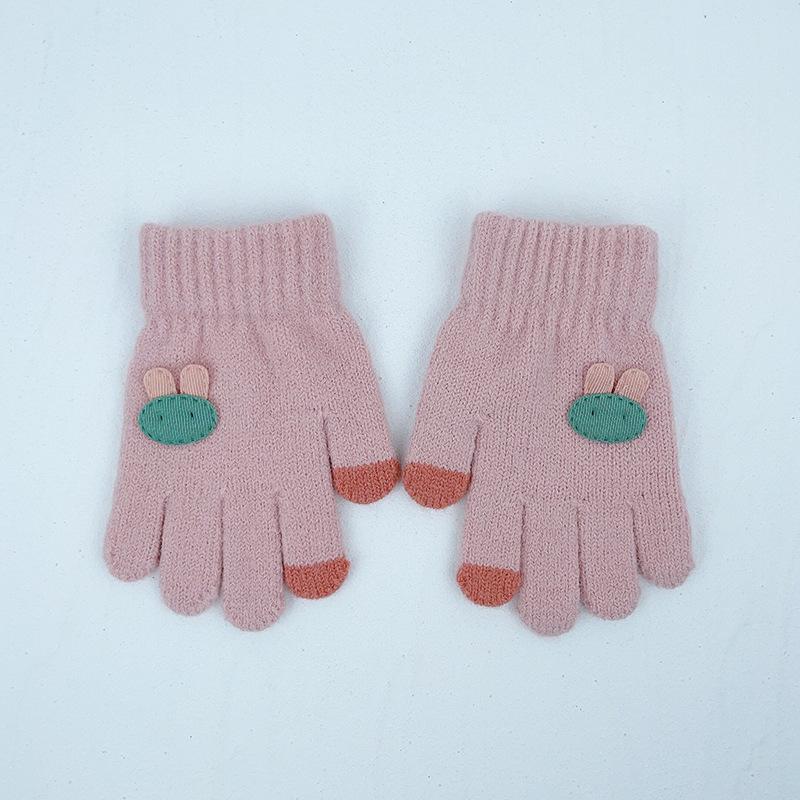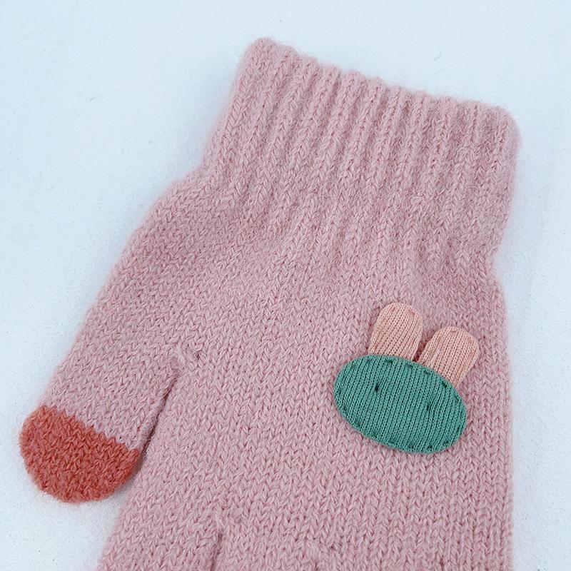 Pink-(rabbit cloth stickers)-Children's knitted gloves