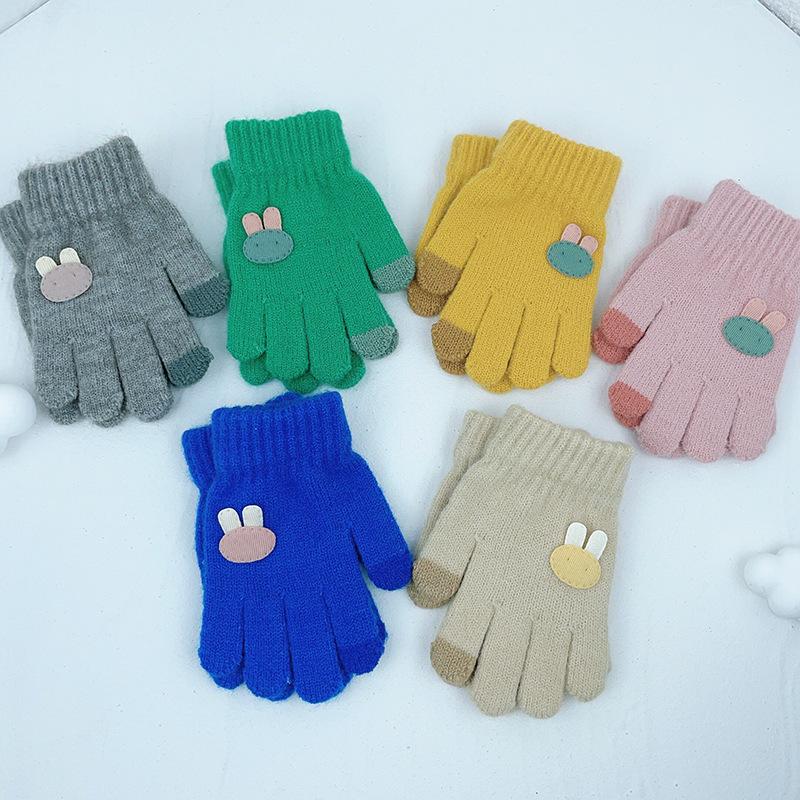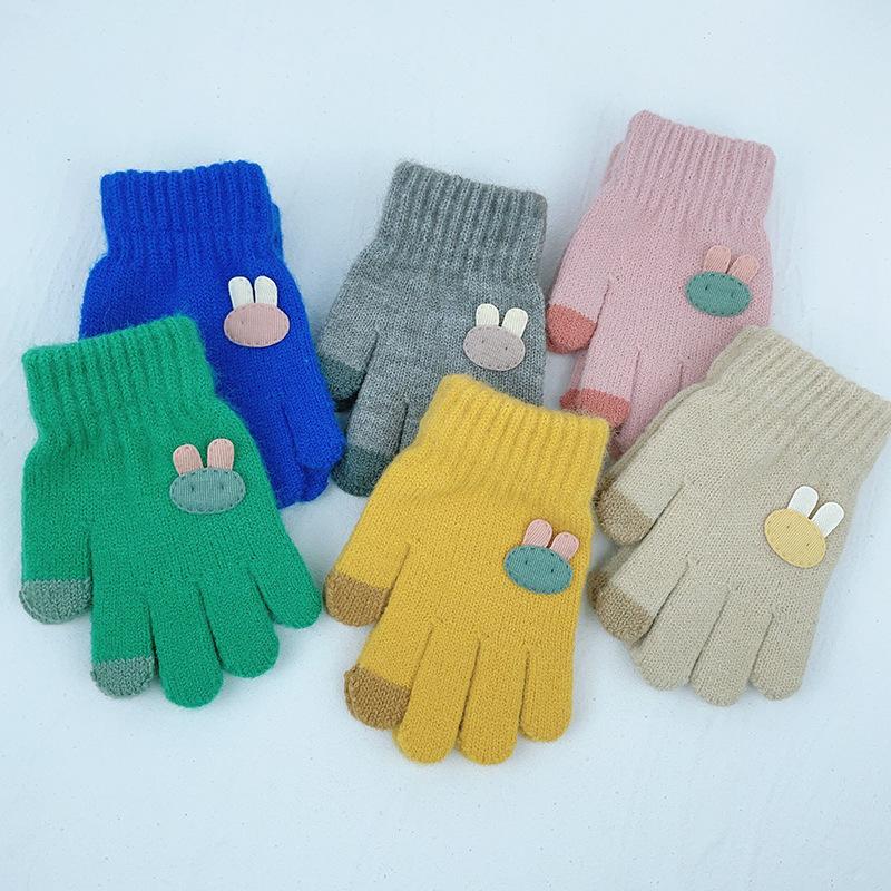 Guantes de lana para niños de otoño e invierno, para niños y niñas, resistentes al frío, cálidos y bonitos, con dibujos de conejos, de punto de cinco dedos para bebés.