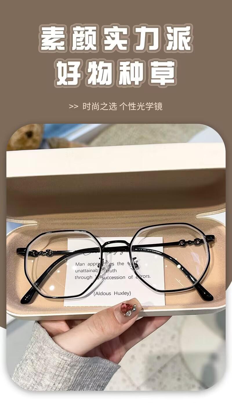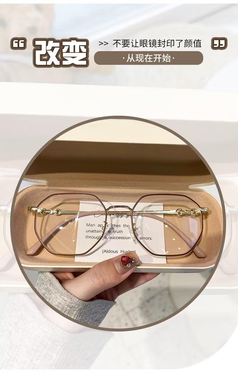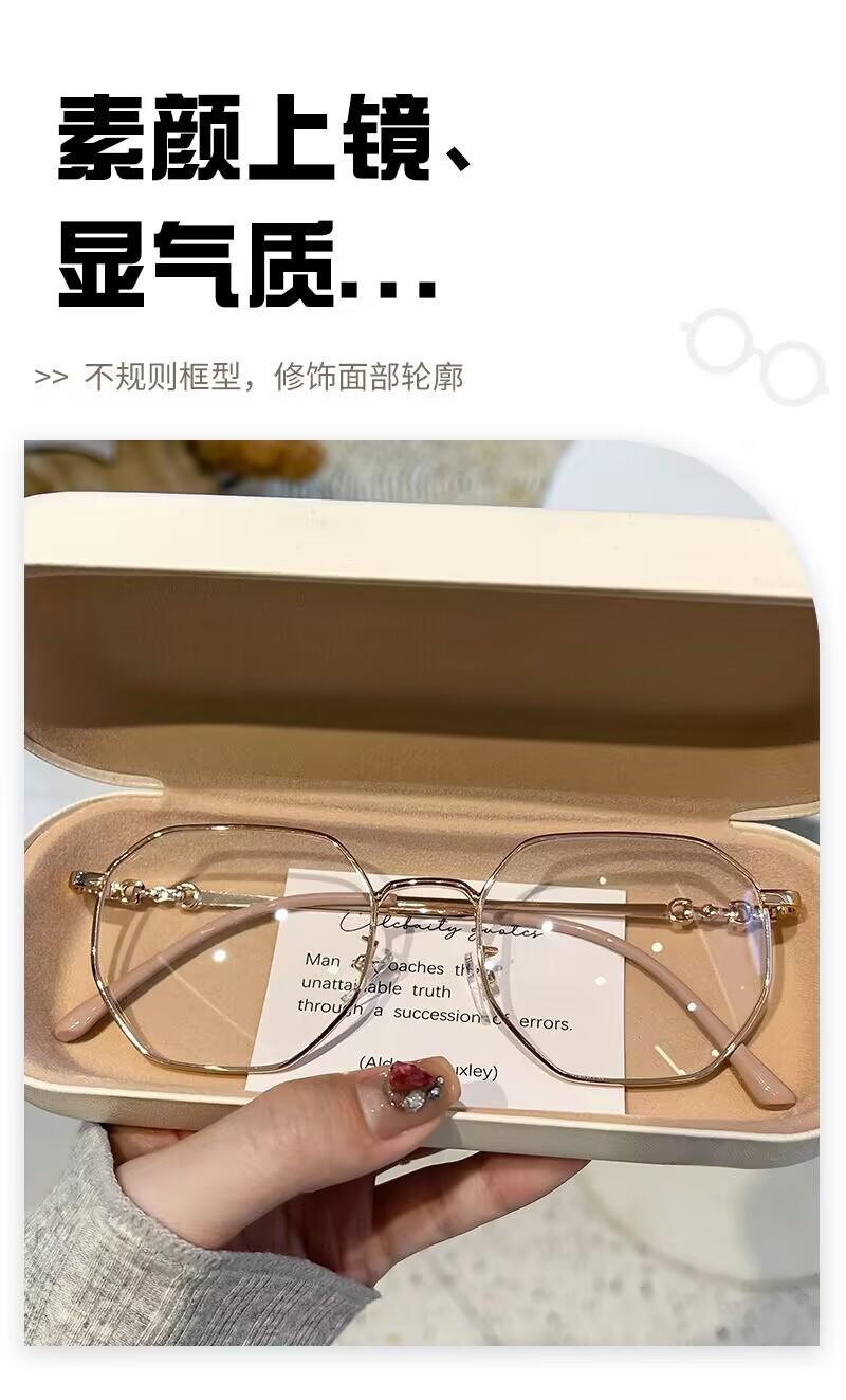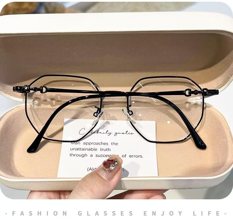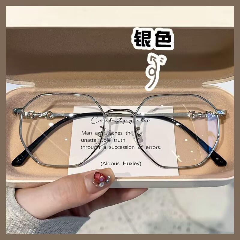 2023 nuevas gafas poligonales elegantes de moda versátiles gafas de miopía para niñas gafas lisas con marco de metal