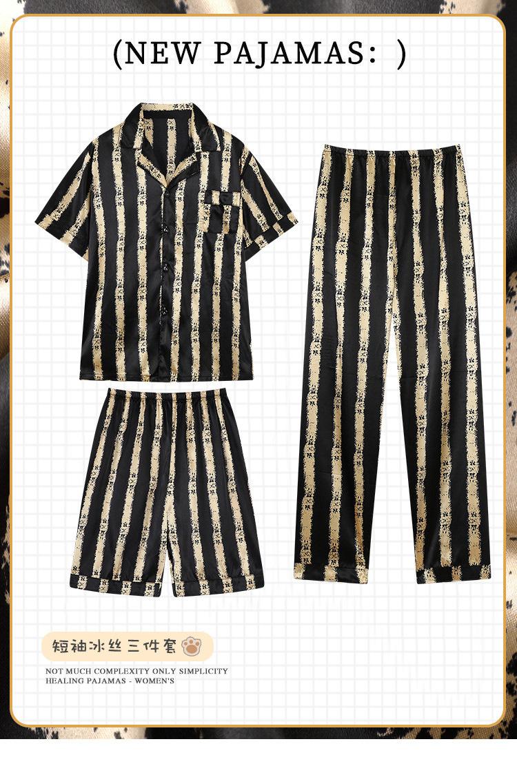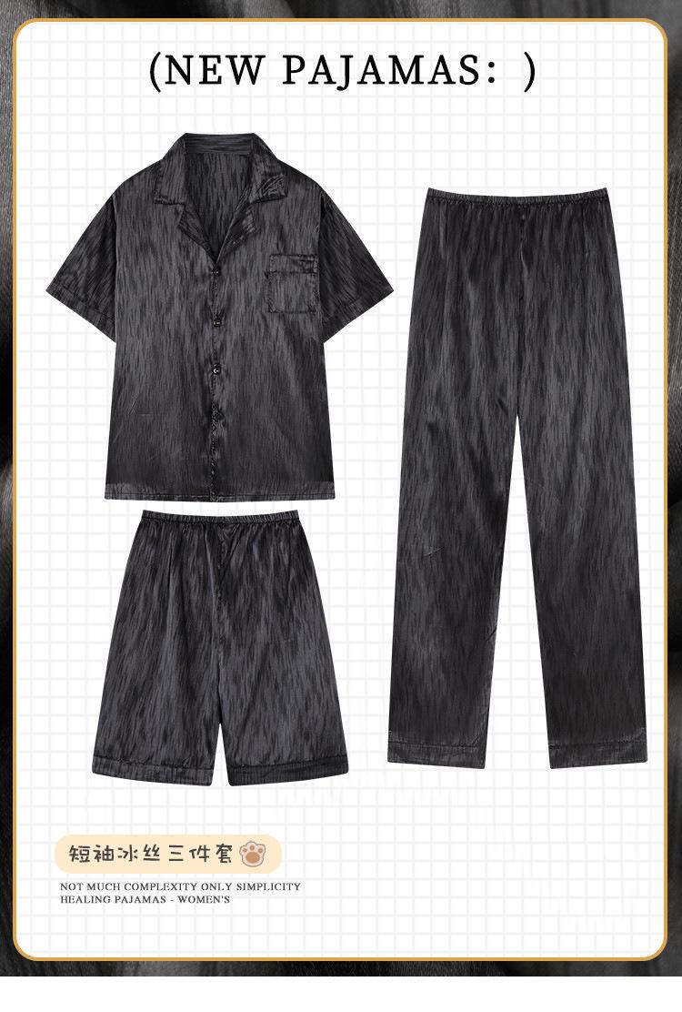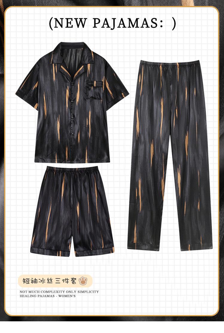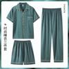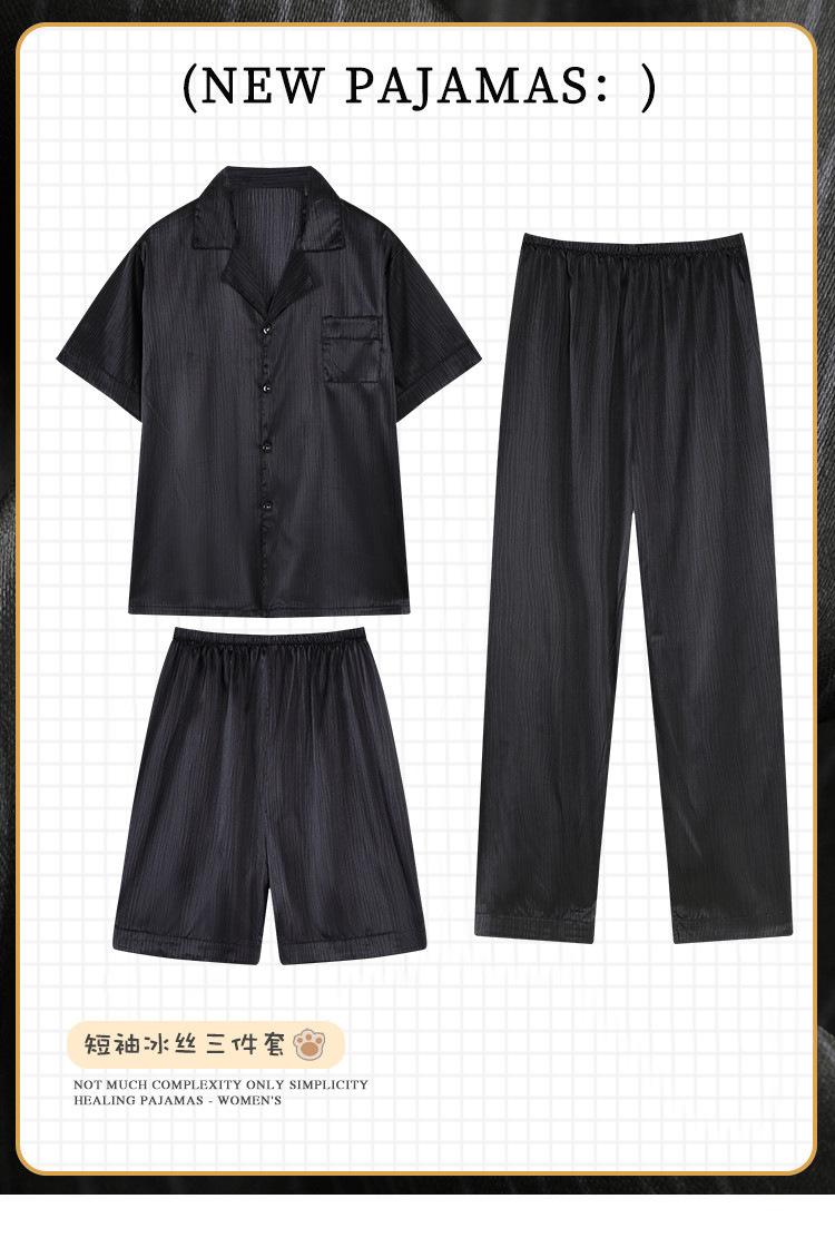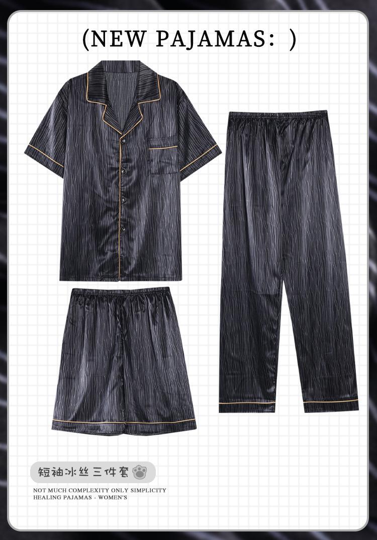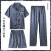 Pijama de verano para hombre, cárdigan de seda con solapa, pantalones cortos de manga corta, traje sencillo y holgado de tres piezas.