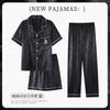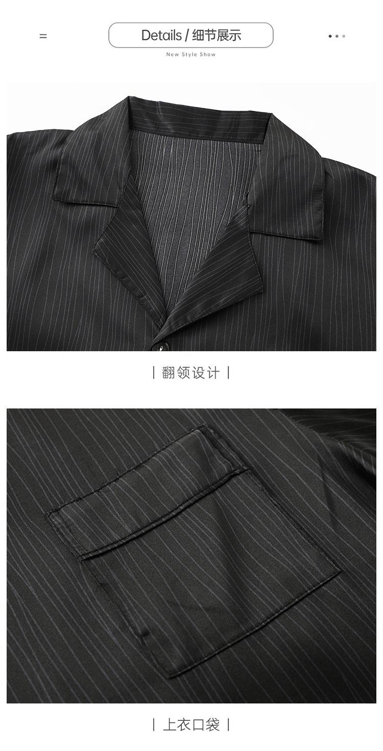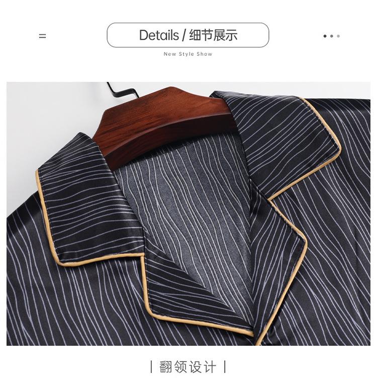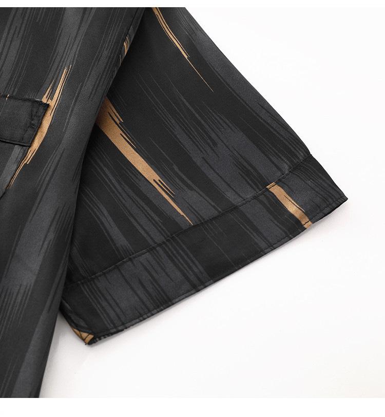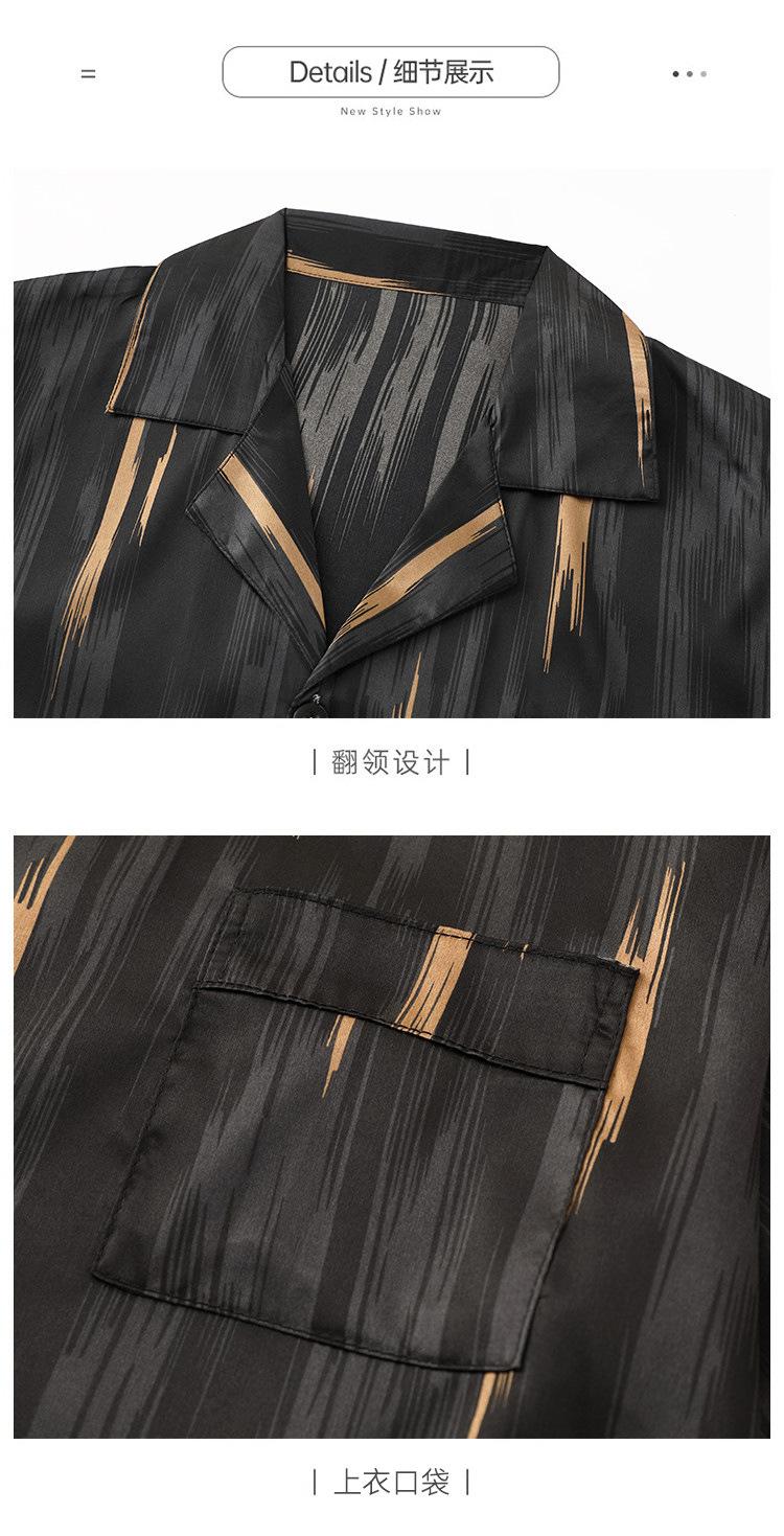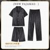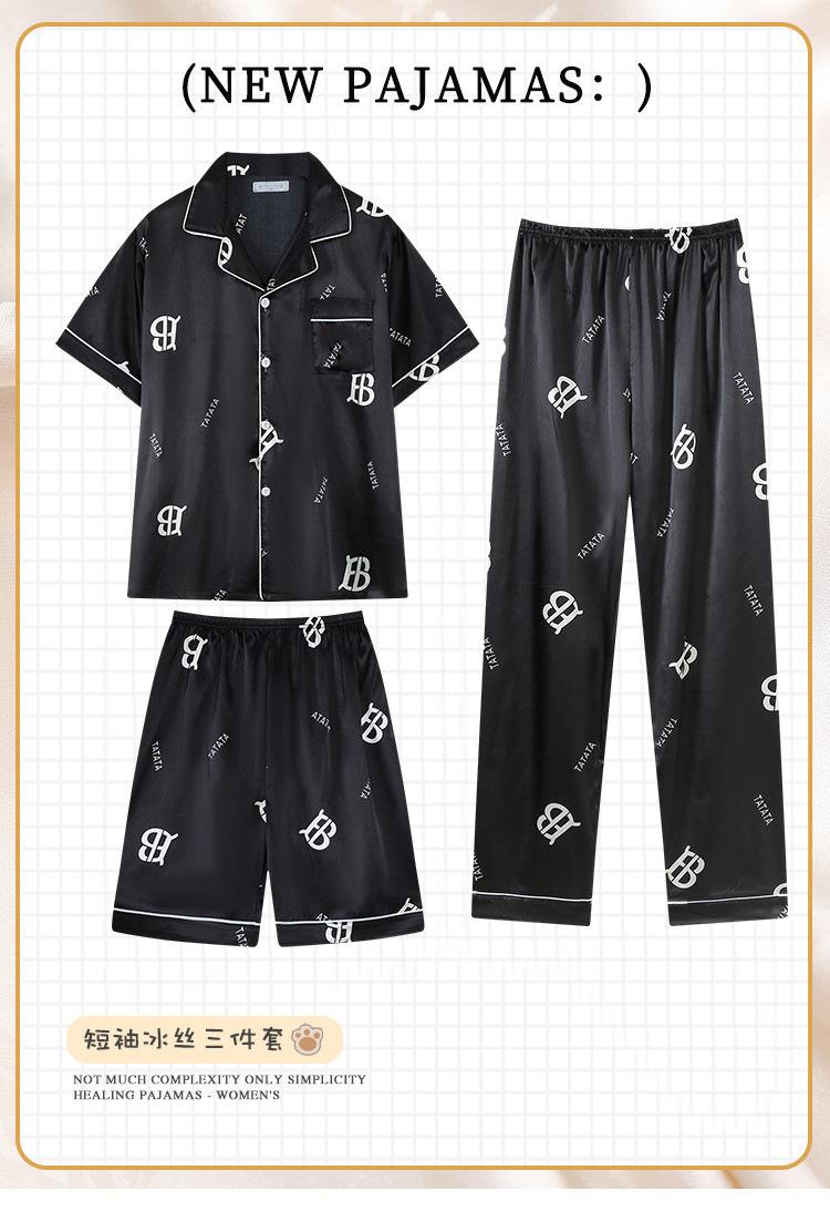 Pijama de verano para hombre, cárdigan de seda con solapa, pantalones cortos de manga corta, traje sencillo y holgado de tres piezas.