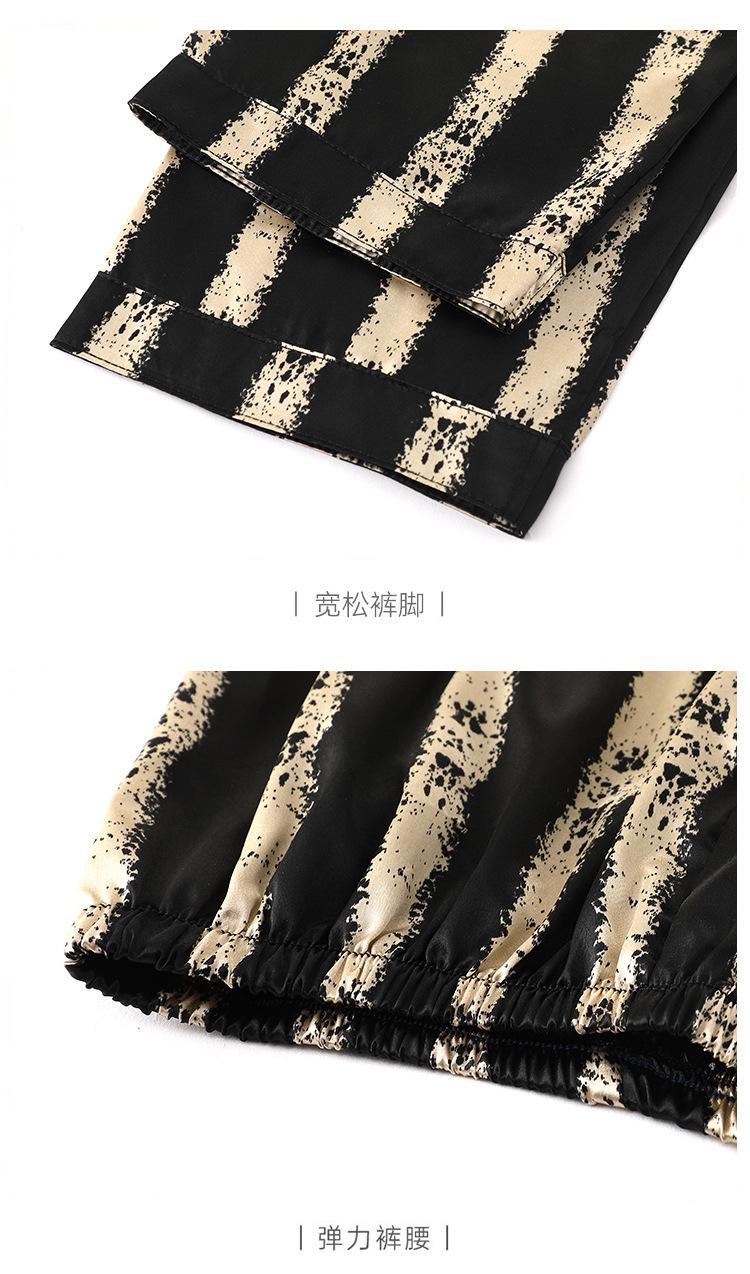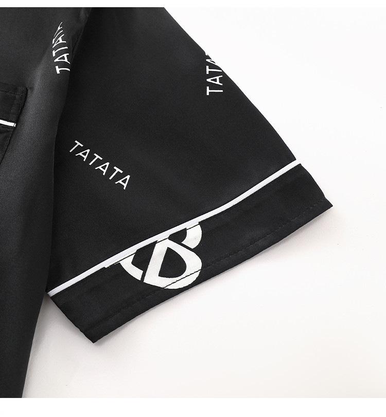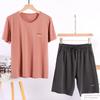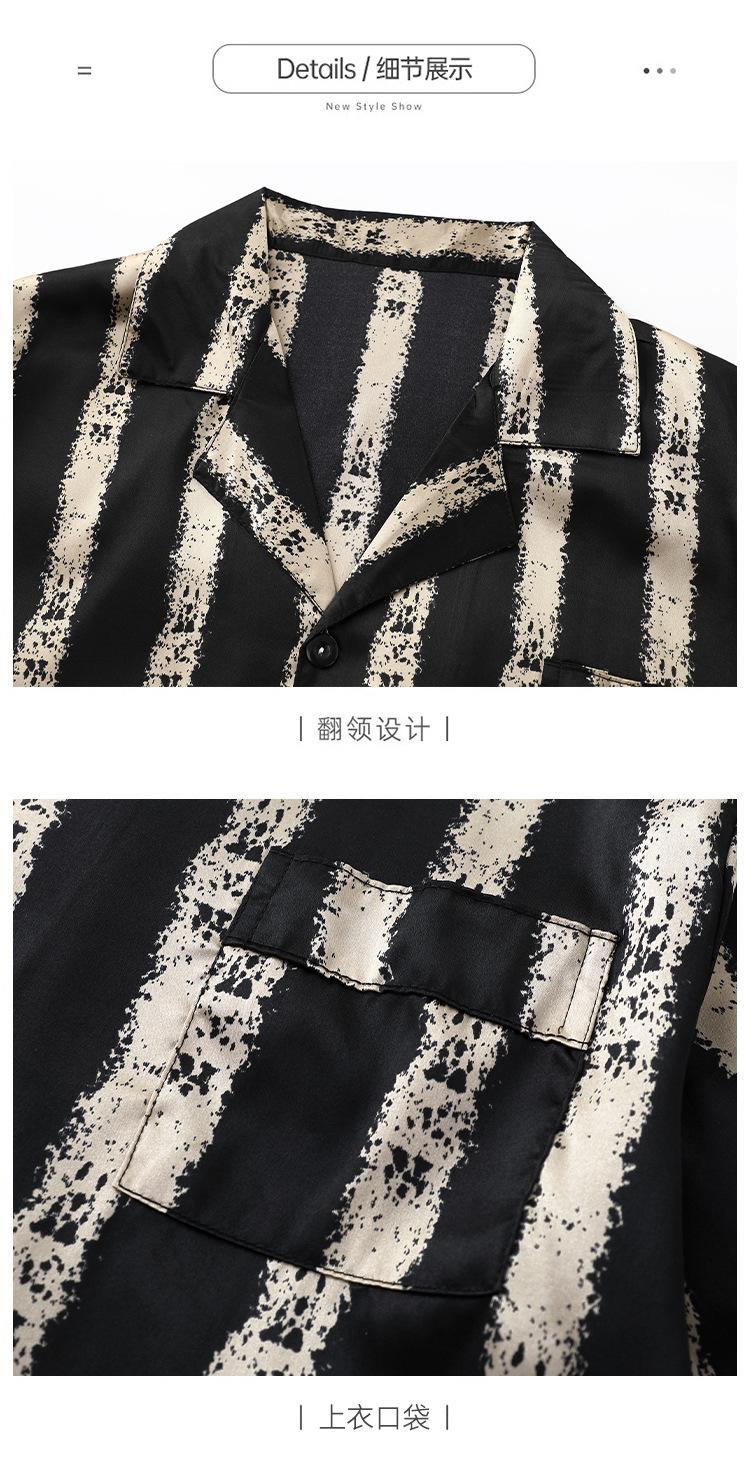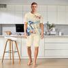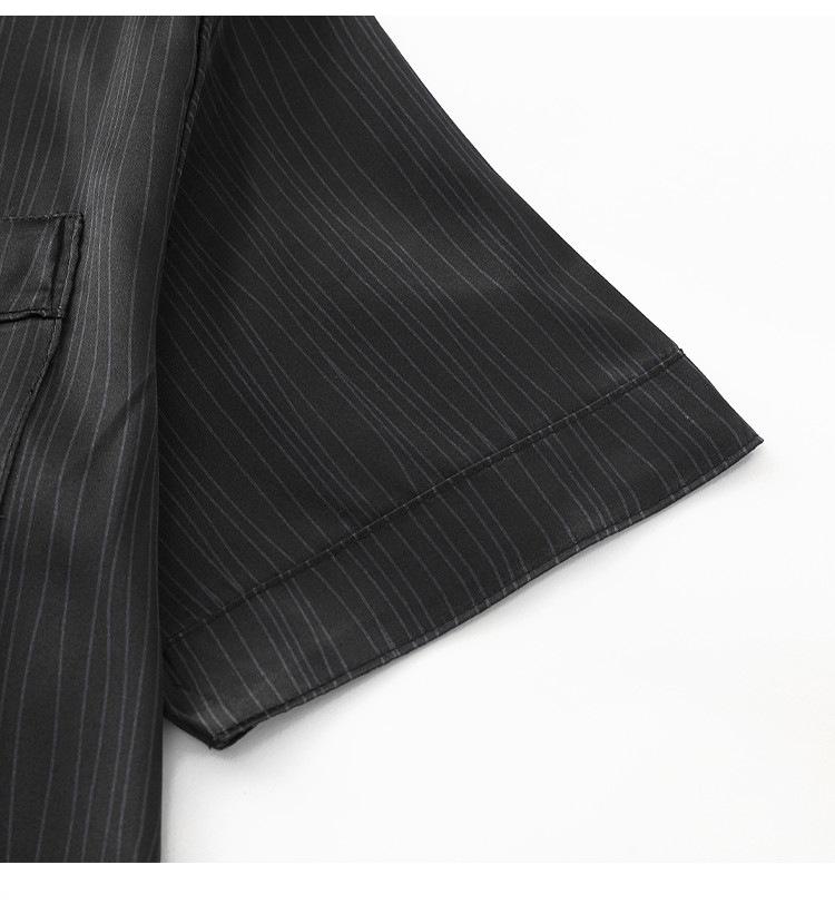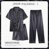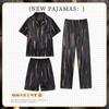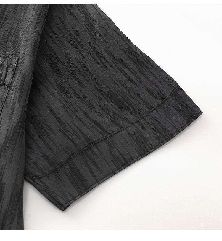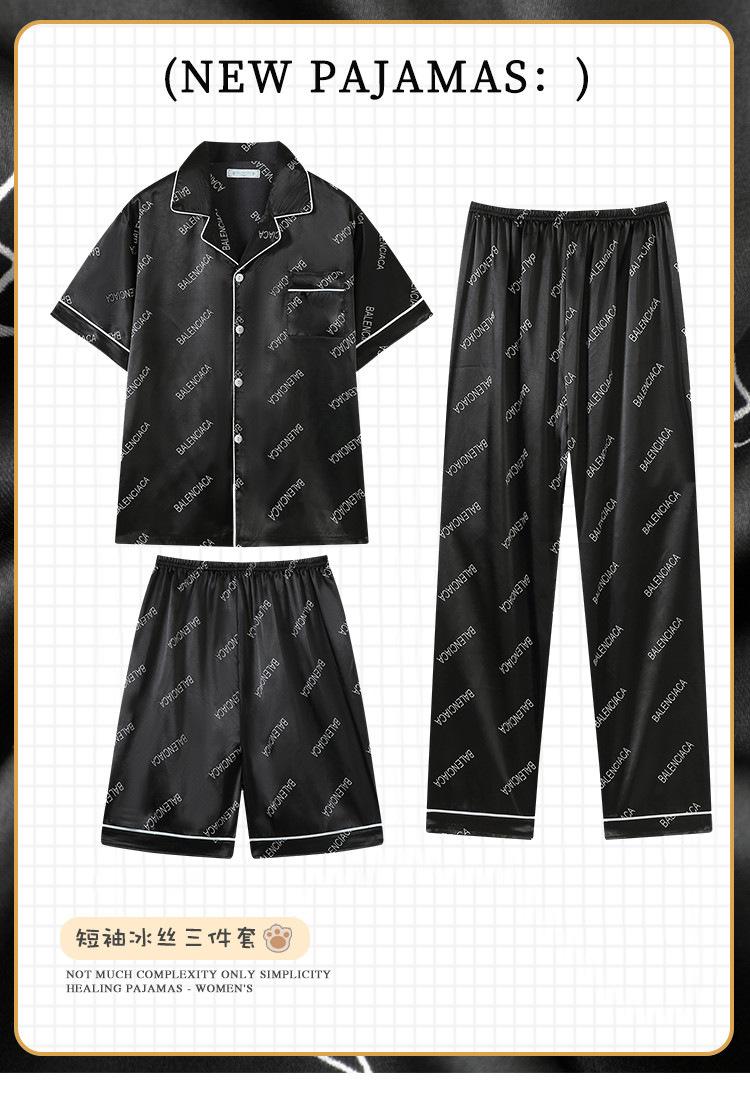 Pijama de verano para hombre, cárdigan de seda con solapa, pantalones cortos de manga corta, traje sencillo y holgado de tres piezas.