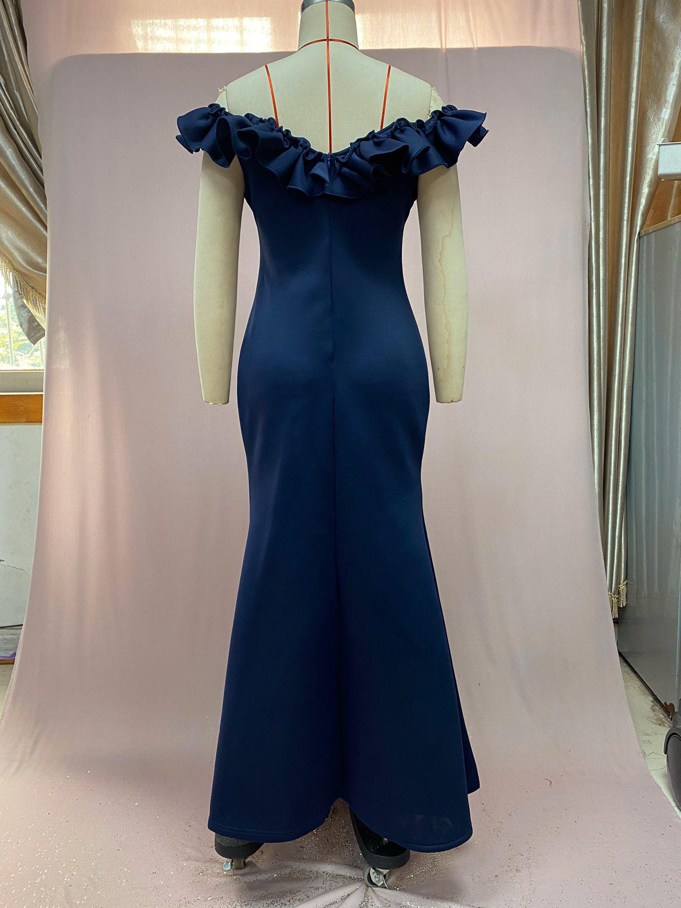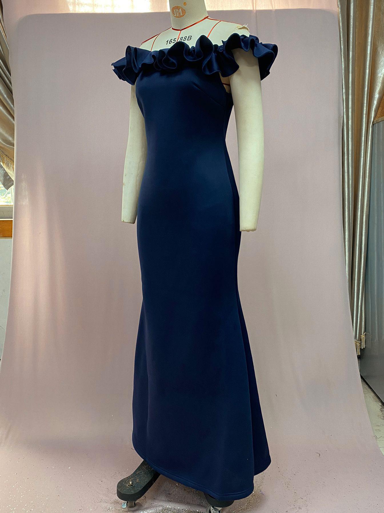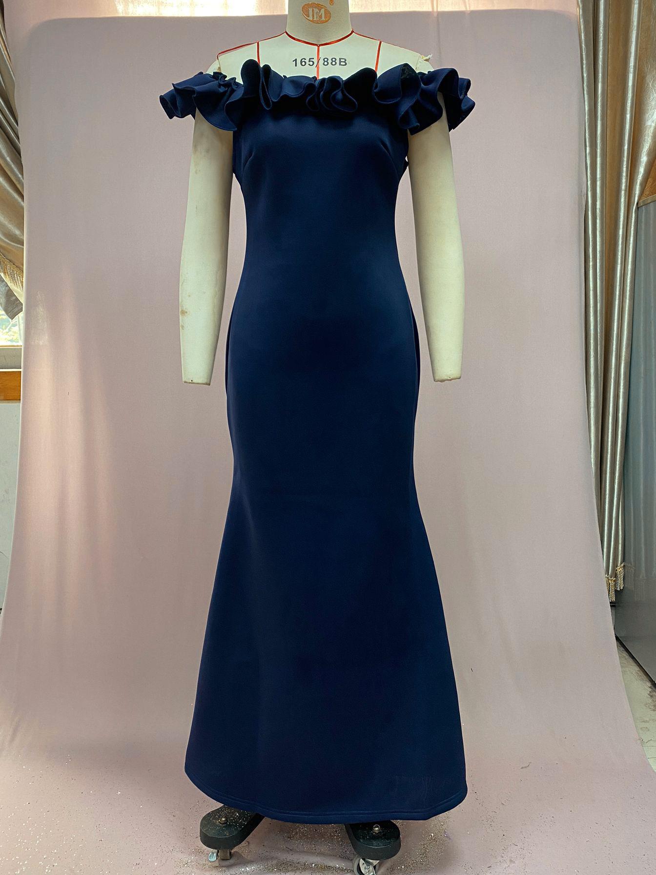 2025 Ropa de Mujer Talla Grande Exportación Europea y Americana Envolvente Un Hombro Falda Larga Grupo Dama de Honor Vestido Ligero Banquete Vestido Pequeño para Mujeres