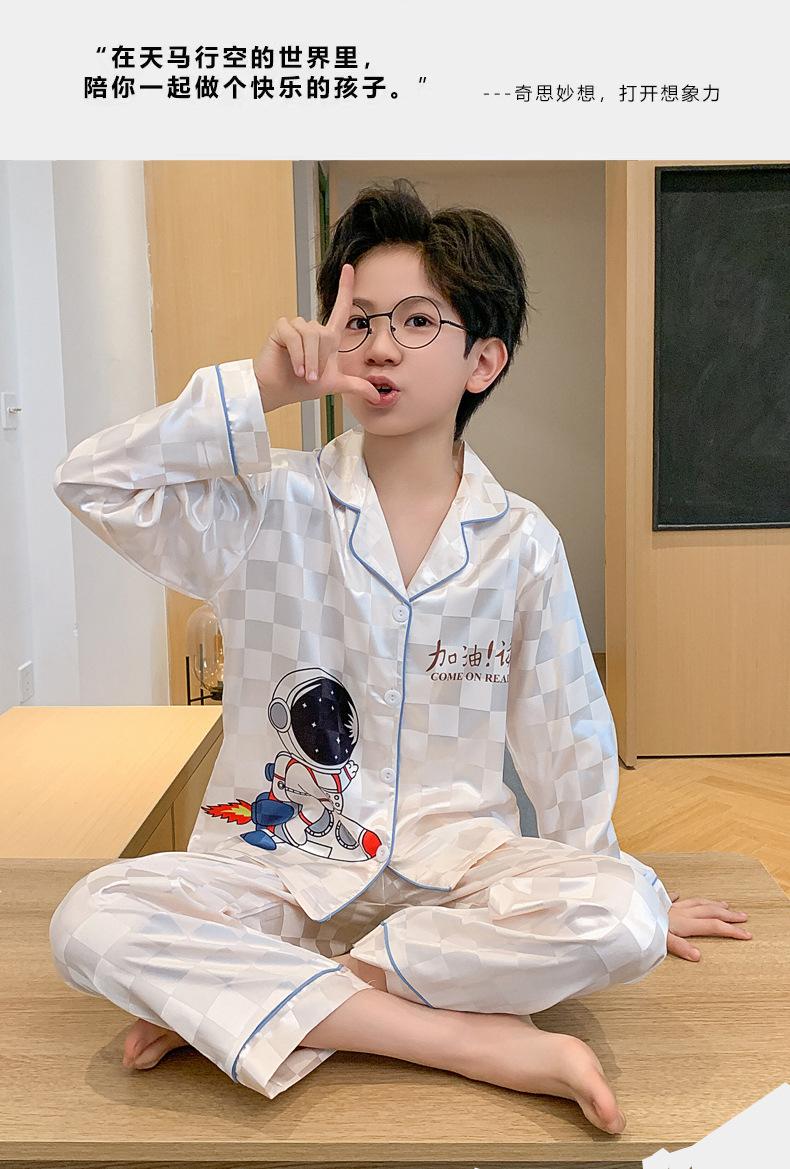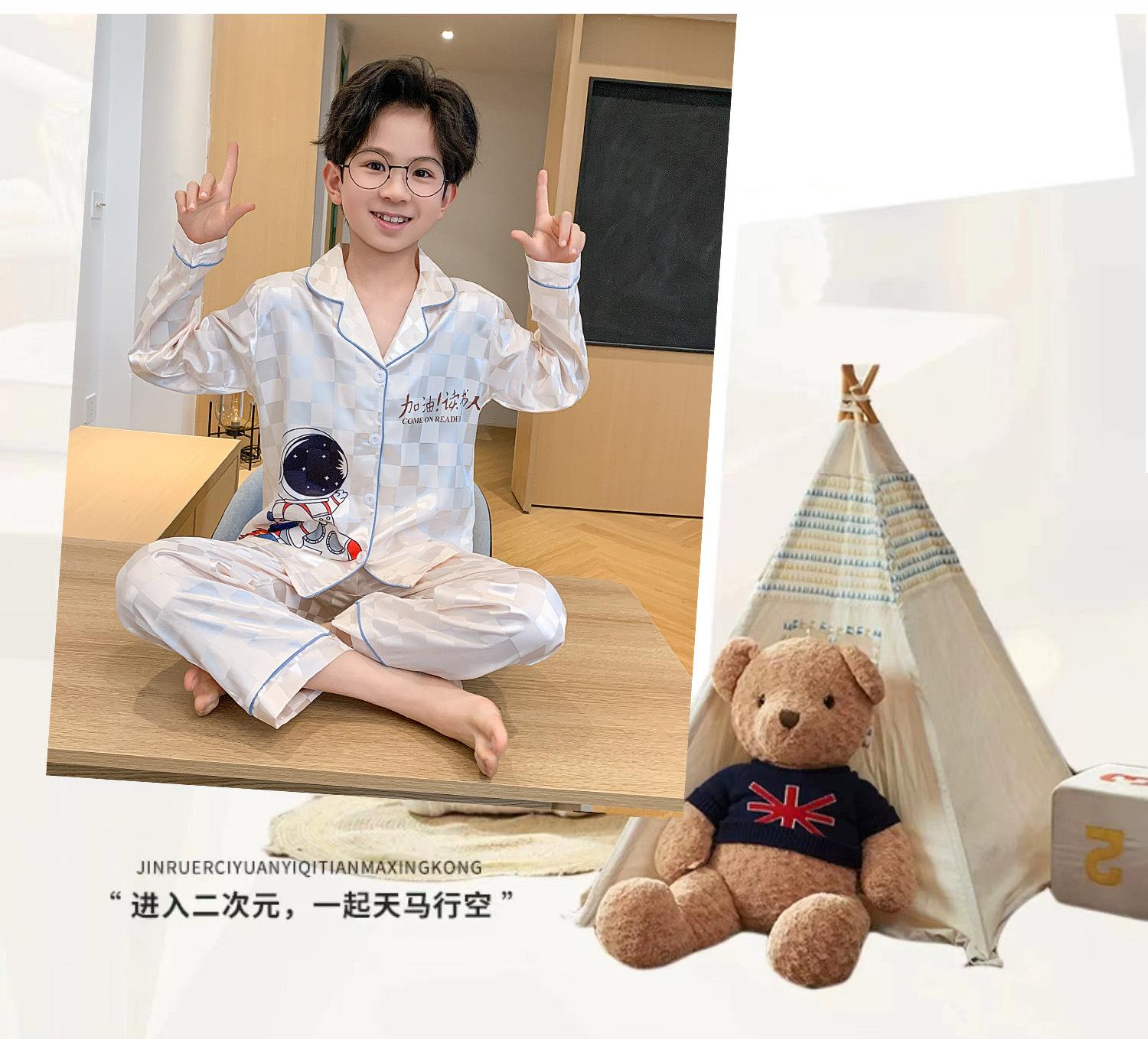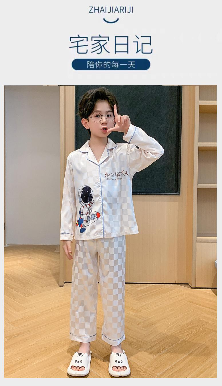 Pijamas para niños Primavera y Otoño Seda de Hielo Niños Estilo Caricatura Pantalones de Manga Larga Seda Fina Ropa para el Hogar para Niños Pequeños, Medianos y Grandes