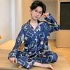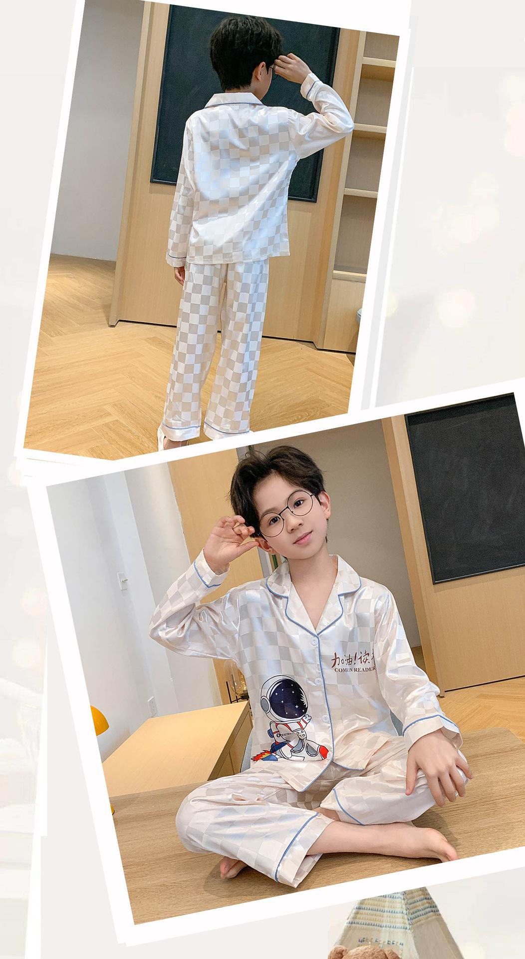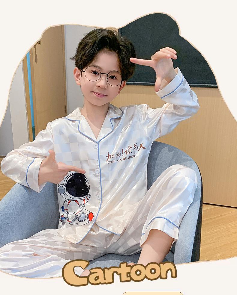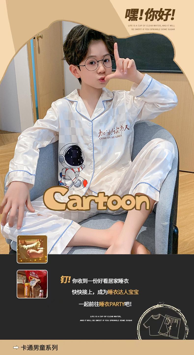 Pijamas para niños Primavera y Otoño Seda de Hielo Niños Estilo Caricatura Pantalones de Manga Larga Seda Fina Ropa para el Hogar para Niños Pequeños, Medianos y Grandes