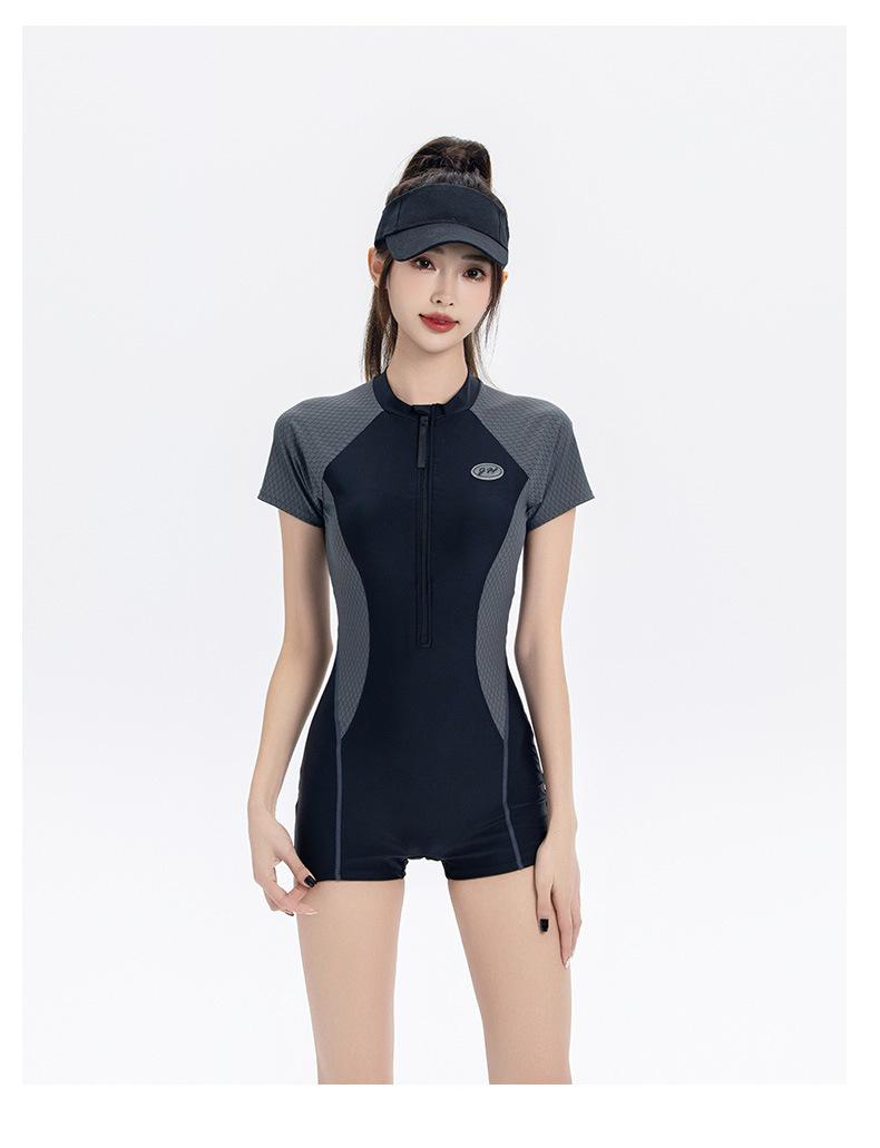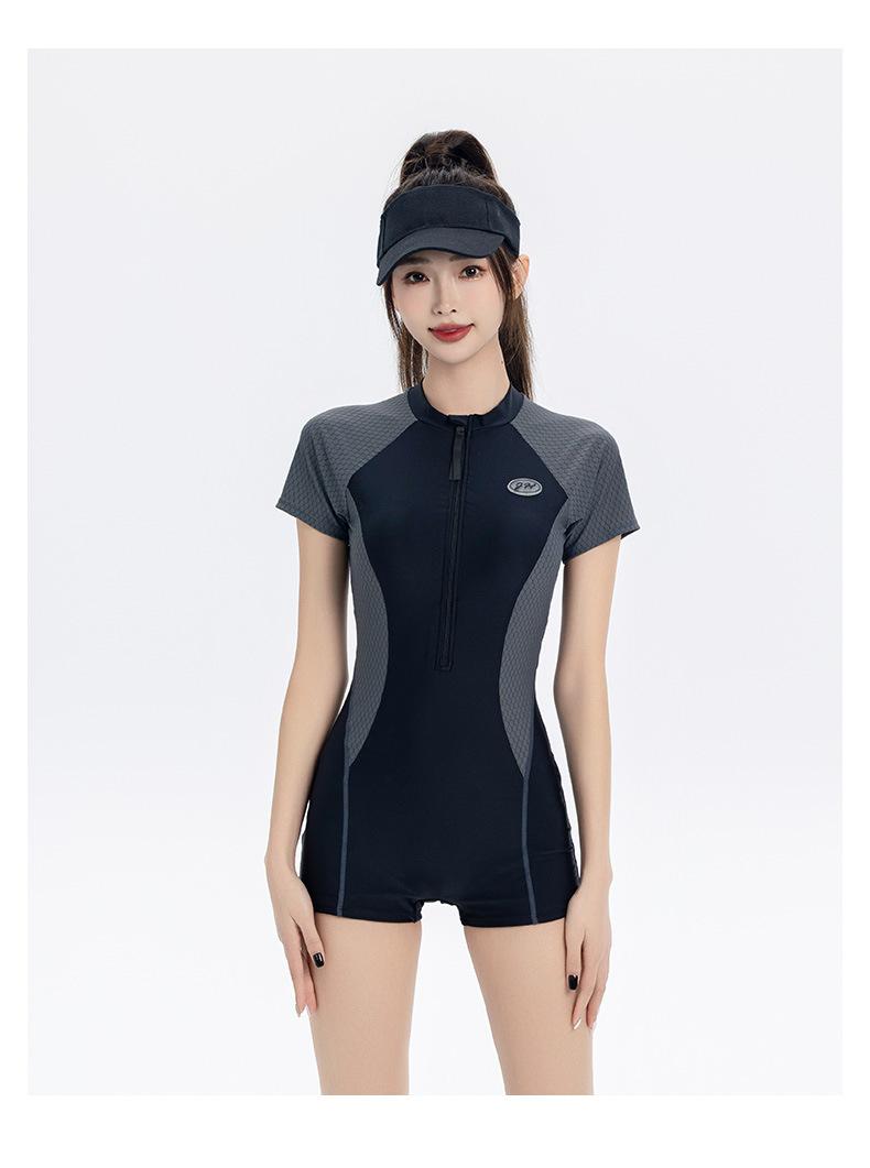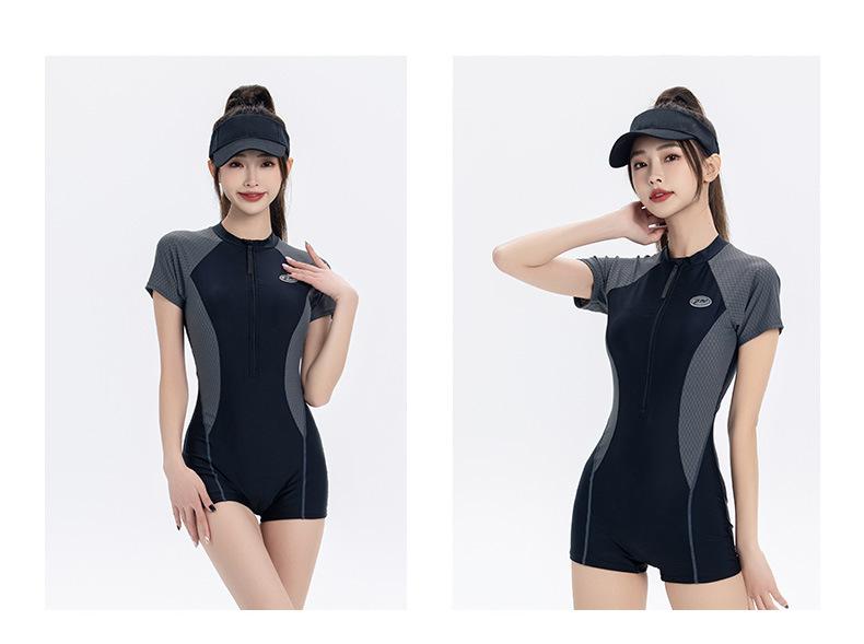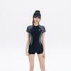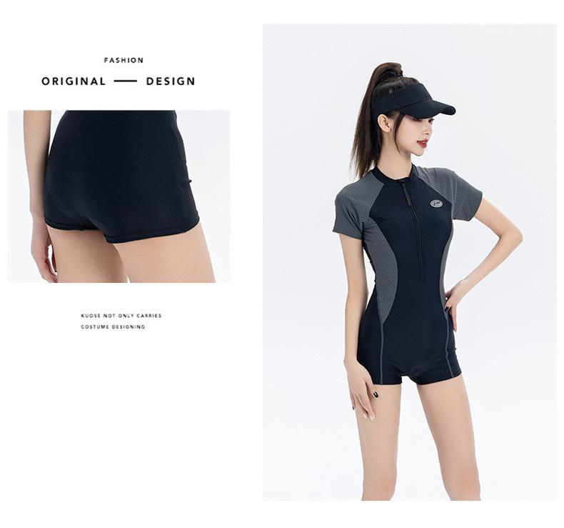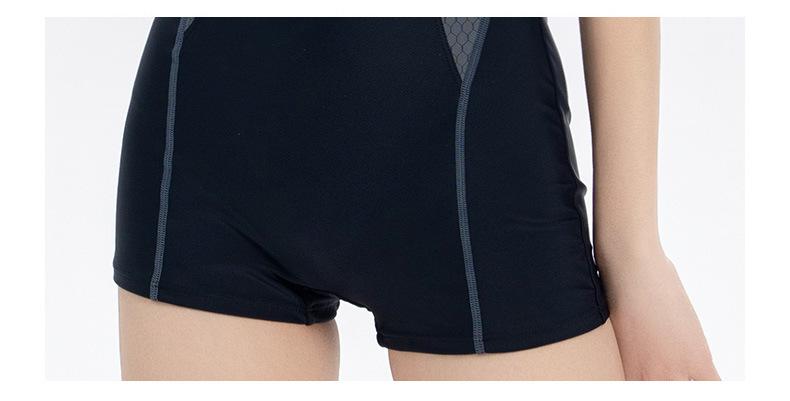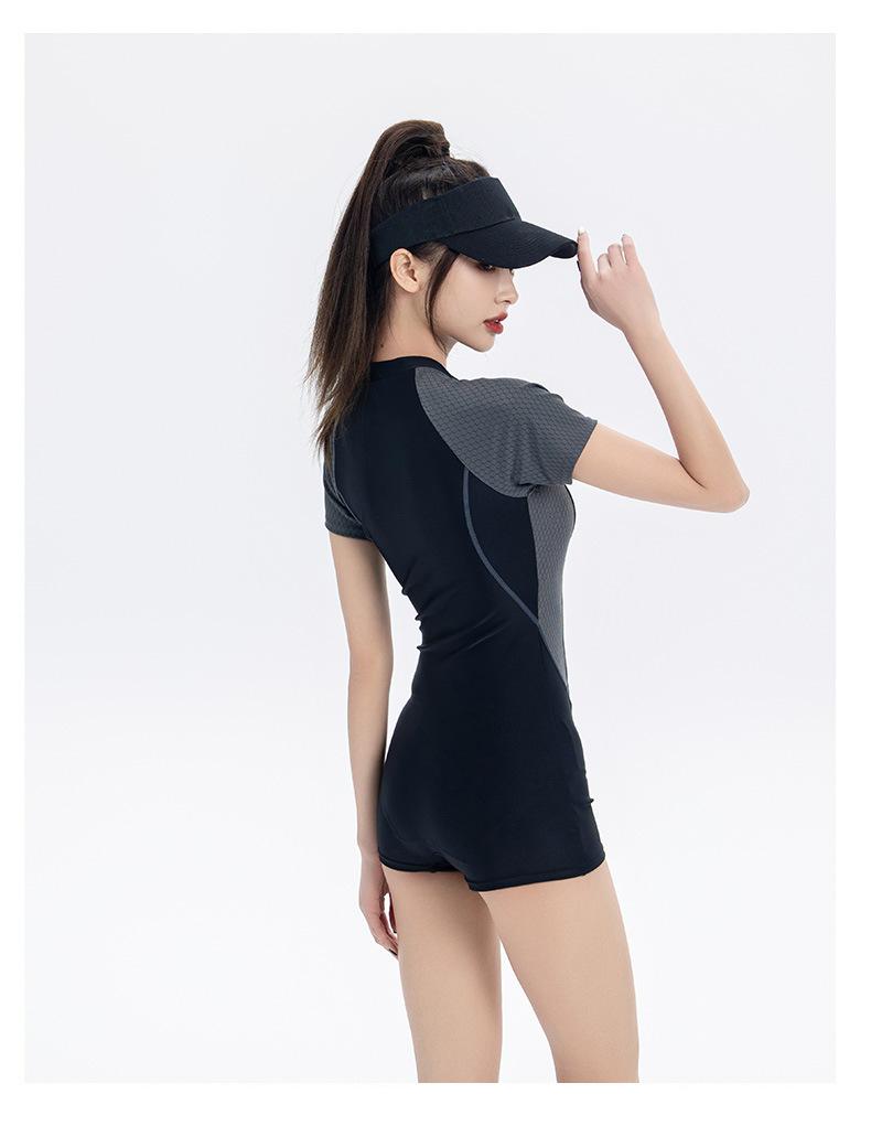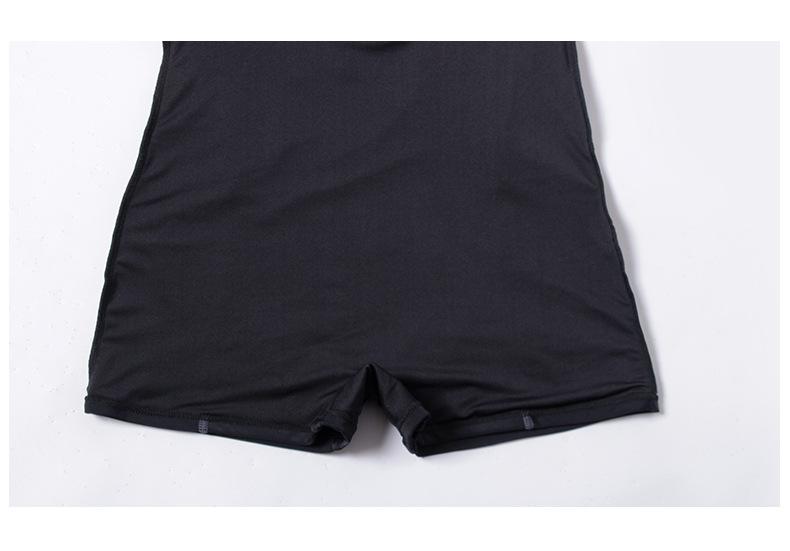 Traje de Baño Deportivo Negro de Manga Corta para Mujer Estilo Nuevo Transfronterizo Pantalón Plano Ajustado Entallado Traje de Baño de Carreras para Mujer Aguas Termales