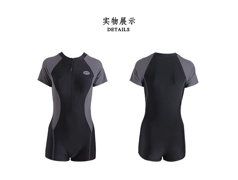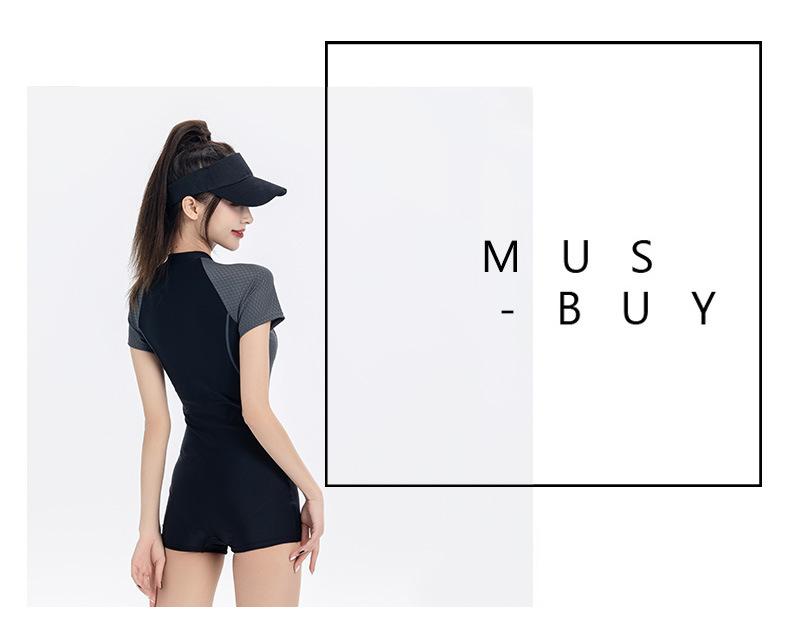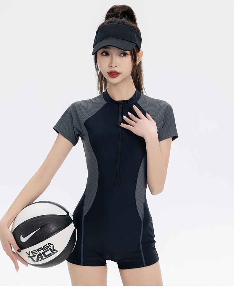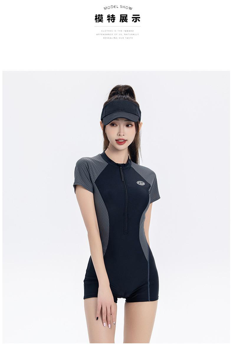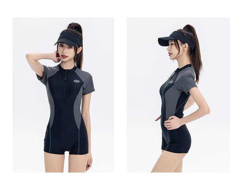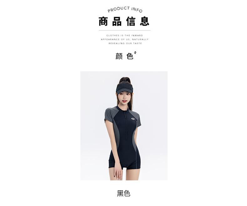 Traje de Baño Deportivo Negro de Manga Corta para Mujer Estilo Nuevo Transfronterizo Pantalón Plano Ajustado Entallado Traje de Baño de Carreras para Mujer Aguas Termales