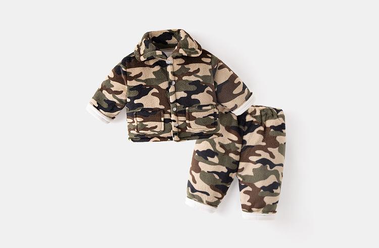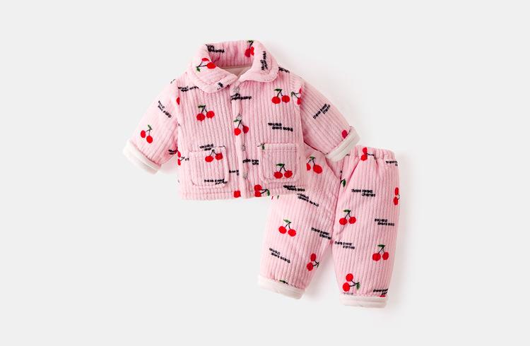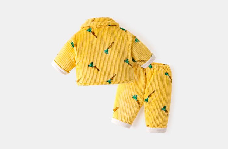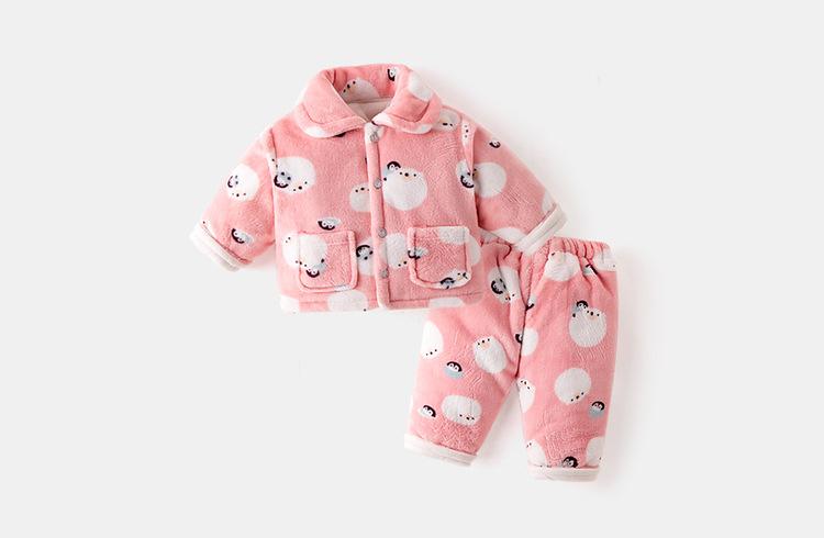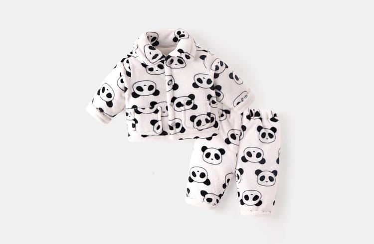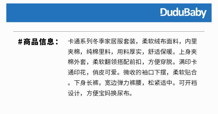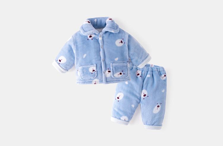[Estilo de invierno profundo] Traje de ropa de casa para bebé Dudu, forro polar coral acolchado, grueso, cálido, invierno, franela
