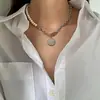 Ins Transfronterizo Estilo Punk Europeo y Americano Colgante Redondo Personalizado Retrato Collar de Perlas para Hombres y Mujeres Cadena para Clavícula Empalmada de Nicho