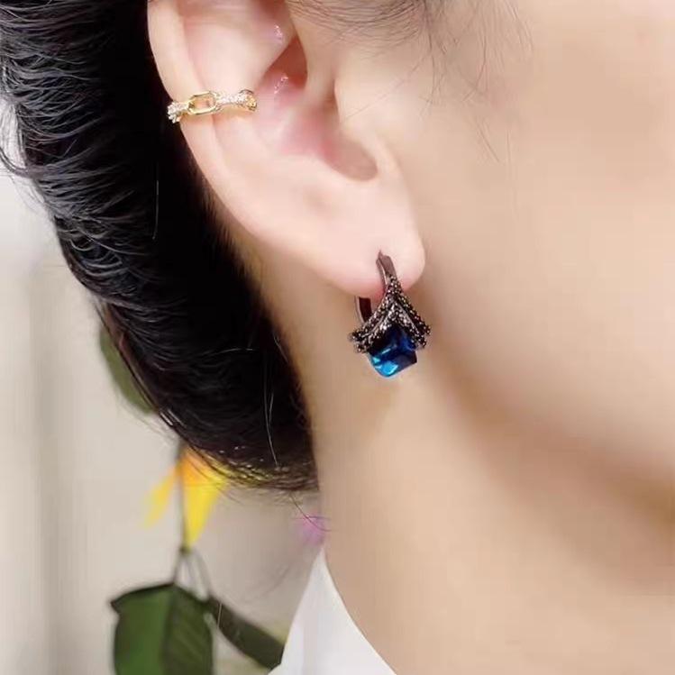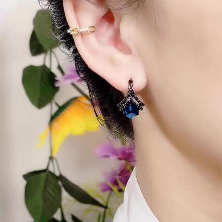 Nuevos pendientes elegantes de cristal azul con microincrustaciones de diseño de nicho, pendientes exquisitos que combinan con todo, pendientes de lujo ligeros de alta calidad para mujer