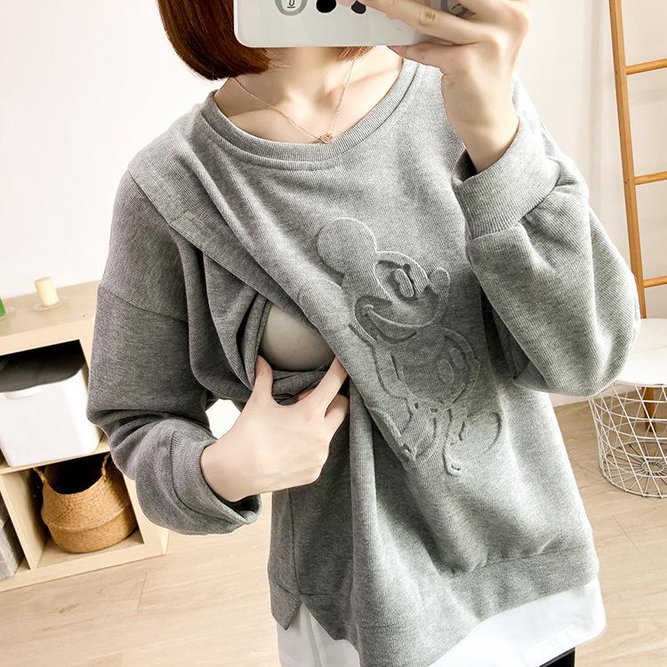 Ropa de lactancia, ropa de exterior de primavera y otoño, top de lactancia de algodón puro posparto para mamás calientes, ropa de otoño, suéter de lactancia para exteriores, abrigo