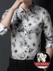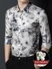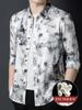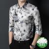 Tops de Seda de Alta Gama para Hombre 2025 Nueva Camisa de Seda de Morera para Hombre de Manga Larga Estampada con Tinta Camisa Delgada de Sedas y Satenes