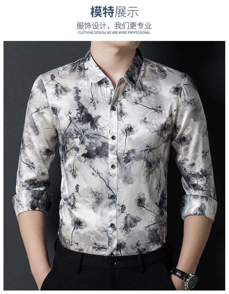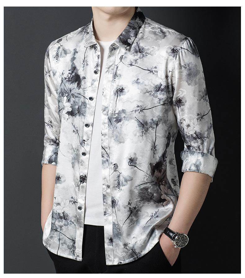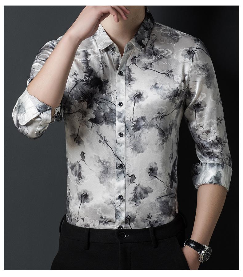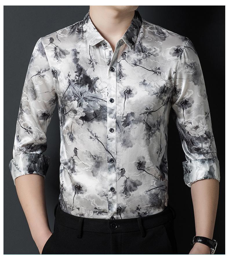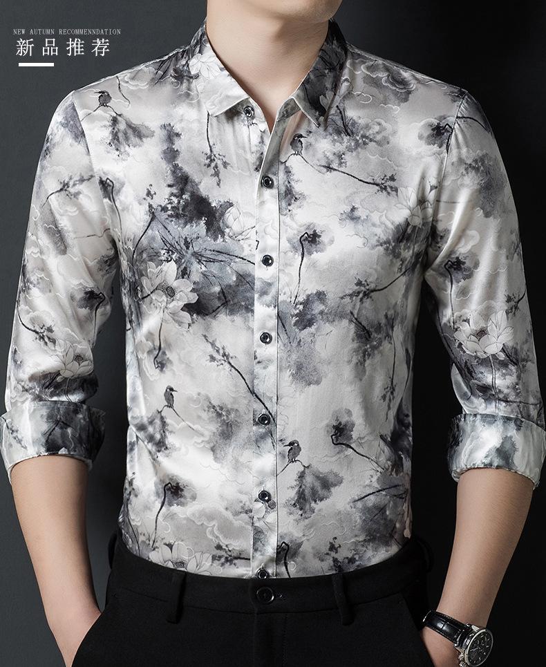 Compra Tops de Seda de Alta Gama para Hombre 2025 Nueva Camisa de Seda de Morera para Hombre de Manga Larga Estampada con Tinta Camisa Delgada de Sedas y Satenes al por mayor en Joom.pro