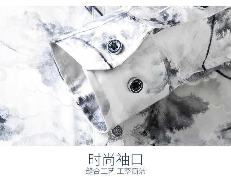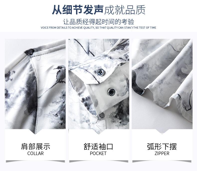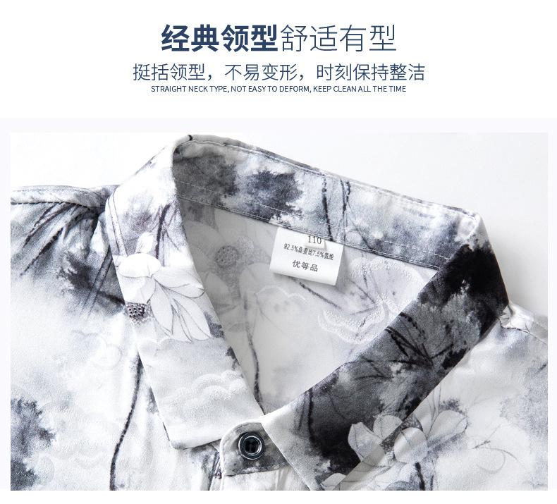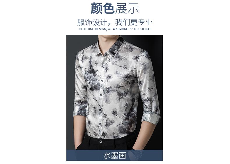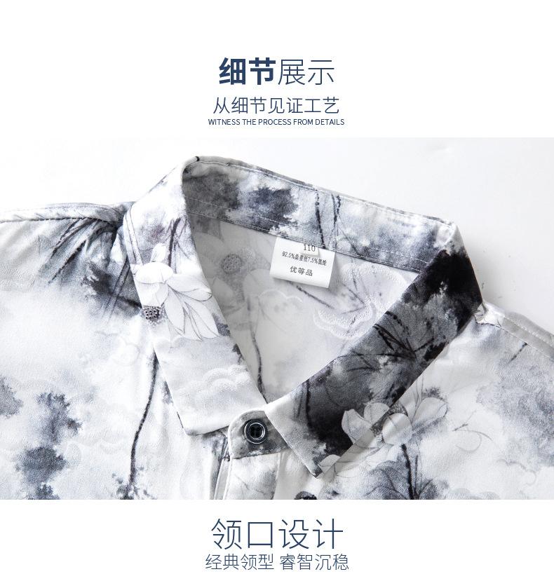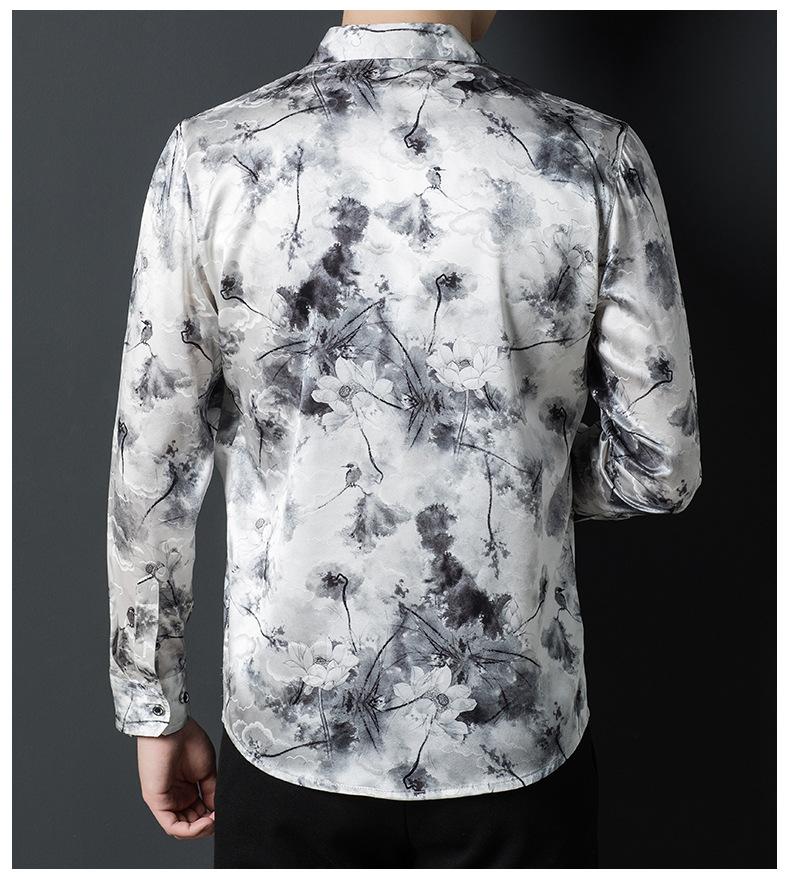Compra Tops de Seda de Alta Gama para Hombre 2025 Nueva Camisa de Seda de Morera para Hombre de Manga Larga Estampada con Tinta Camisa Delgada de Sedas y Satenes al por mayor en Joom.pro