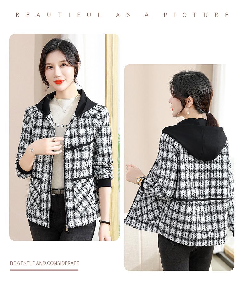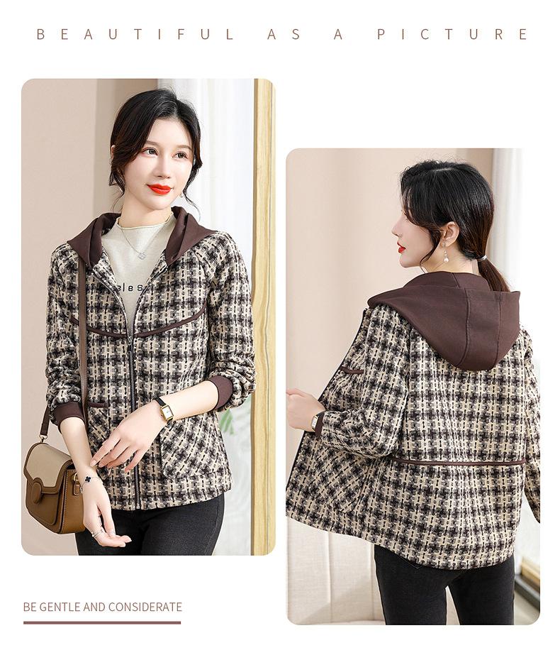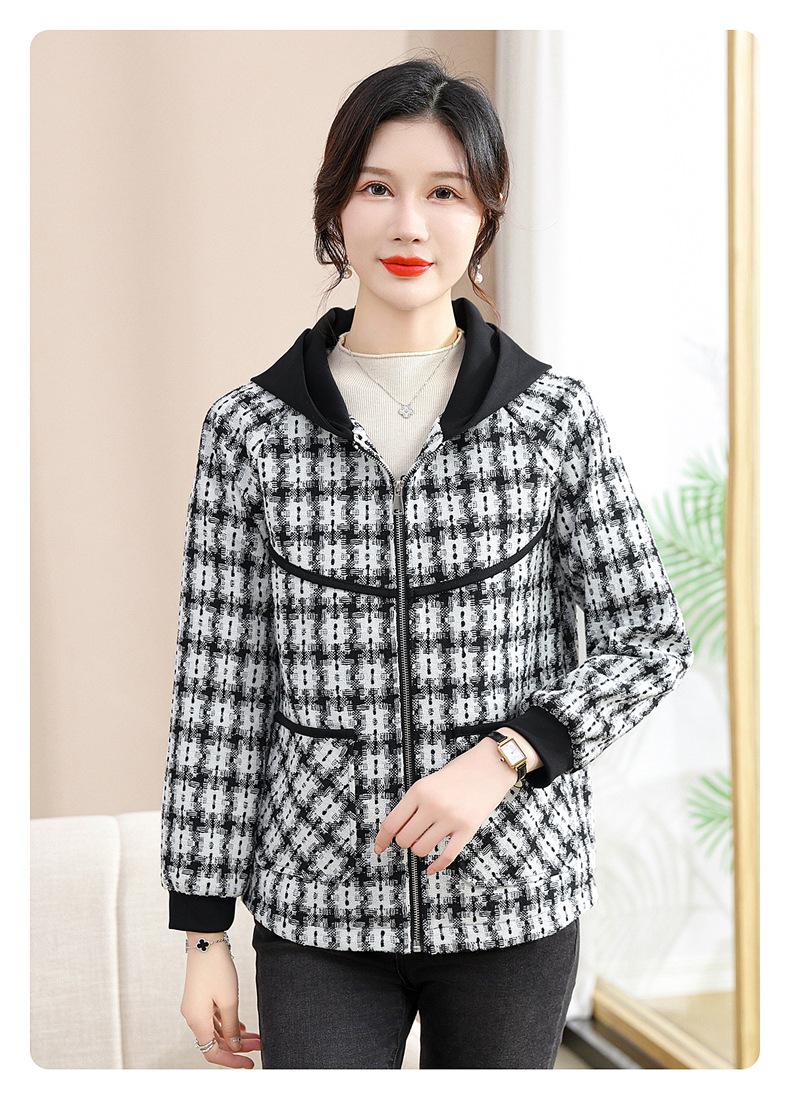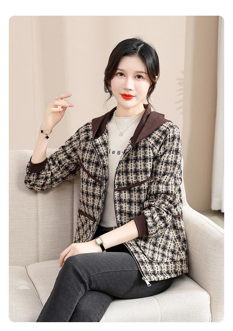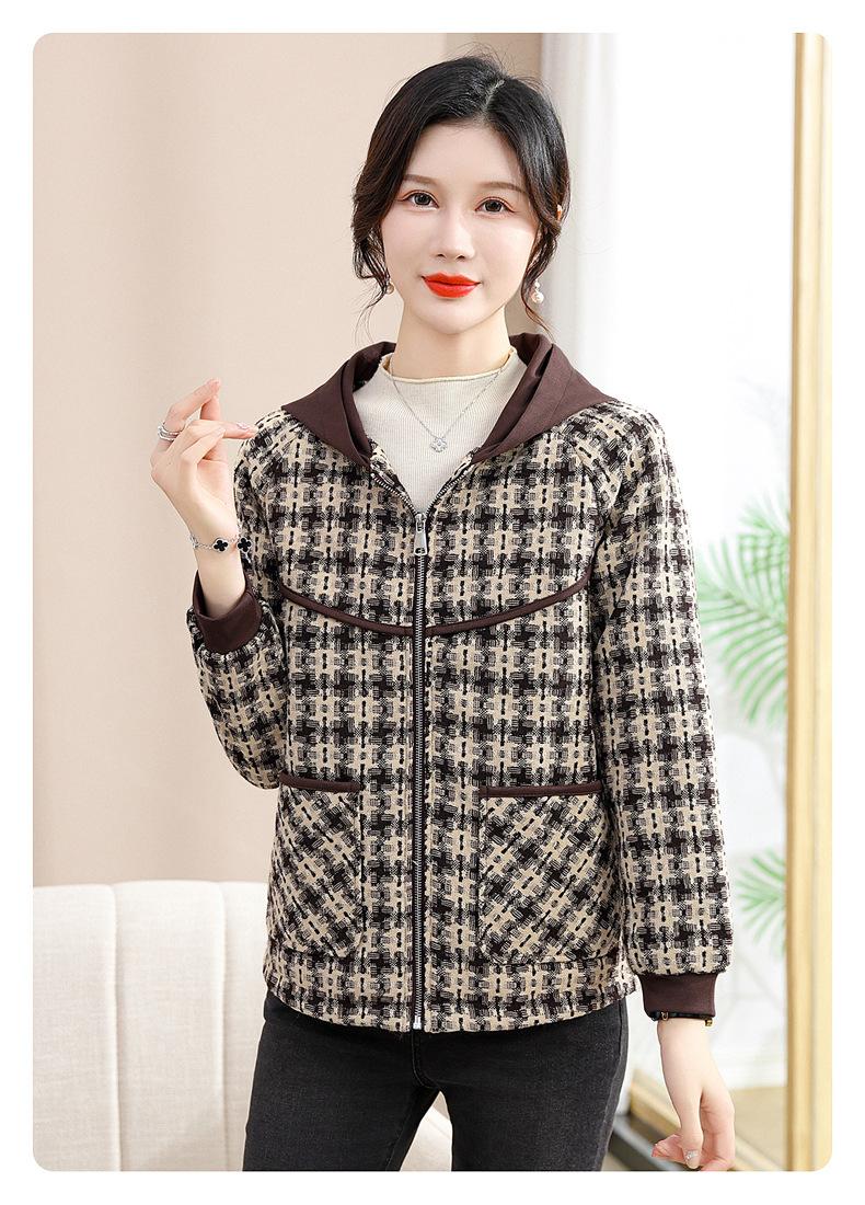 Otoño e Invierno abrigo corto con capucha para mamá, chaqueta holgada de manga larga para jóvenes y ancianos, ropa casual de primavera y otoño