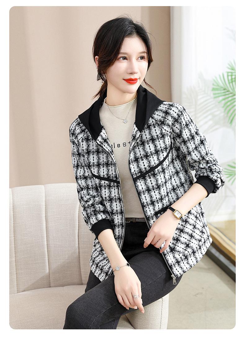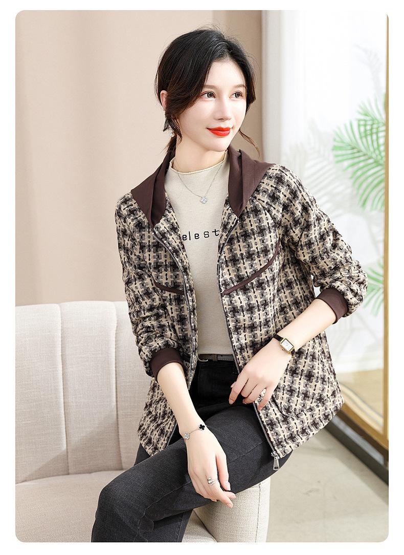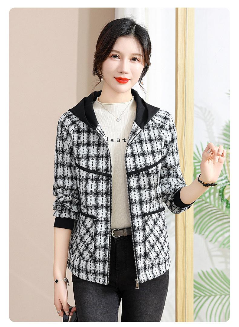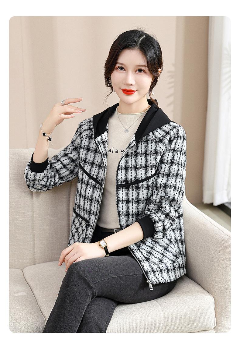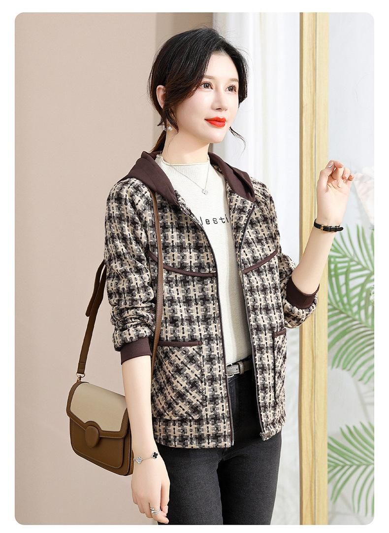 Otoño e Invierno abrigo corto con capucha para mamá, chaqueta holgada de manga larga para jóvenes y ancianos, ropa casual de primavera y otoño
