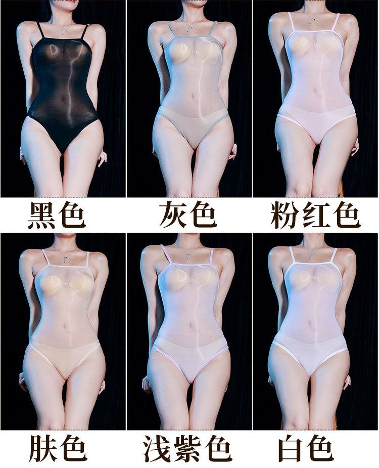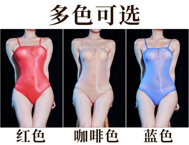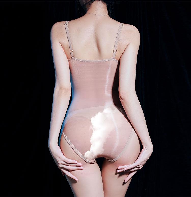 Sexy ultradelgado brillante transparente tirante ropa interior ajustada sedoso sin costuras alta elasticidad tentación entrepierna abierta traje de baño de una pieza dividido