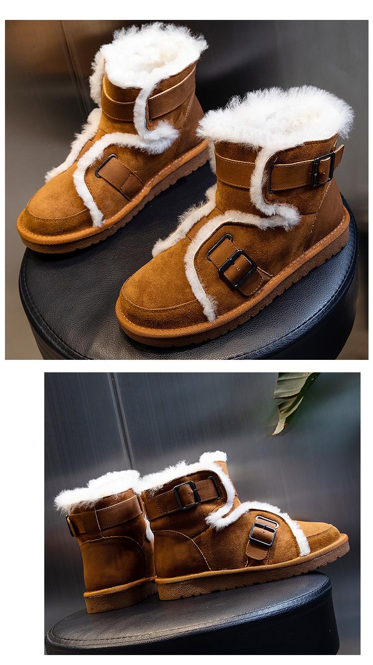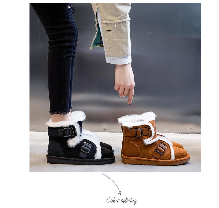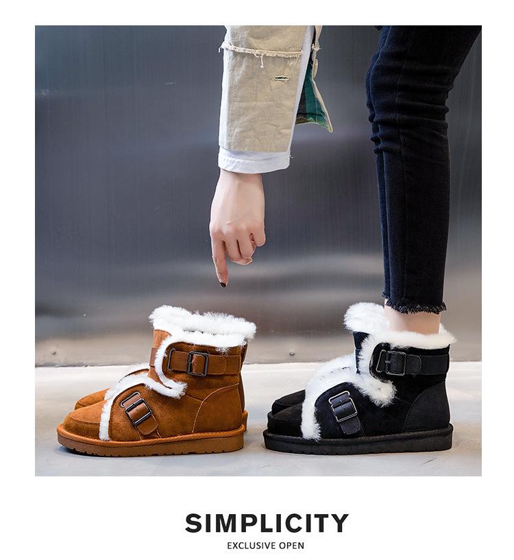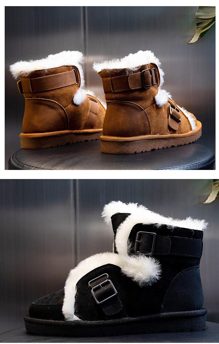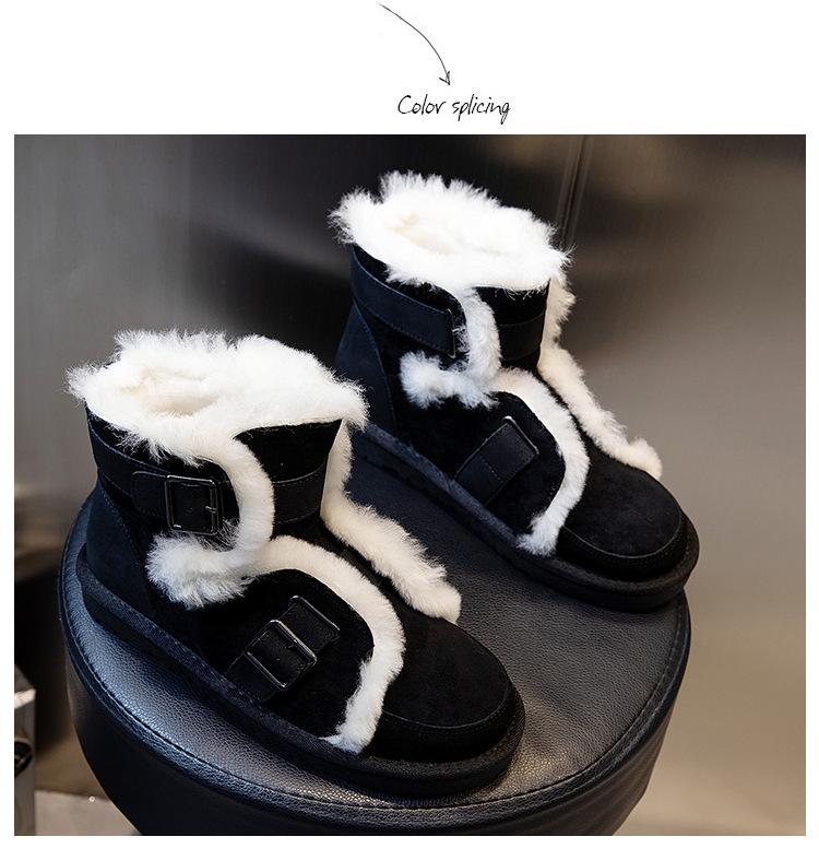 Botas de Nieve de Lana para Mujer Invierno 2025 Terciopelo Espesado Planas Tacones Altos Media Pantorrilla Algodón Botas Cortas Motocicleta Zapatos de Mujer para Proteger contra el Frío