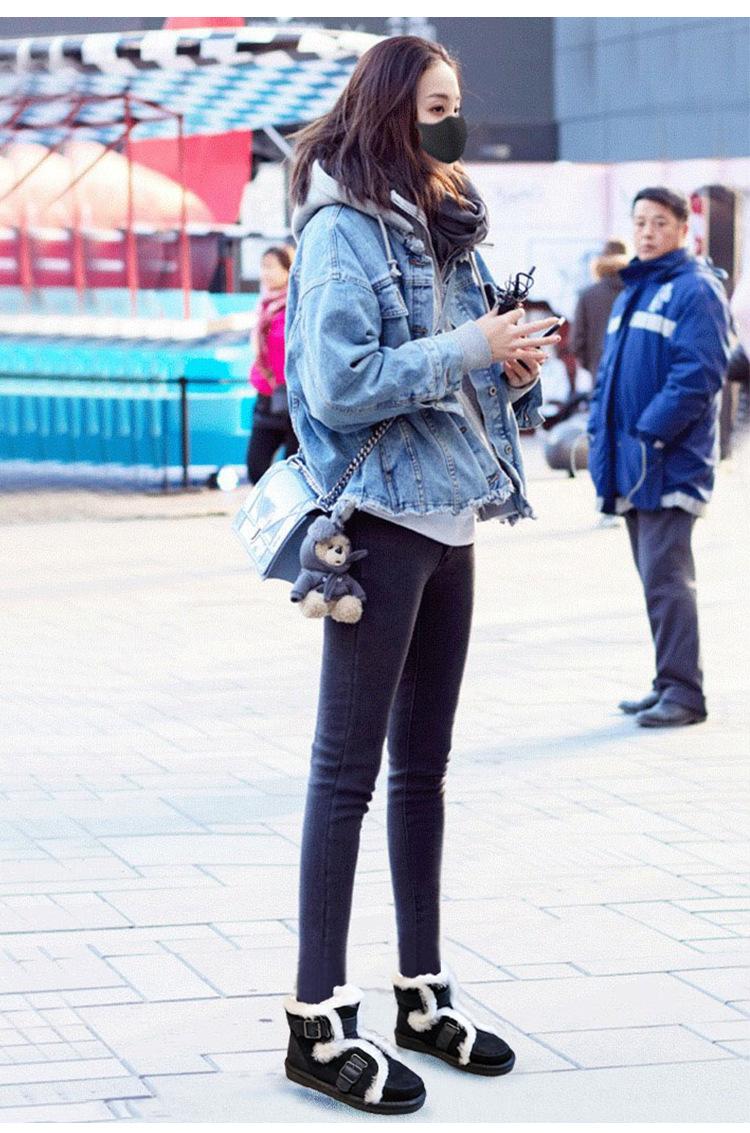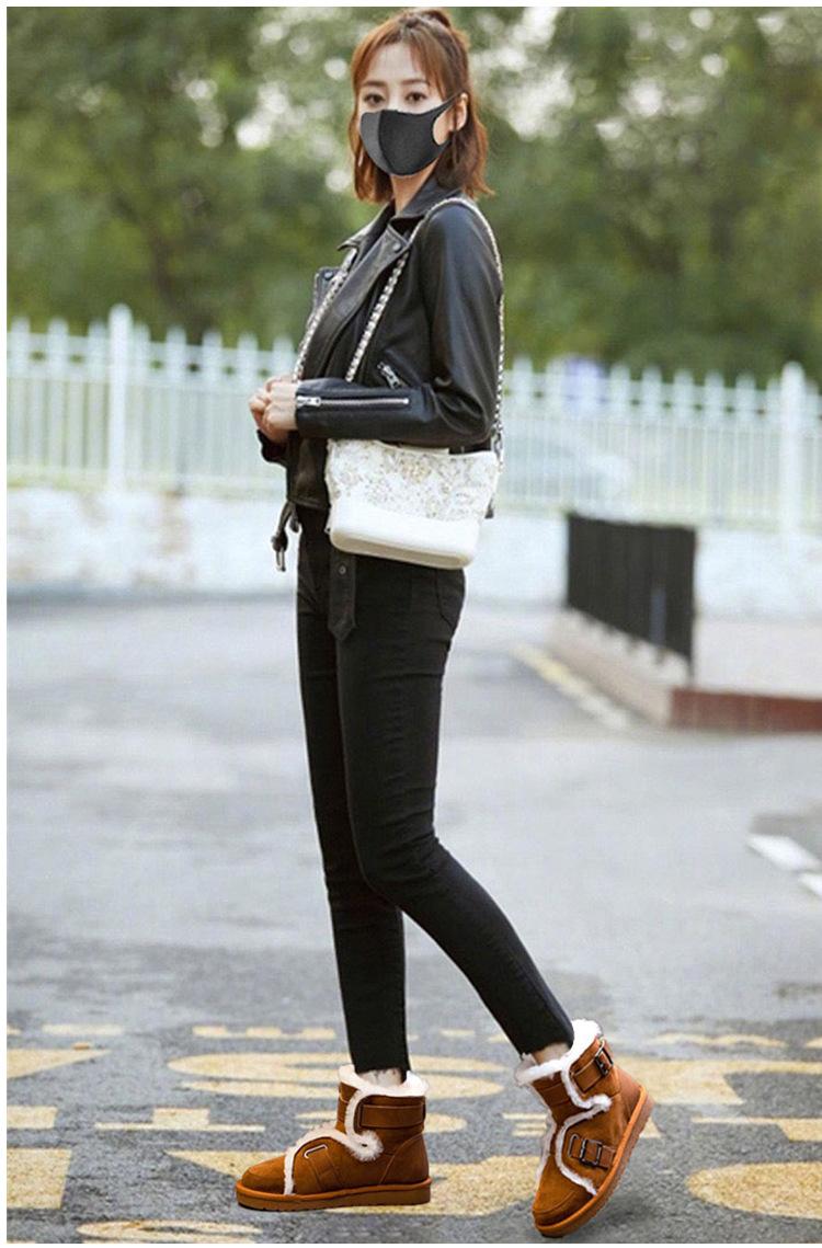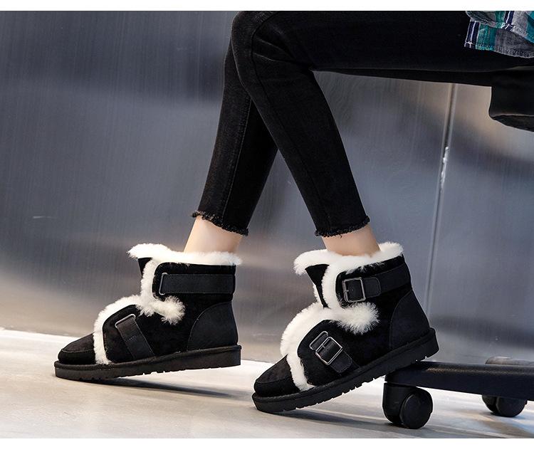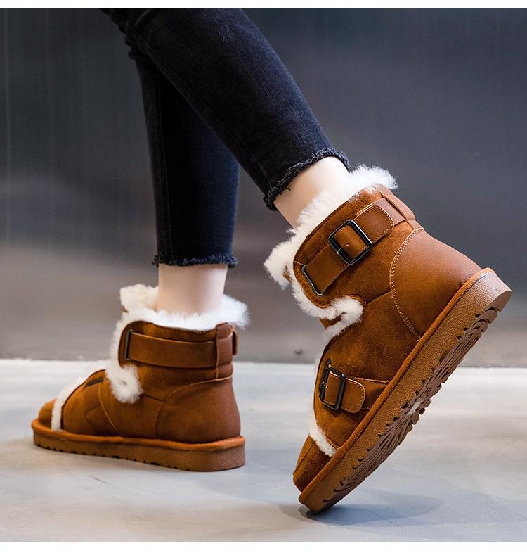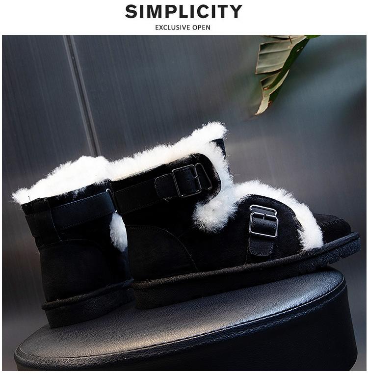Botas de Nieve de Lana para Mujer Invierno 2025 Terciopelo Espesado Planas Tacones Altos Media Pantorrilla Algodón Botas Cortas Motocicleta Zapatos de Mujer para Proteger contra el Frío