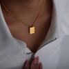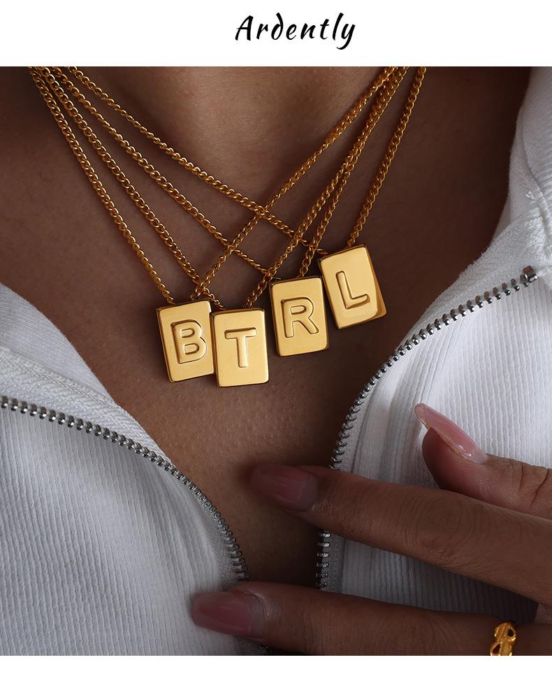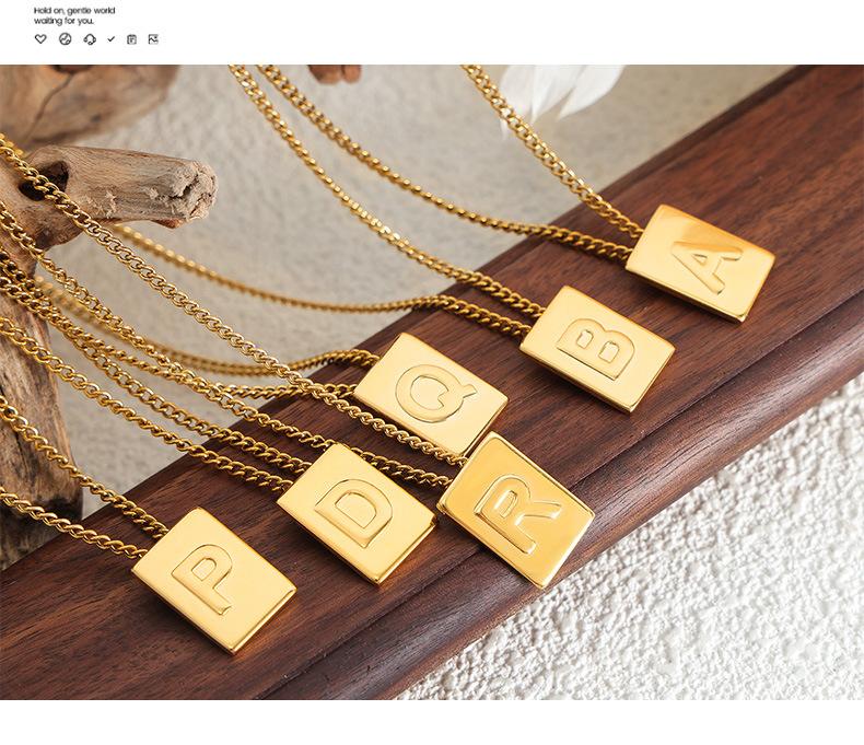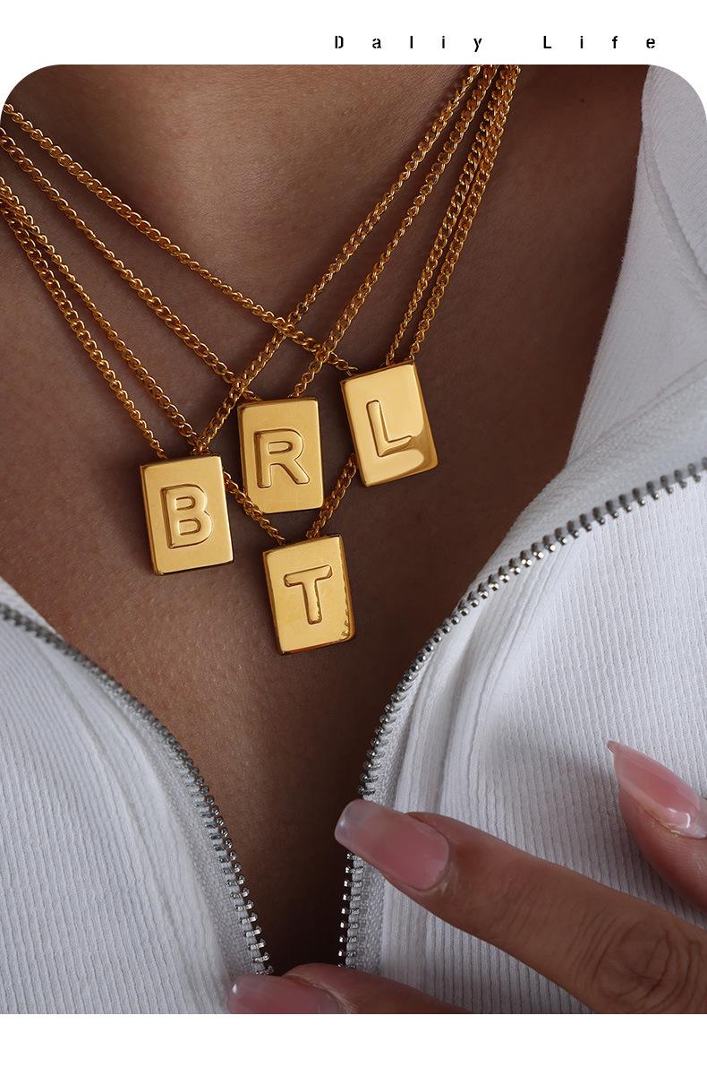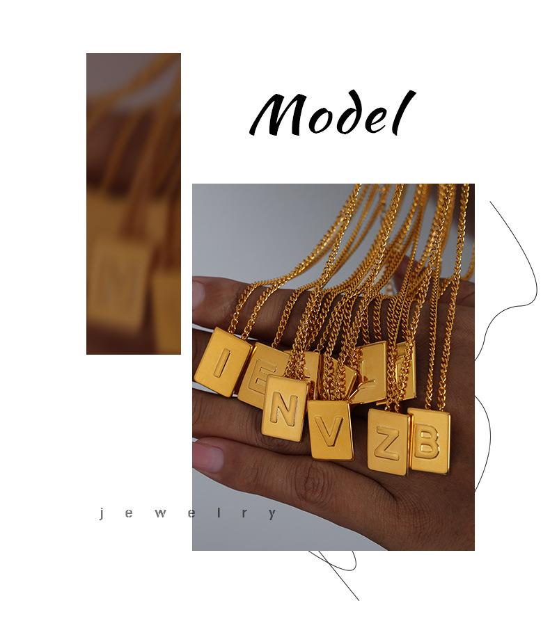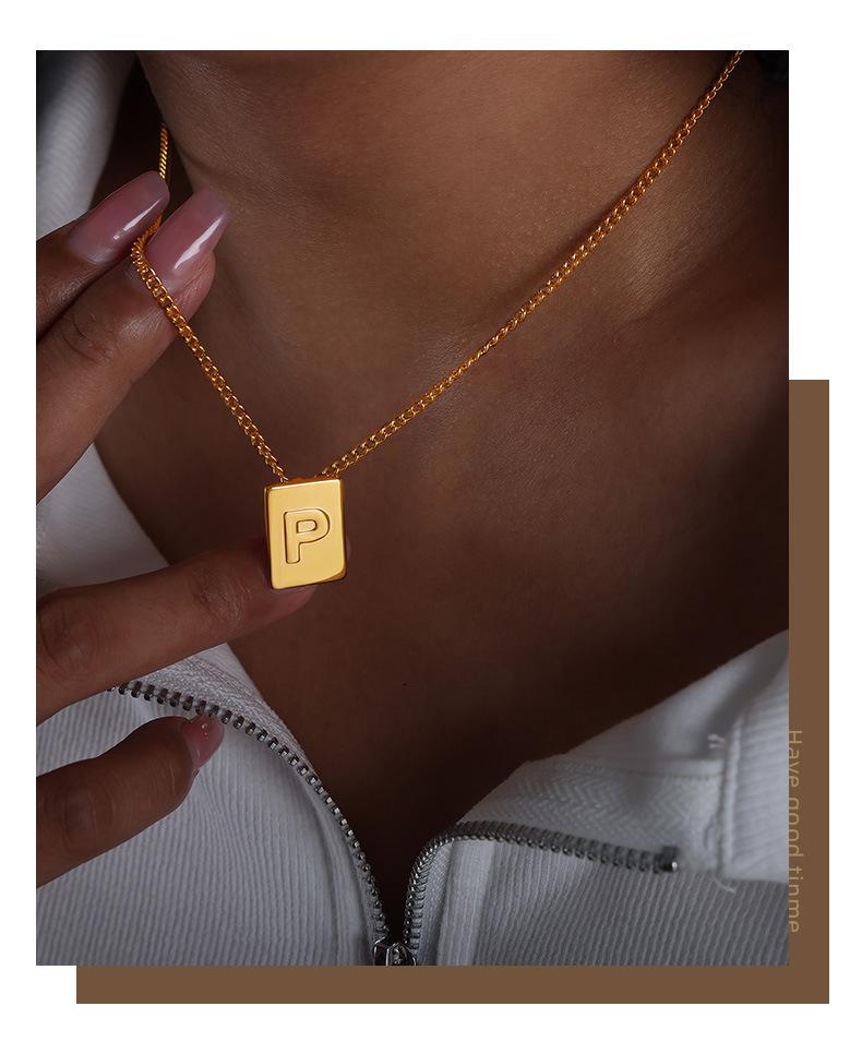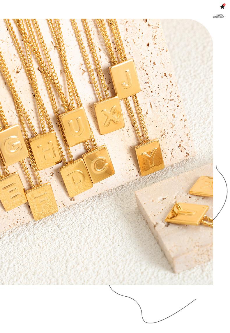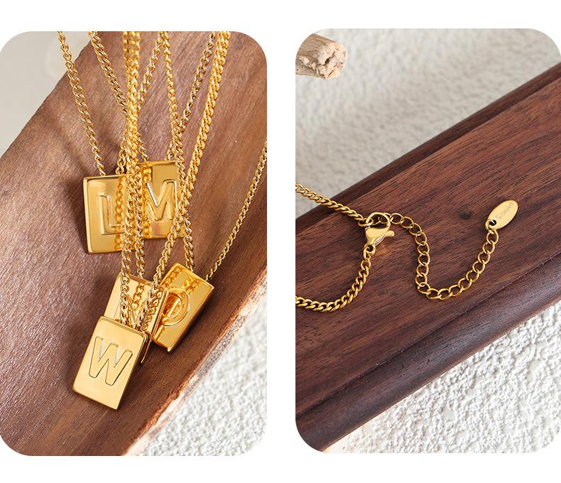 Collar con colgante de oro pequeño con letra cuadrada, cadena de clavícula de acero de titanio incoloro de lujo, estilo europeo y americano, joyería transfronteriza.