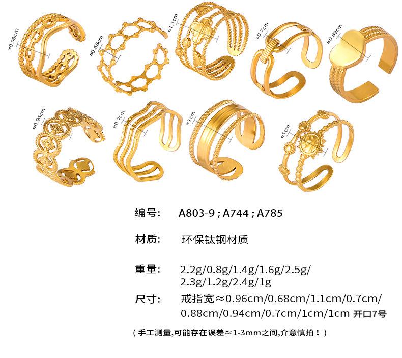 Anillo de dedo vintage con diseño de costura hueca, personalidad simple, acero de titanio chapado en oro, anillo de apertura multicapa apilado, joyería de viento