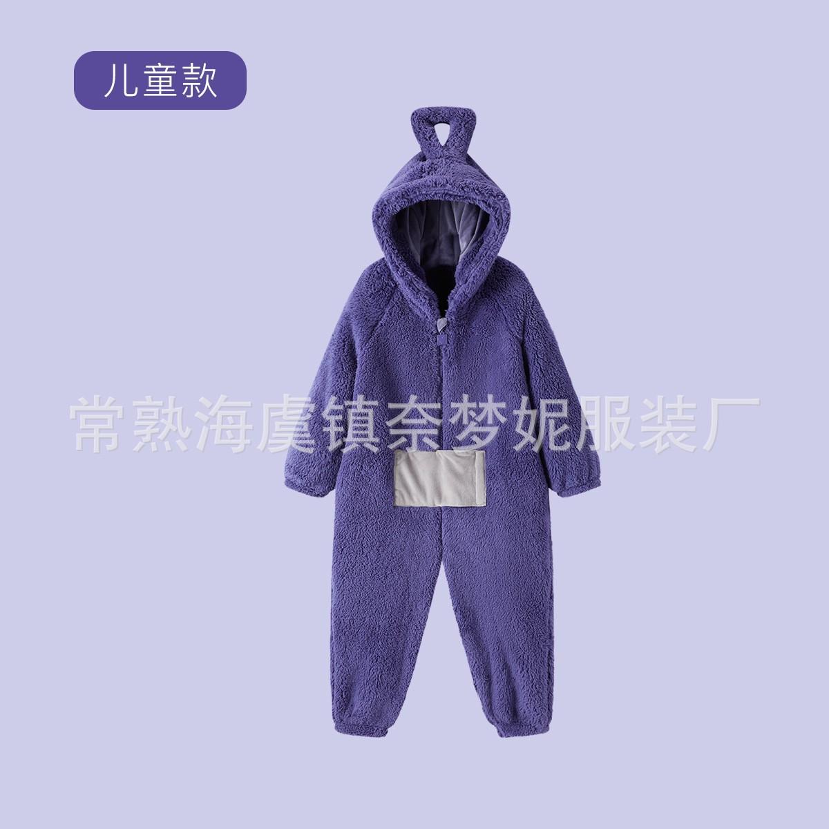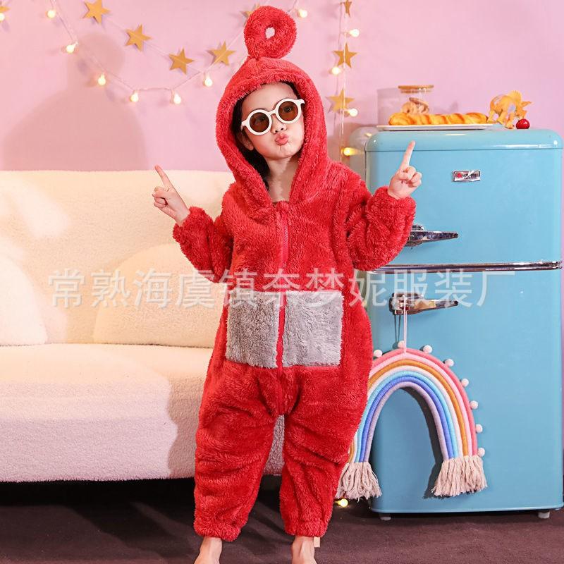Pijama Entero de Terciopelo de Algodón Shu con Dibujos Animados de Animales Mixto al Por Mayor Modelos de Otoño e Invierno para Niños Medianos y Grandes Teletubbies Ropa Cálida para el Hogar
