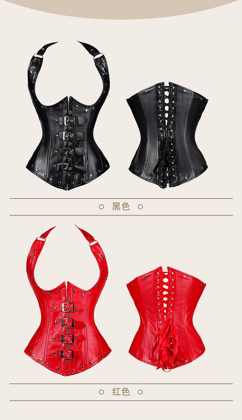 Corsé Palacio Europeo y Americano Transfronterizo Halter Cuero PU Fajas Huesos de Acero Remaches Body Gótico para Mujer