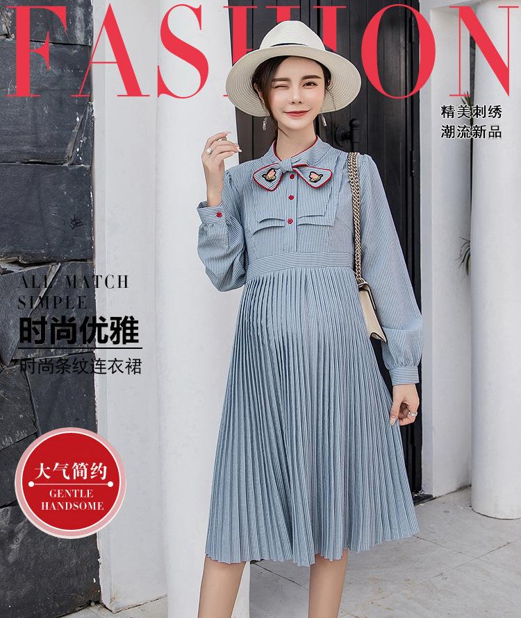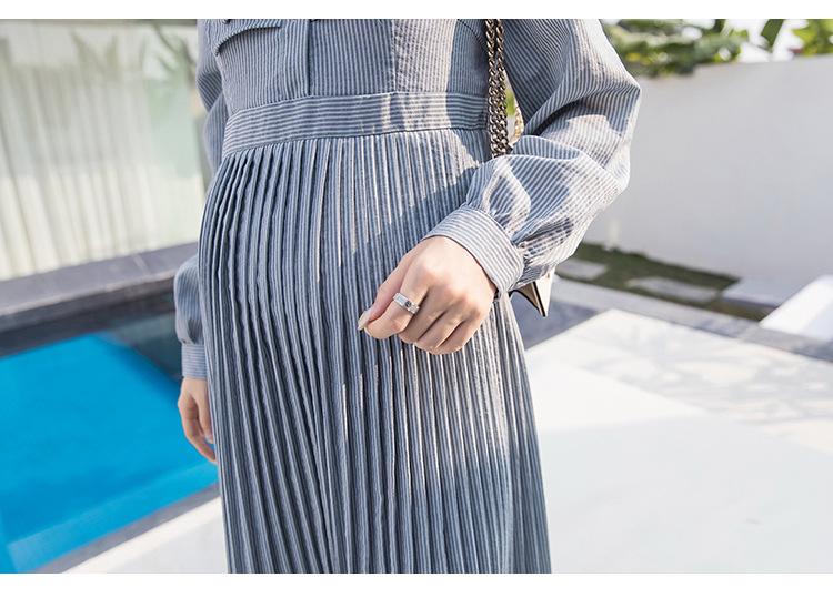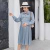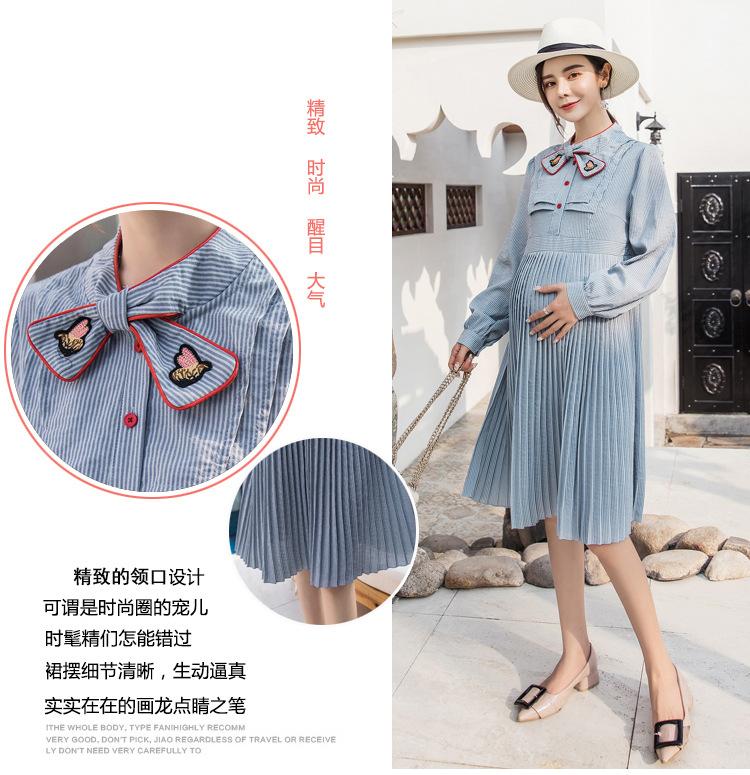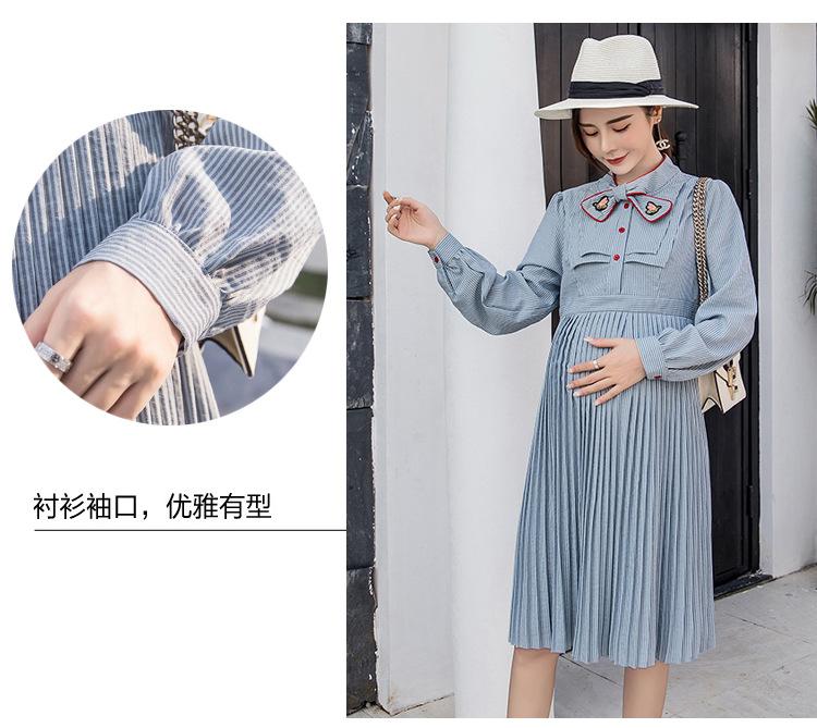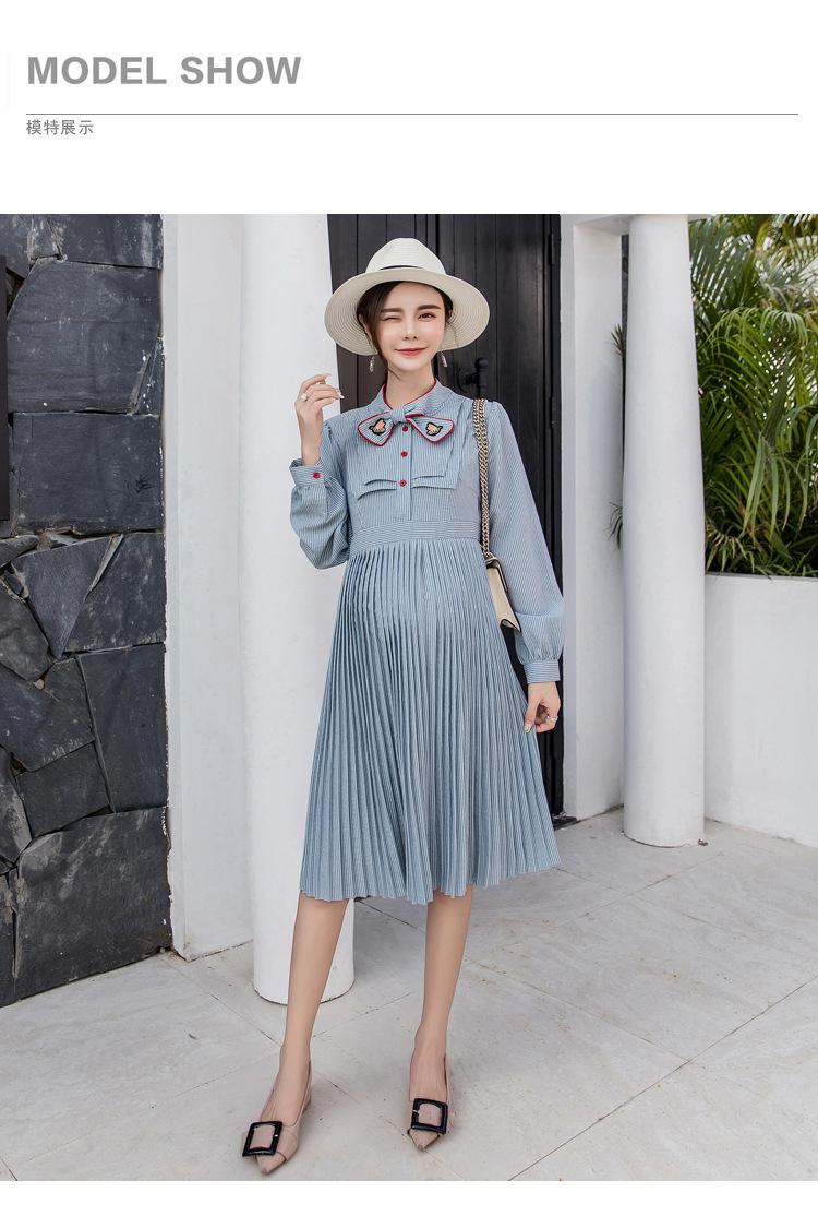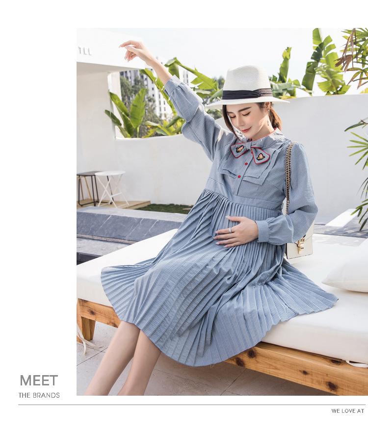Ropa de maternidad en stock otoño e invierno manga larga plisada cuello mariposa holgada talla grande Nuevo vestido para mujeres embarazadas mujeres