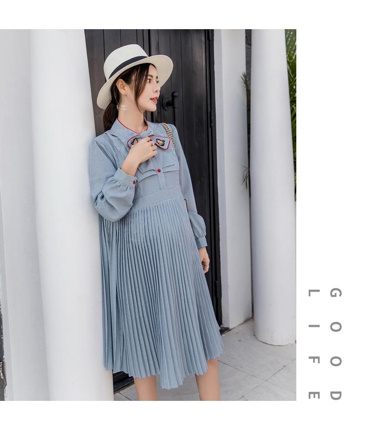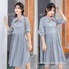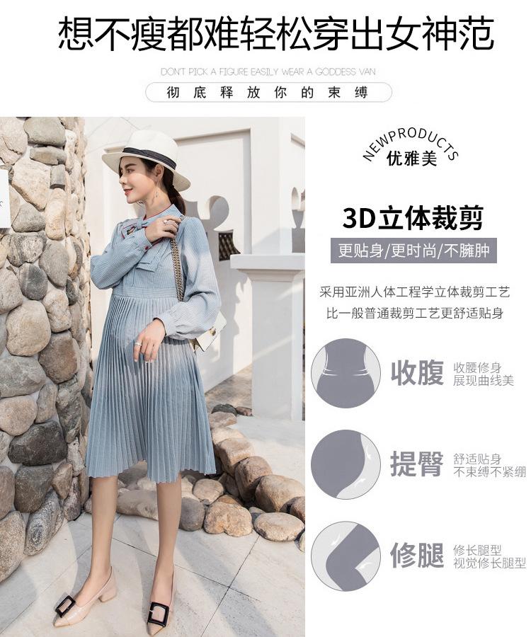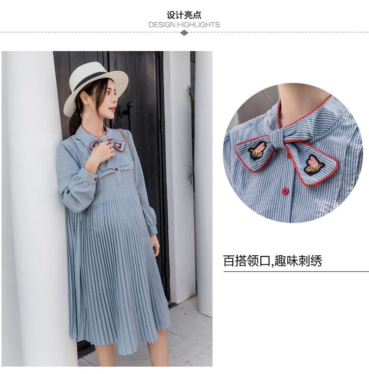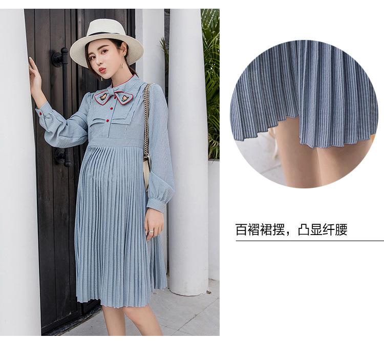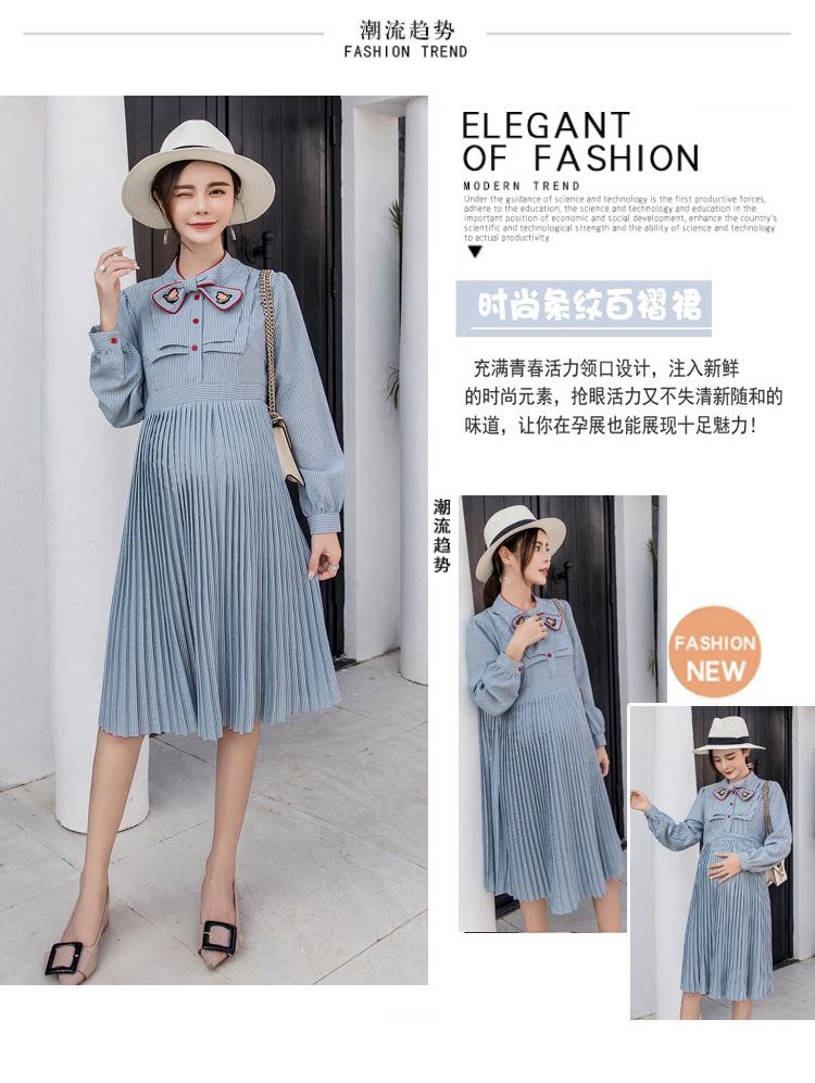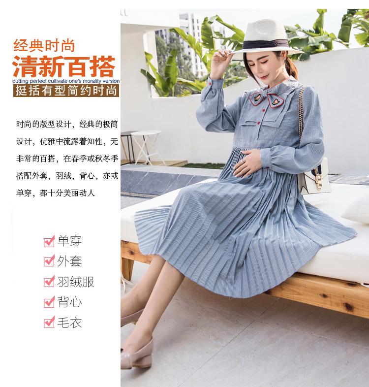 Ropa de maternidad en stock otoño e invierno manga larga plisada cuello mariposa holgada talla grande Nuevo vestido para mujeres embarazadas mujeres
