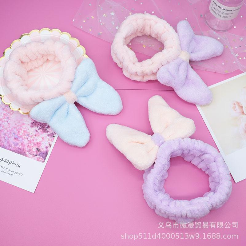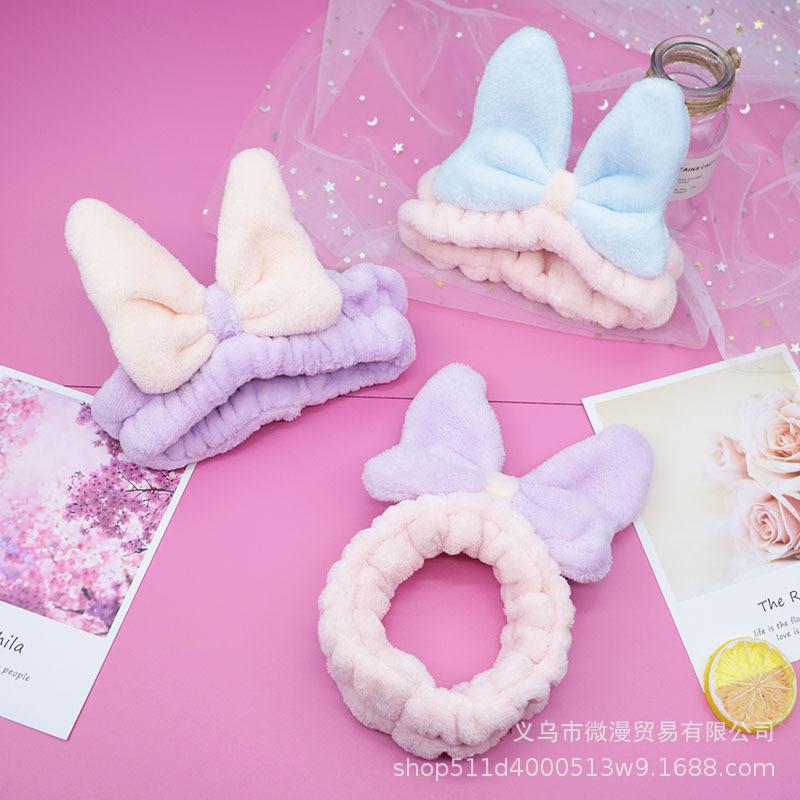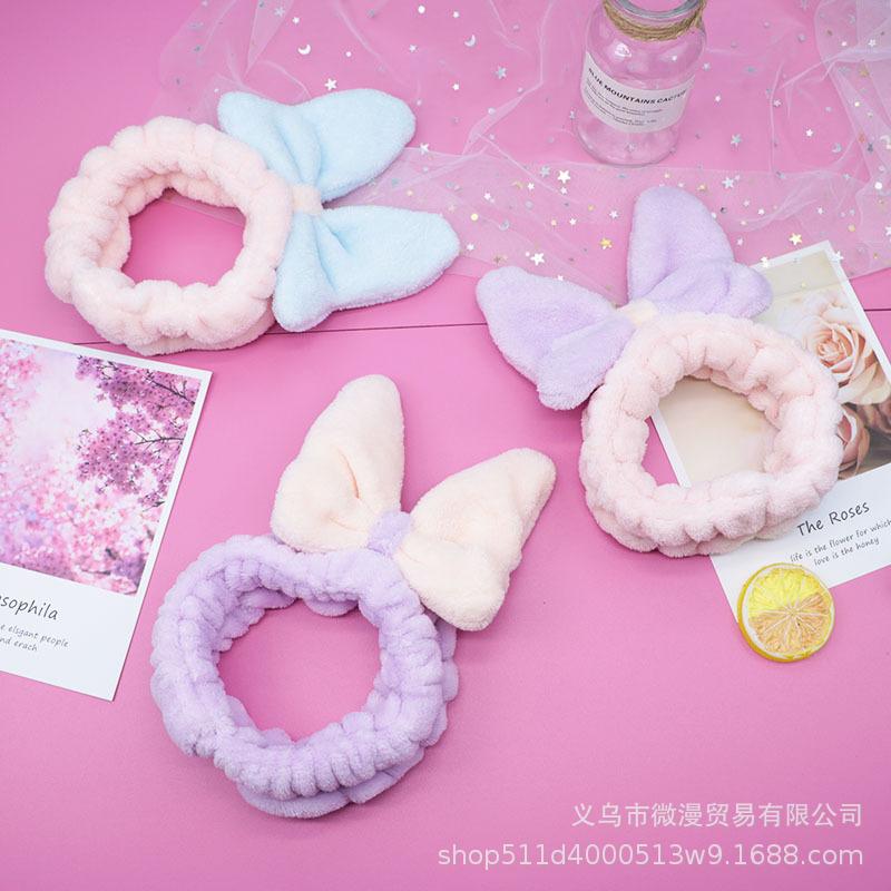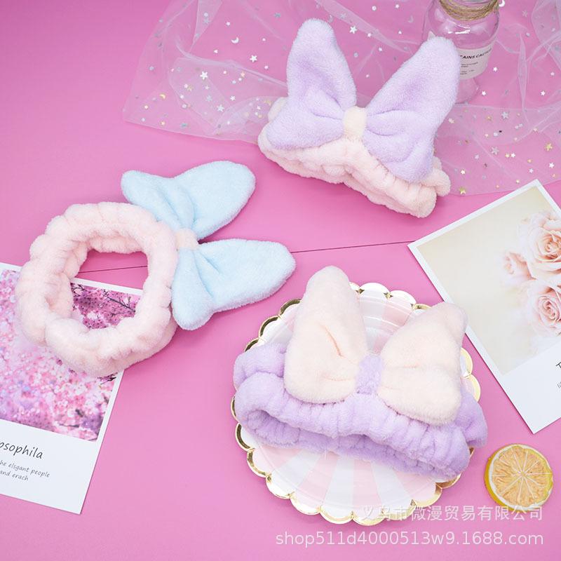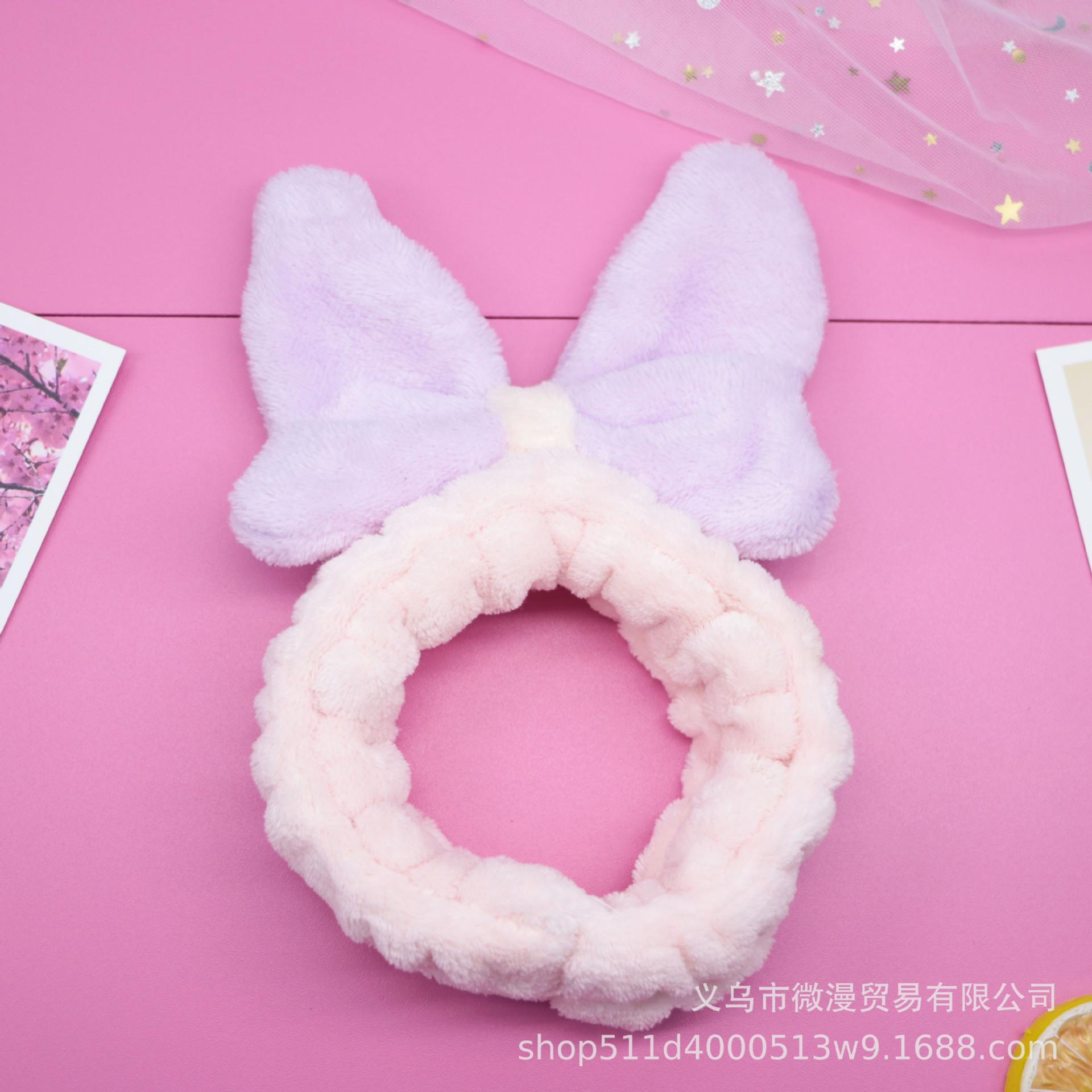 Banda para el cabello con lazo grande de estilo coreano, banda elástica de felpa simple de color europeo y americano para lavarse la cara, aplicar mascarilla y maquillaje.