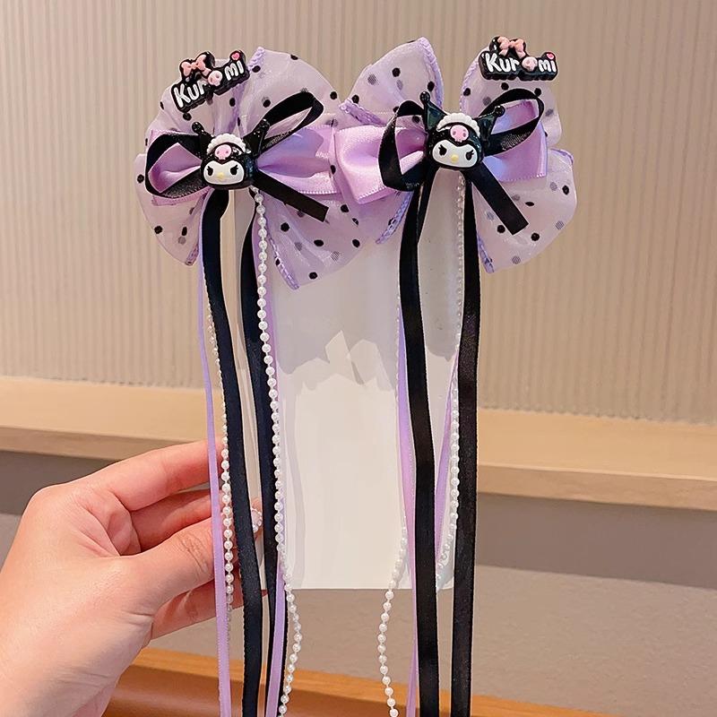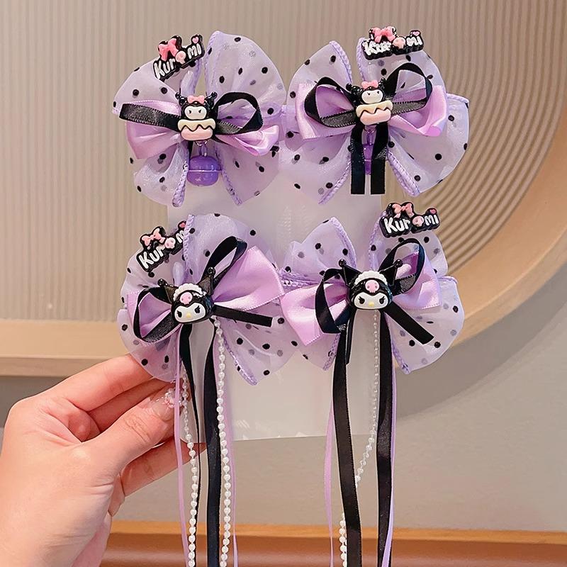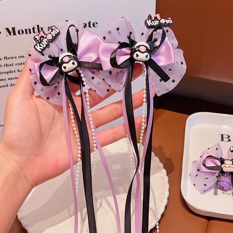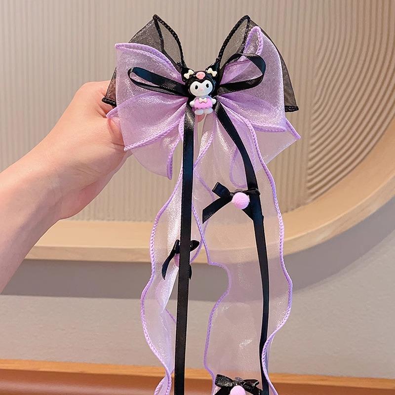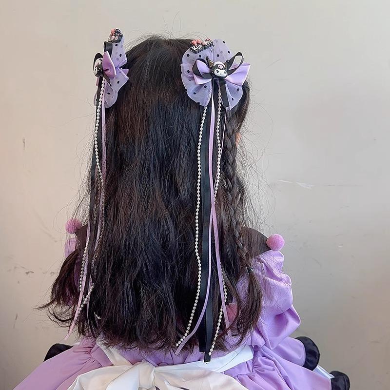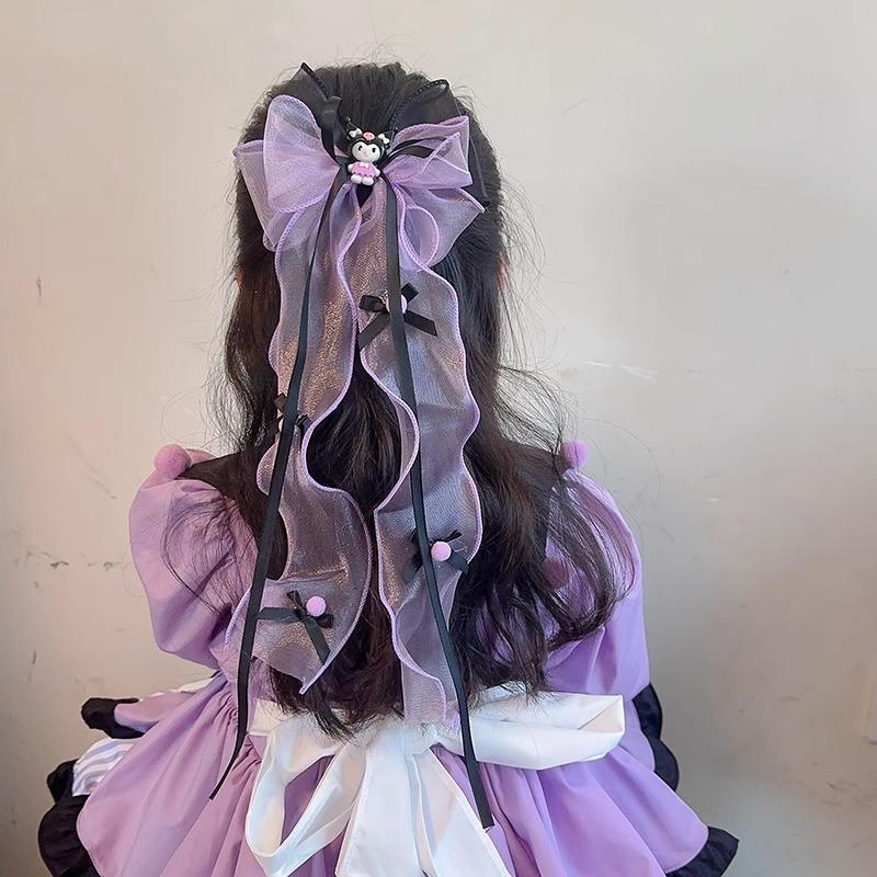 Horquilla Kouromi negra y morada para niña, bonito accesorio para el cabello, horquilla con lazo de princesa, tocado para bebé