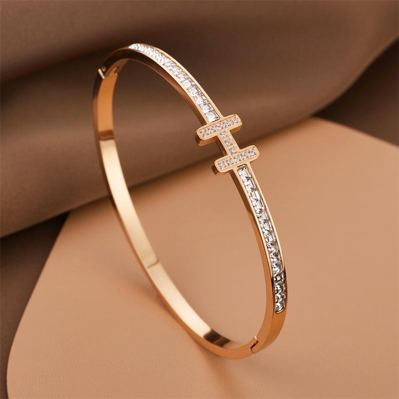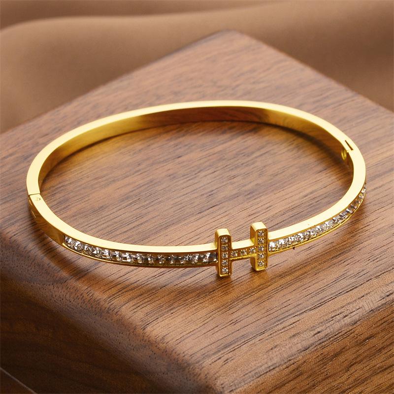 Pulsera simple europea y americana de acero de titanio para mujer H Diamante oro de 18K elegante de alta calidad pulsera de acero inoxidable pulsera de moda Net Red