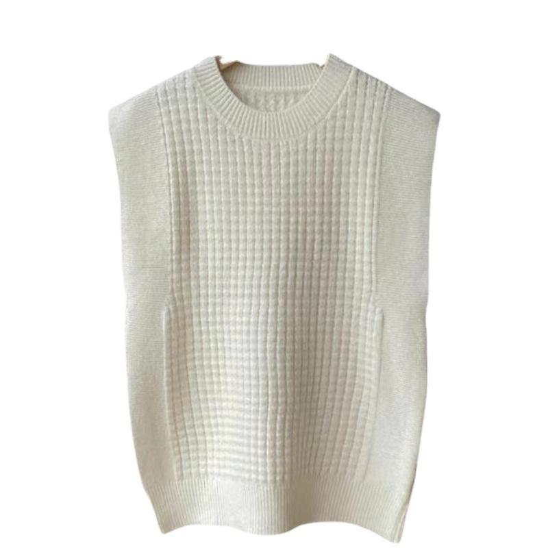 Nuevo Chaleco de Cachemira de Oveja de Otoño de Hongtai, Estilo Elegante para el Trabajo, Versátil Ropa Exterior de Cuello Redondo, Chaleco de Punto para Mujer
