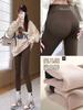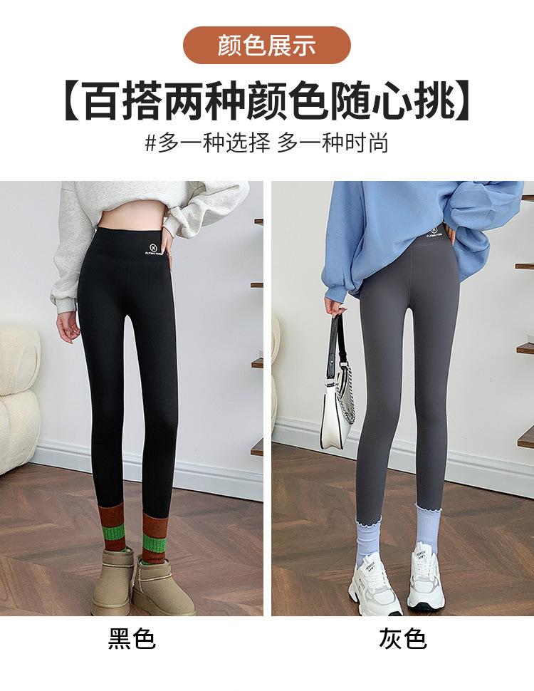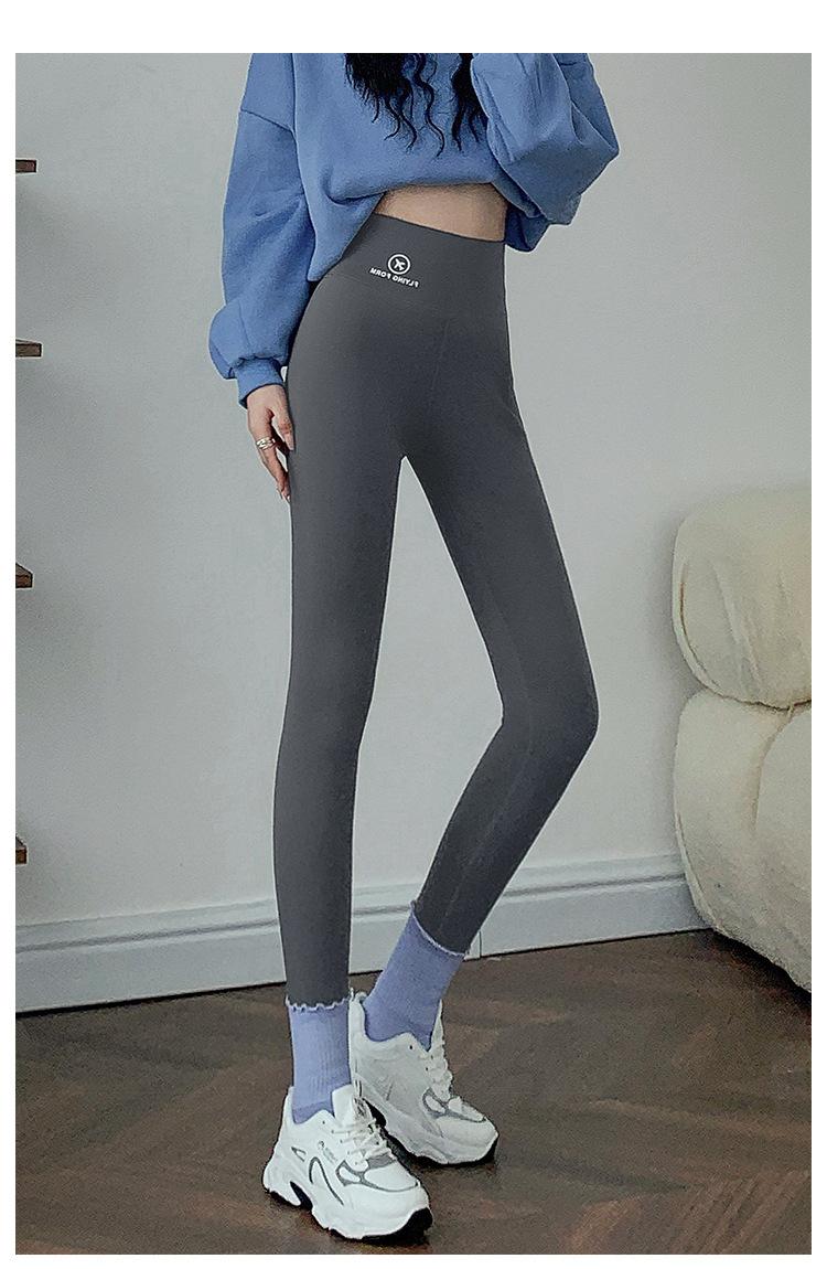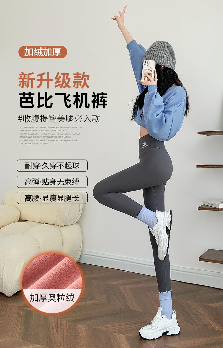 Pantalones de tiburón con forro polar para mujer, ropa exterior de otoño e invierno, leggings cálidos y gruesos, pantalones Barbie de yoga grises de cintura alta mate