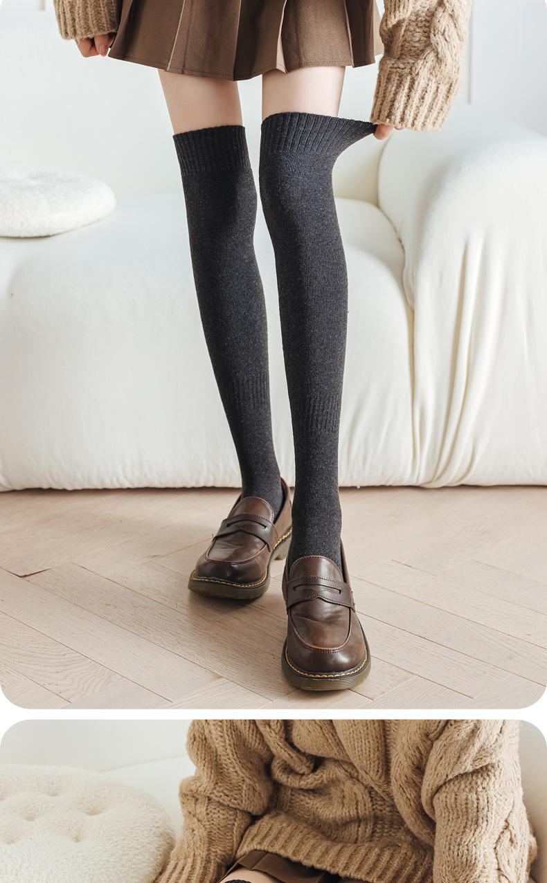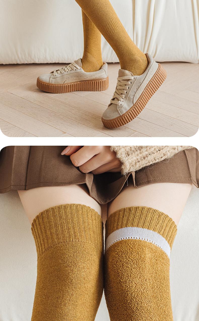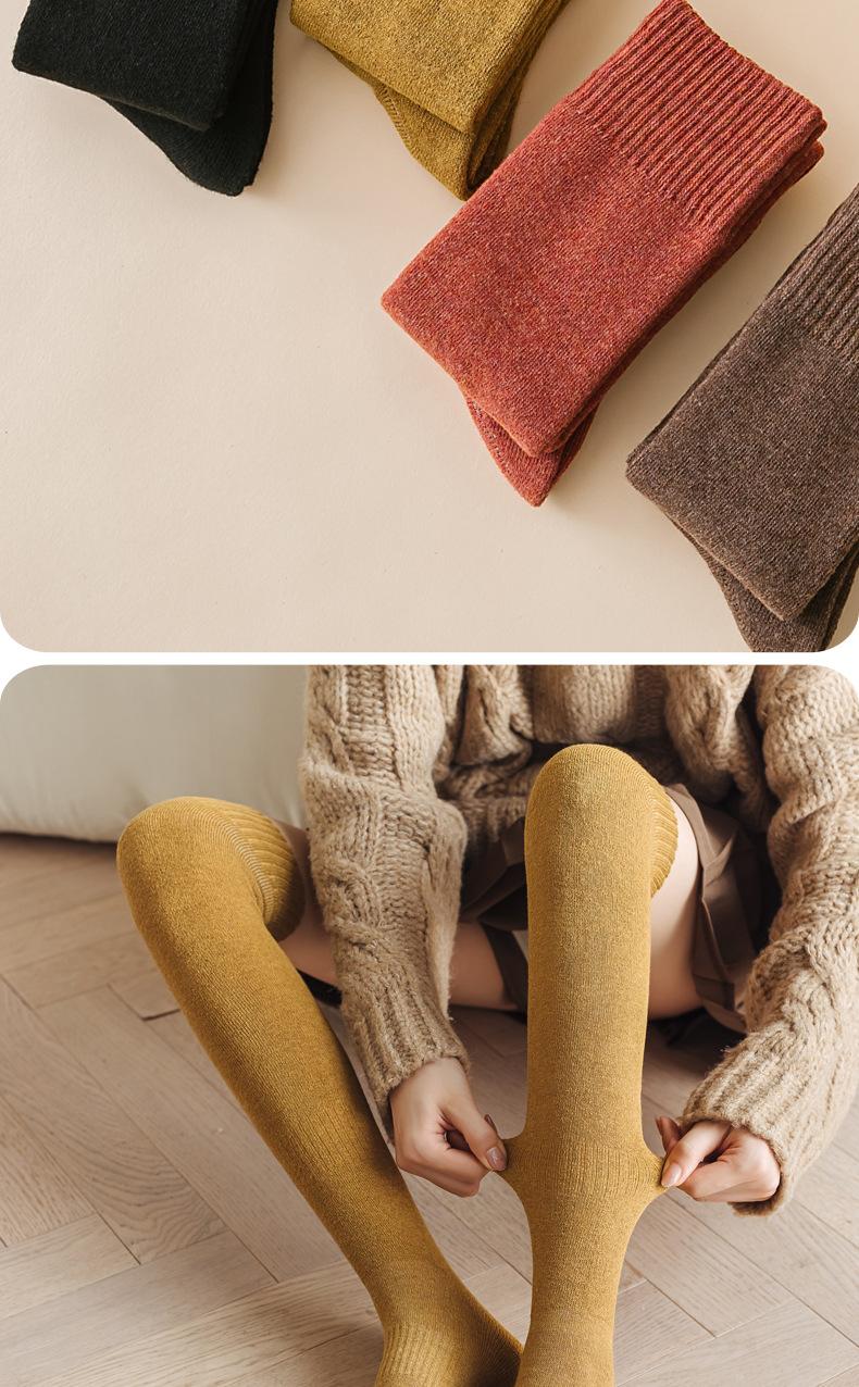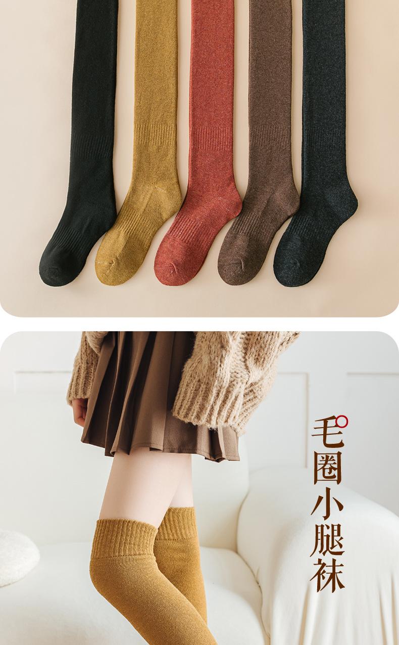 Calcetines por encima de la rodilla para mujer otoño e invierno gruesos con forro polar cálidos medias calcetines Terry hasta la pantorrilla color sólido calcetines altos hasta la rodilla estilo jk