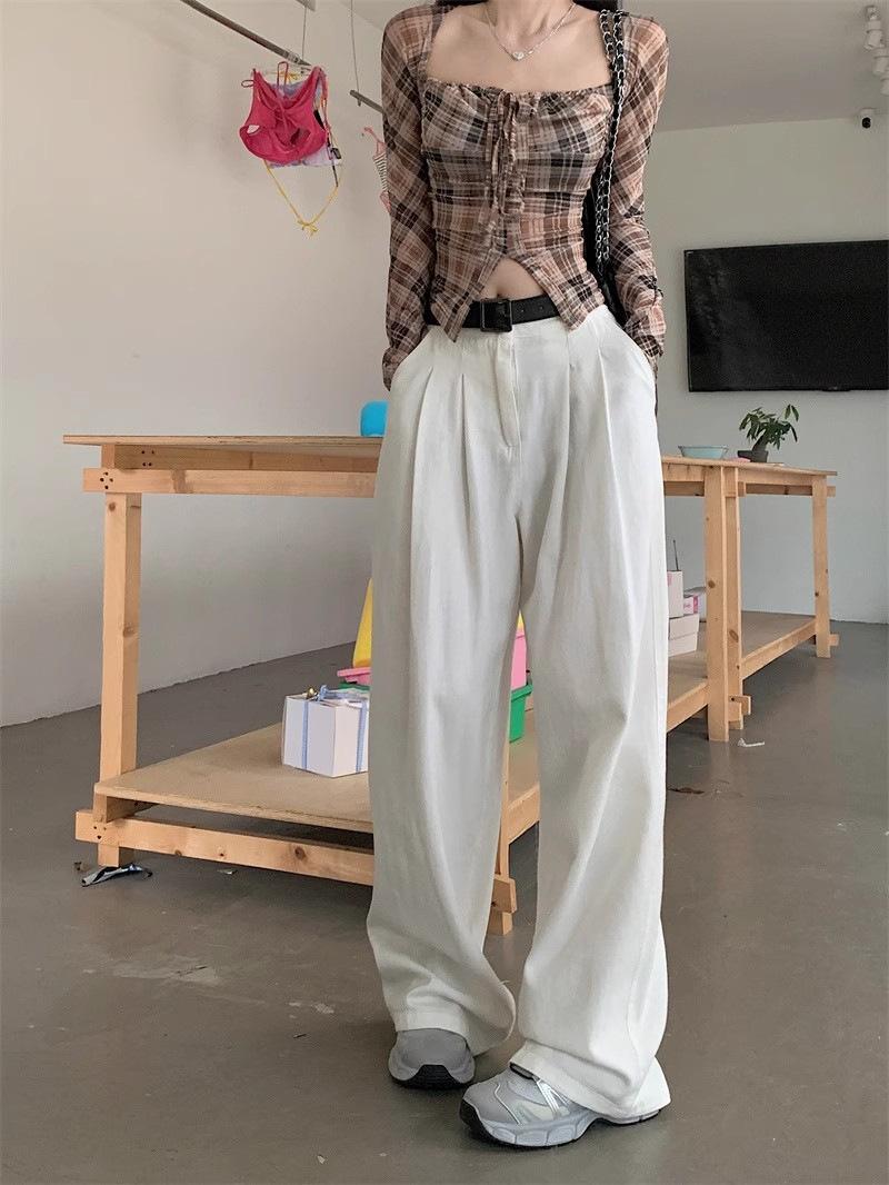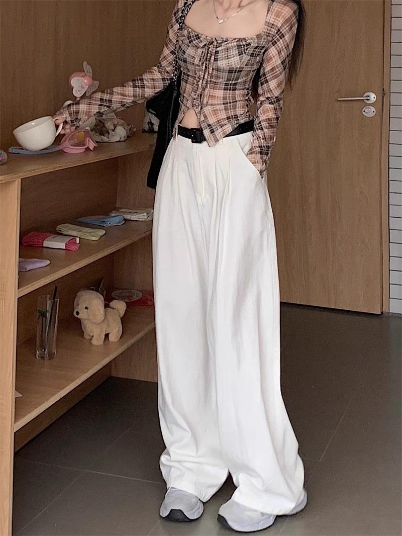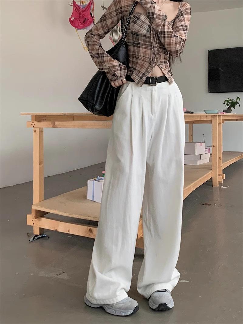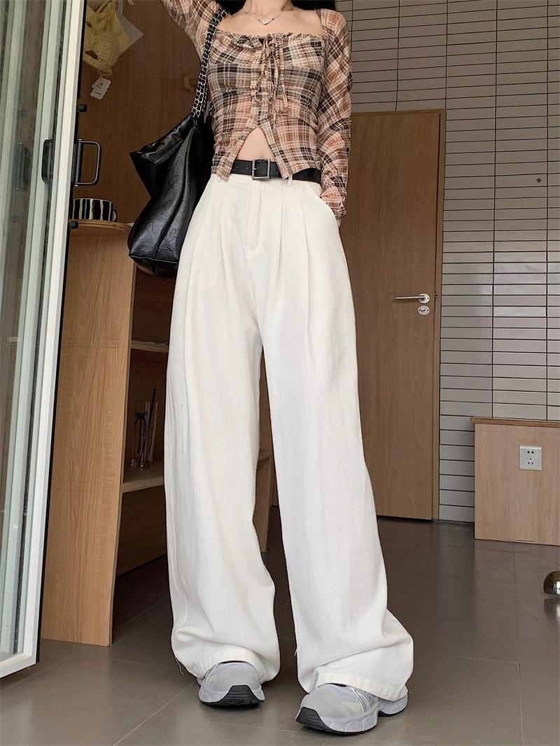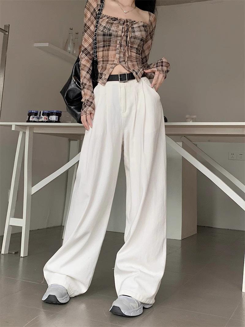 Pantalones casuales 2024 para mujer, pantalones de pierna ancha fáciles de cuidar, pantalones de moda para viajeros, primavera y verano, pantalones sencillos personalizados, traje blanco de cintura alta