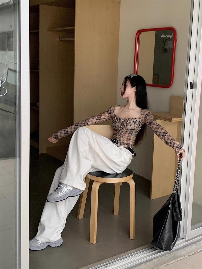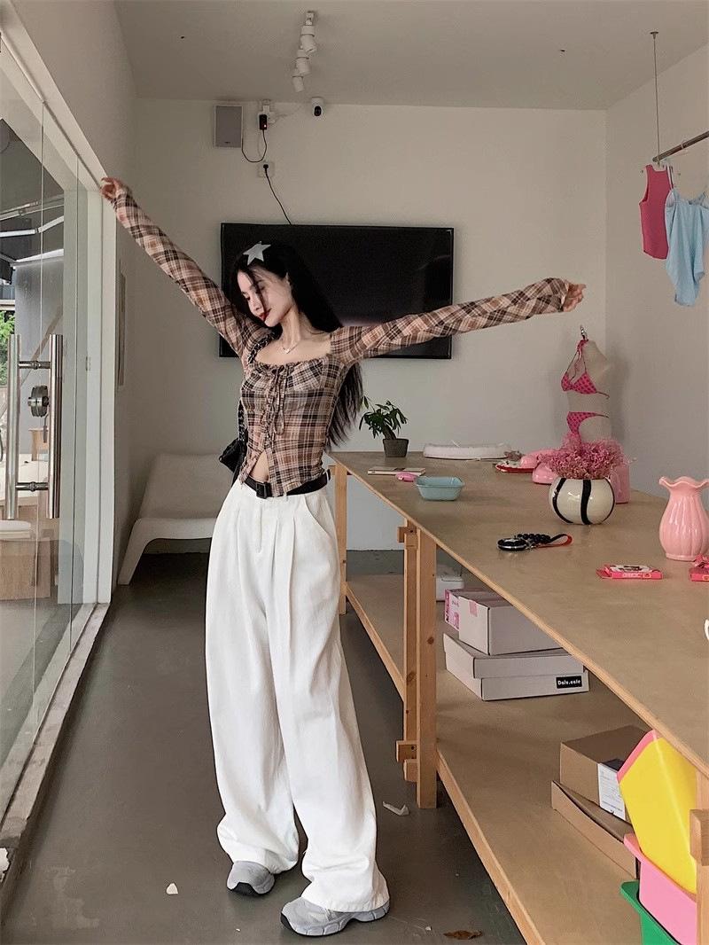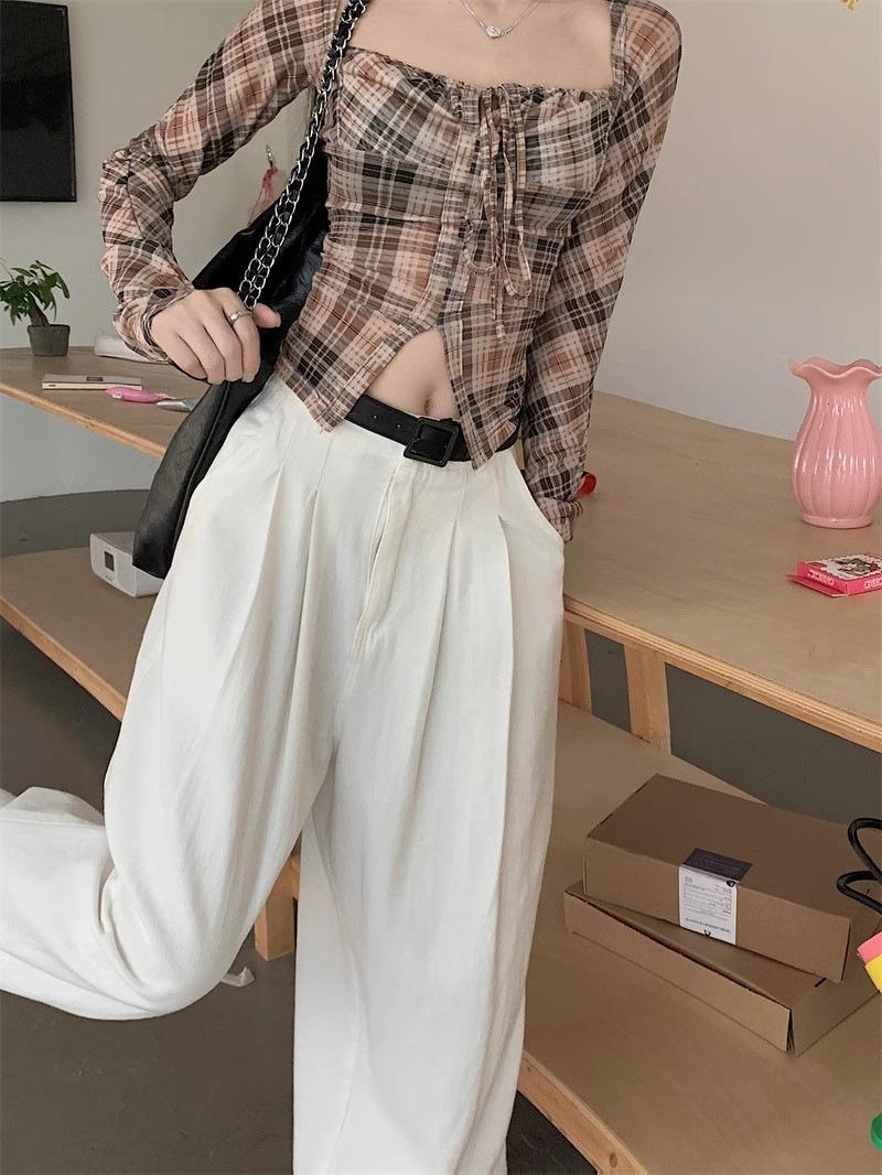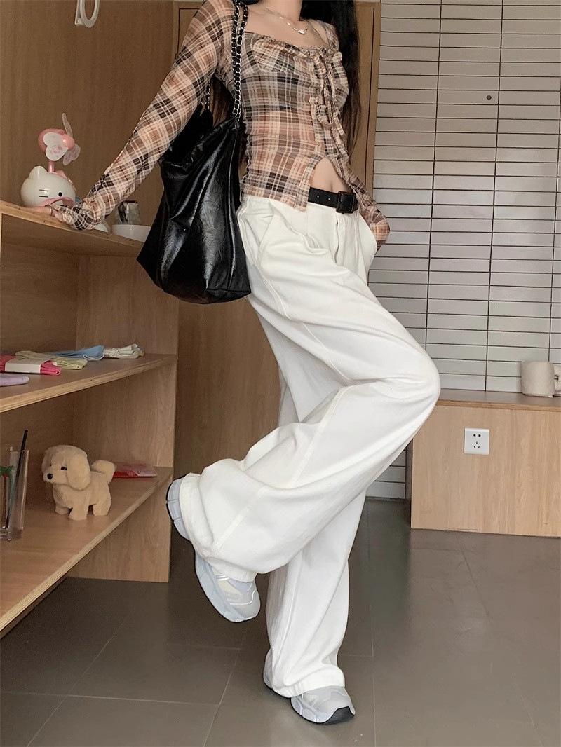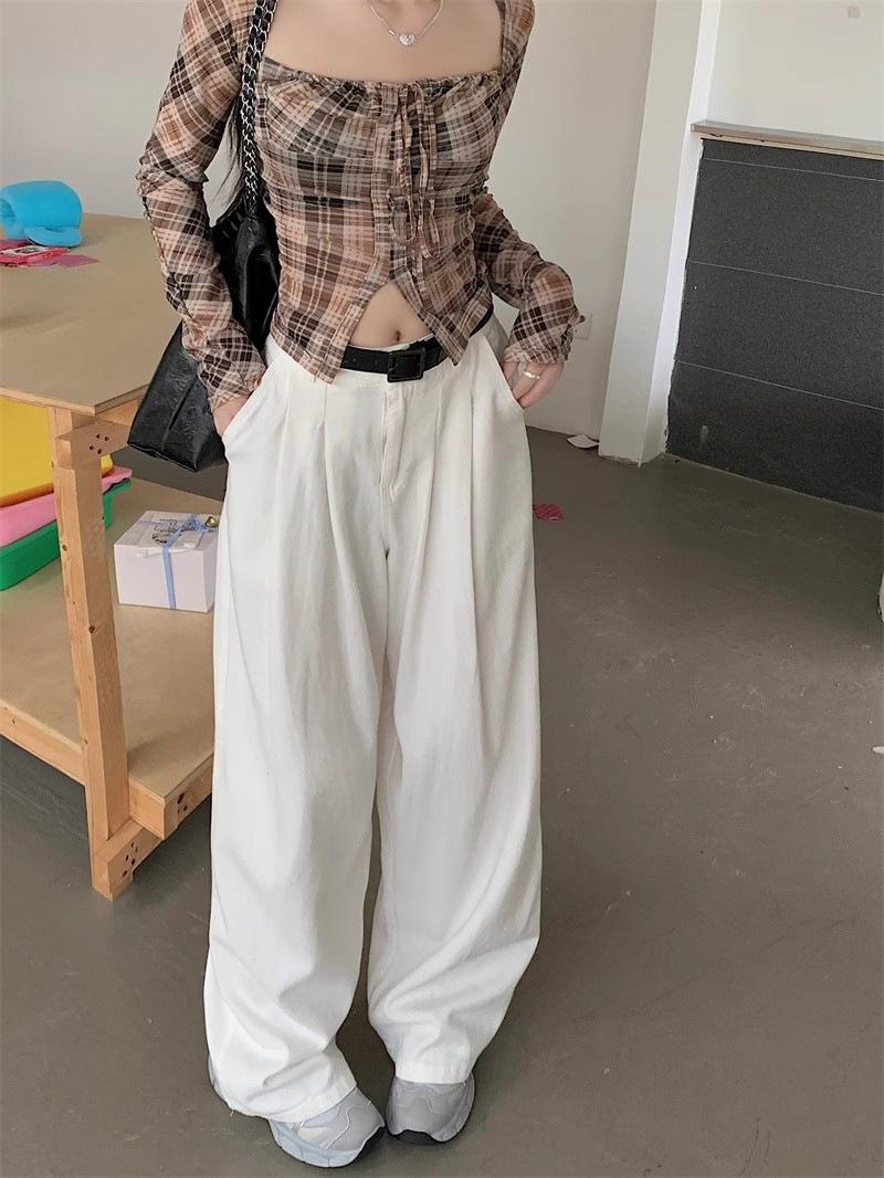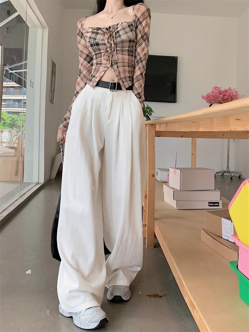Pantalones casuales 2024 para mujer, pantalones de pierna ancha fáciles de cuidar, pantalones de moda para viajeros, primavera y verano, pantalones sencillos personalizados, traje blanco de cintura alta