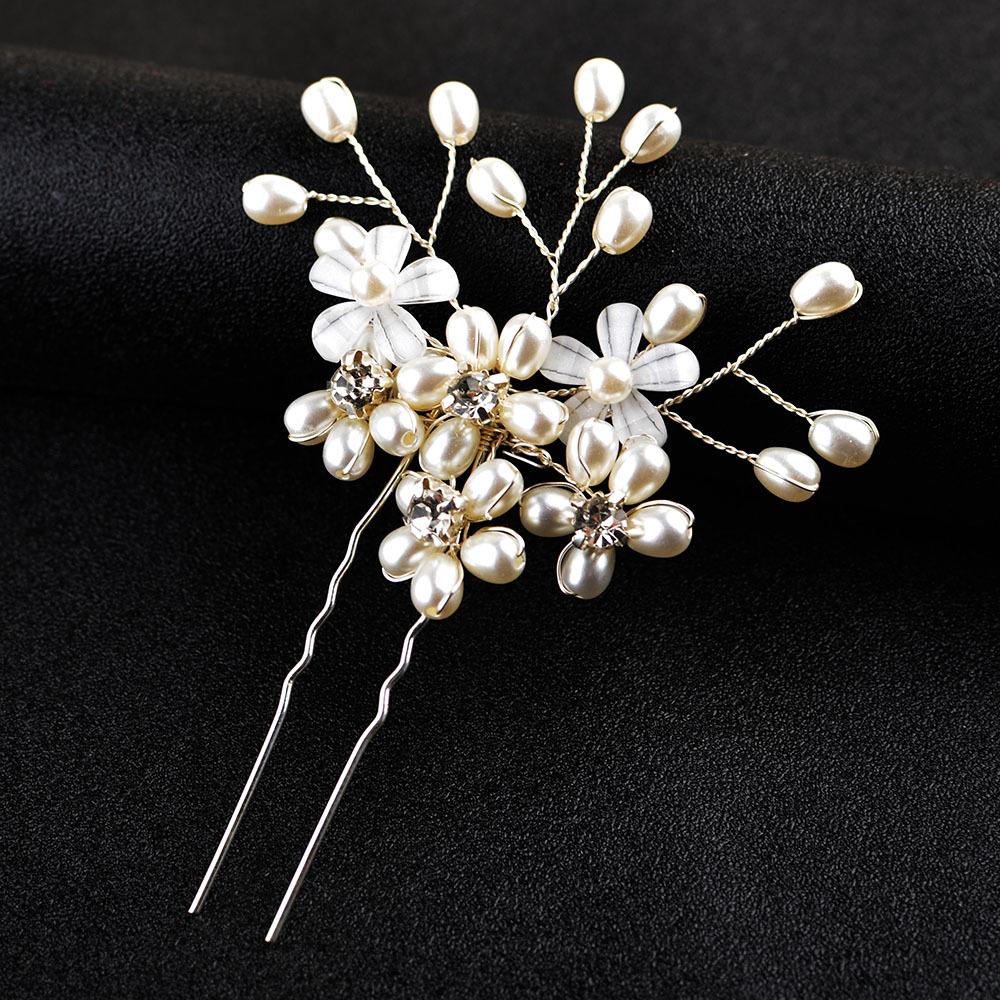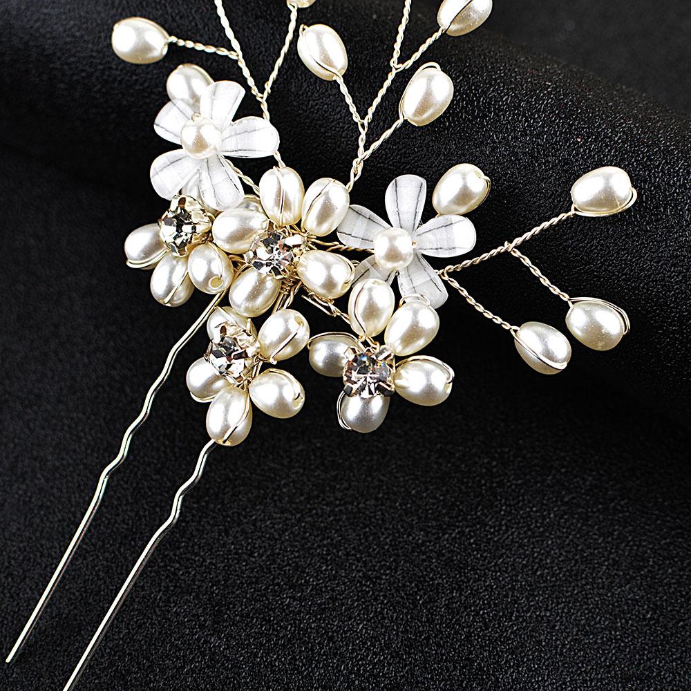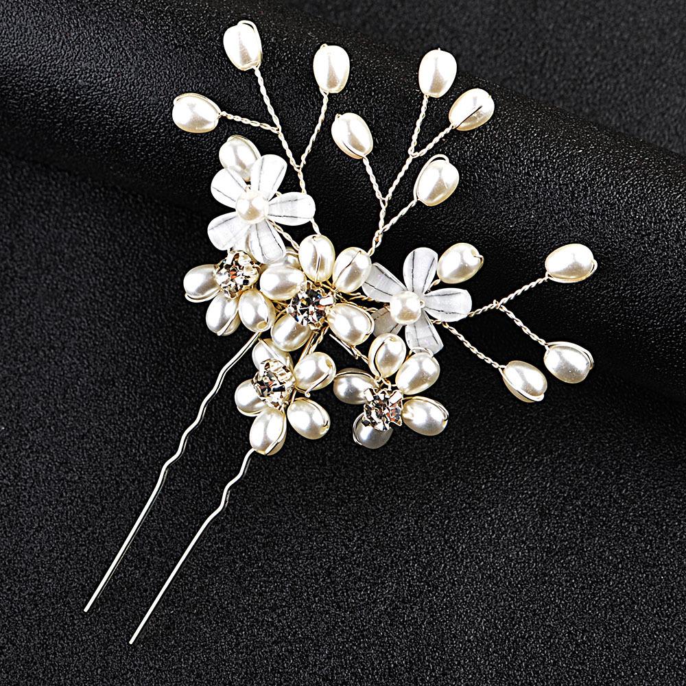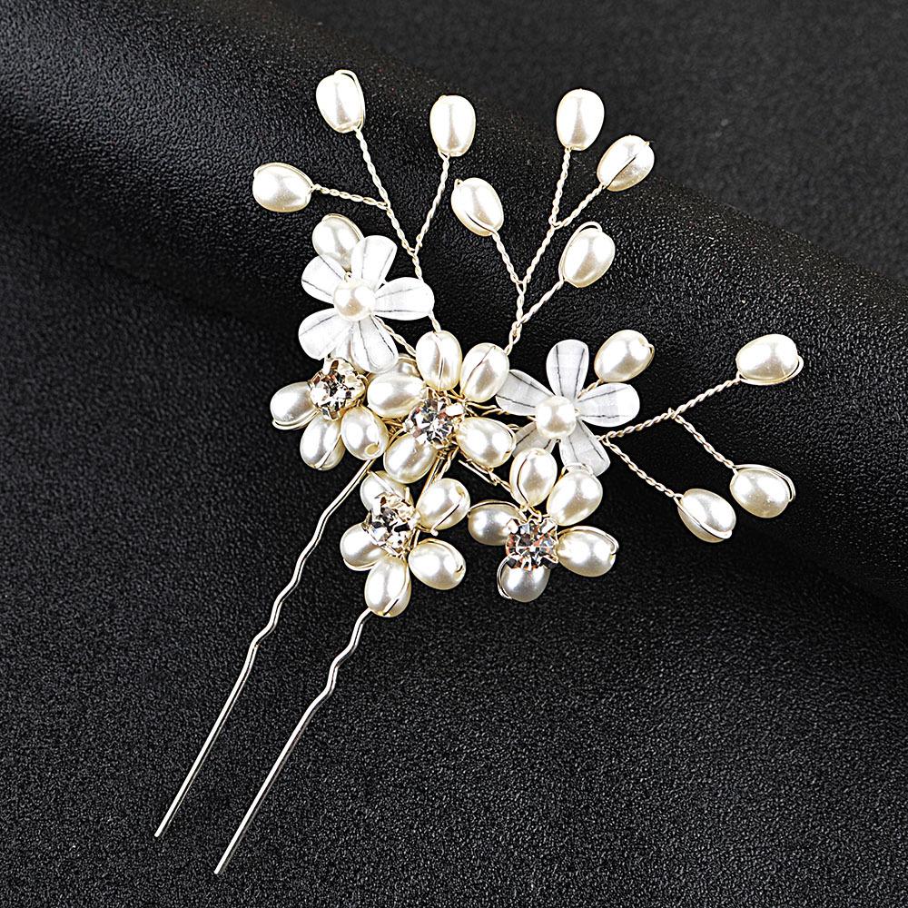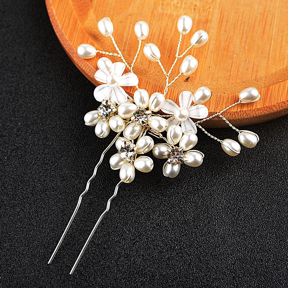 Horquilla hecha a mano transfronteriza con flor de diamante y perla en forma de U, tocado, accesorios de boda para novias, accesorios para el cabello