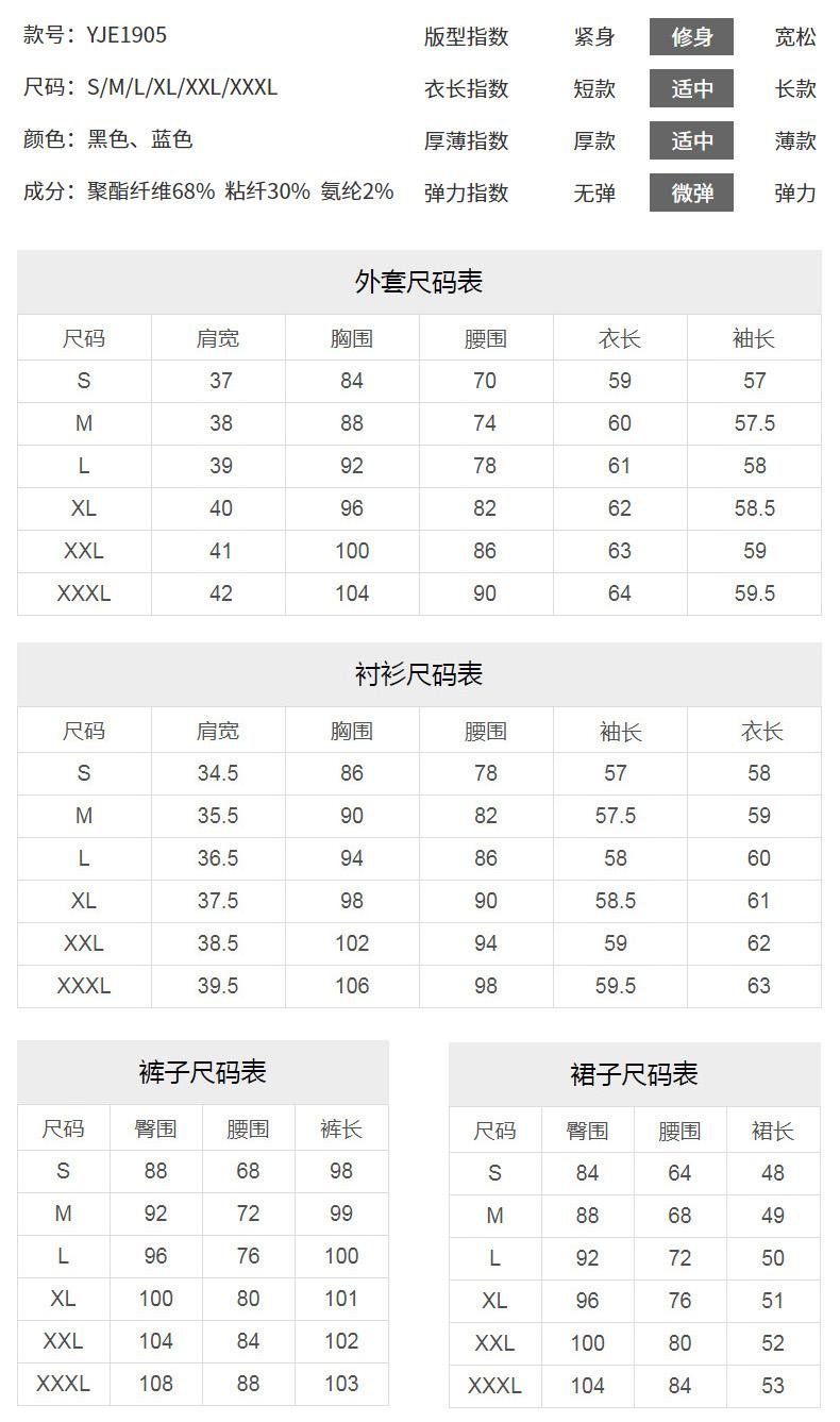 One-piece black coat, One-piece blue jacket, Black coat + pants, Black coat + skirt, Blue coat + pants, Blue c...