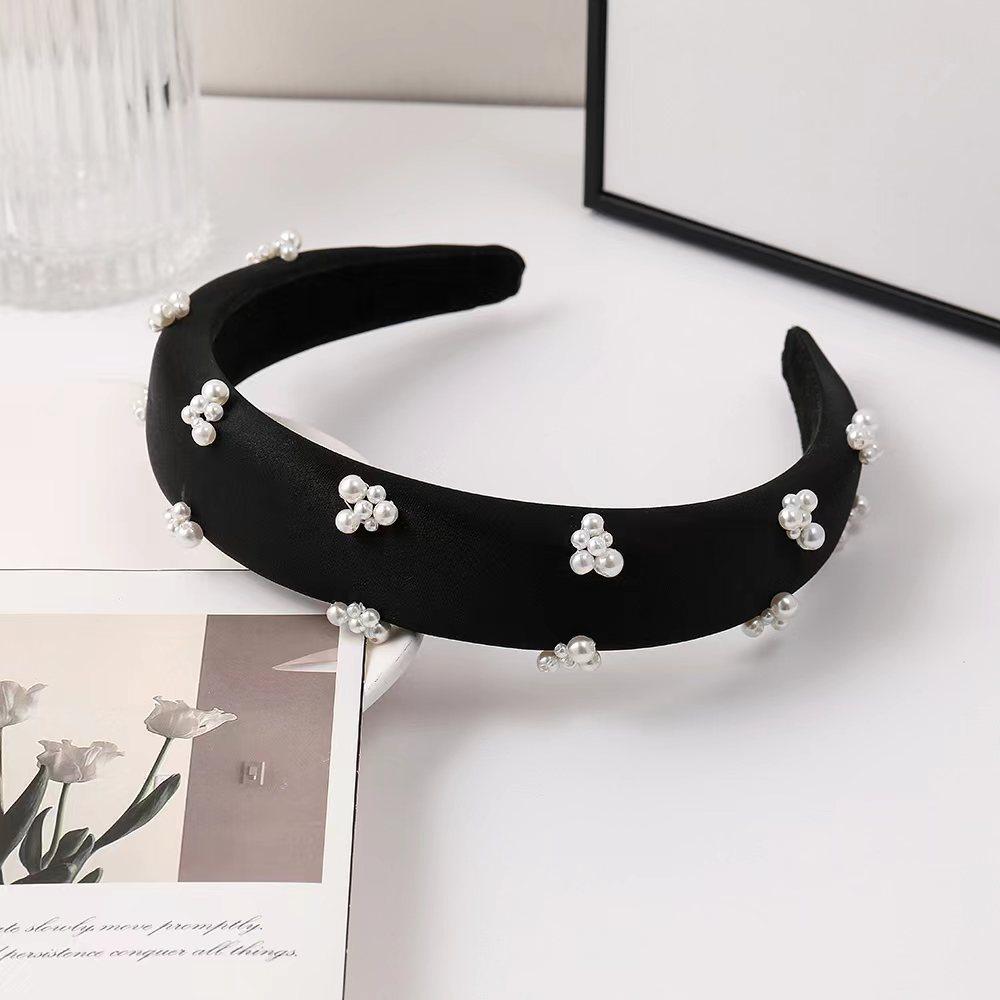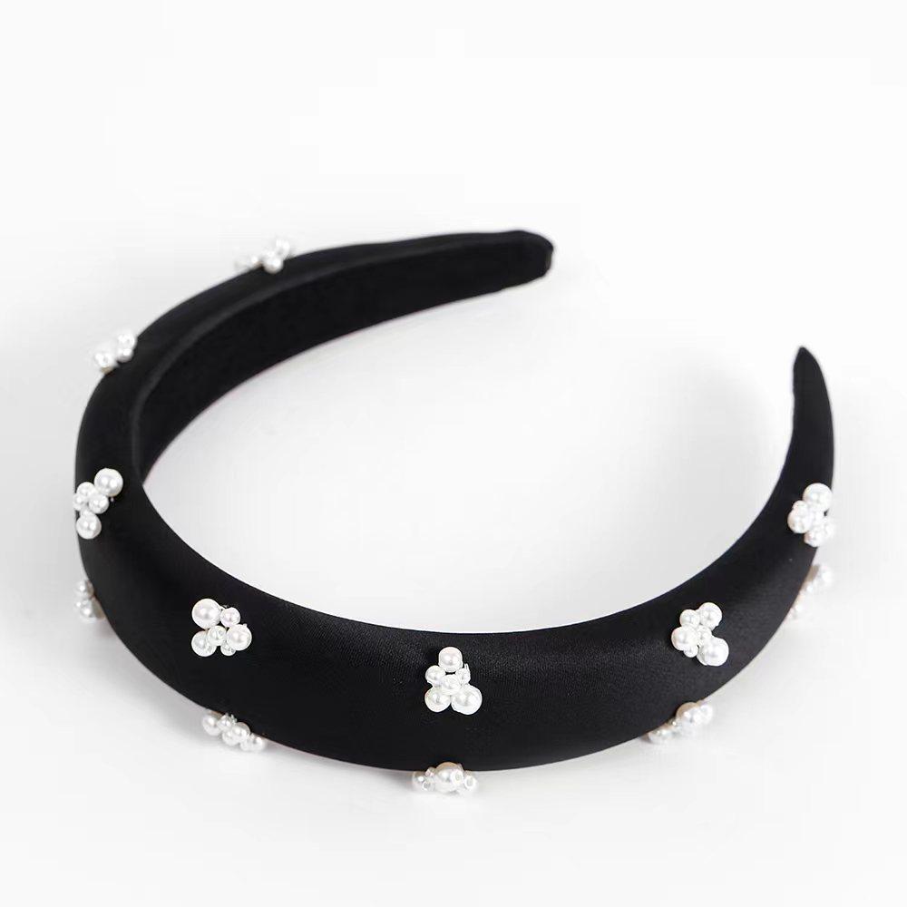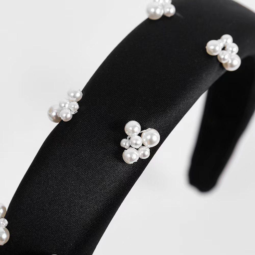 Yuhan 20232 nueva diadema negra de estilo coreano con perlas cosidas a mano, diadema alta con calavera, aspecto de rostro femenino, versión pequeña de las Cuatro Estaciones