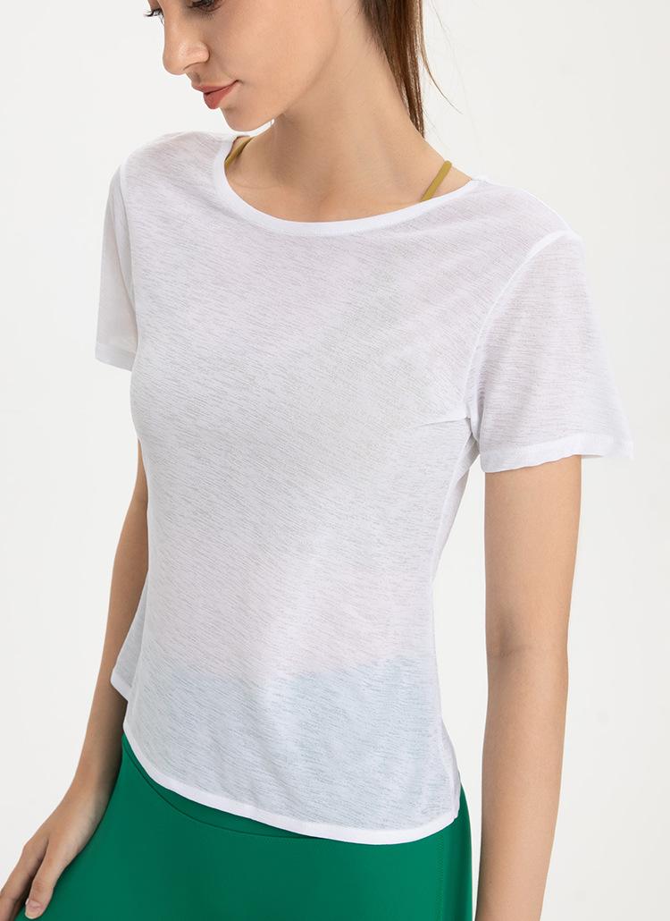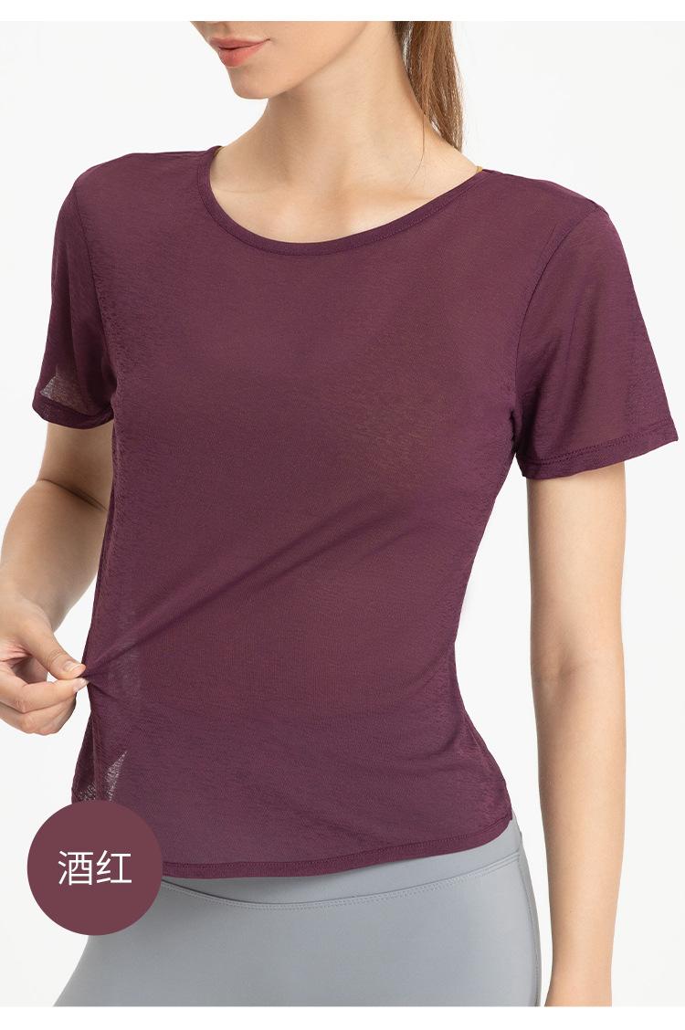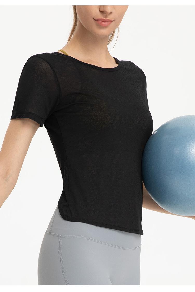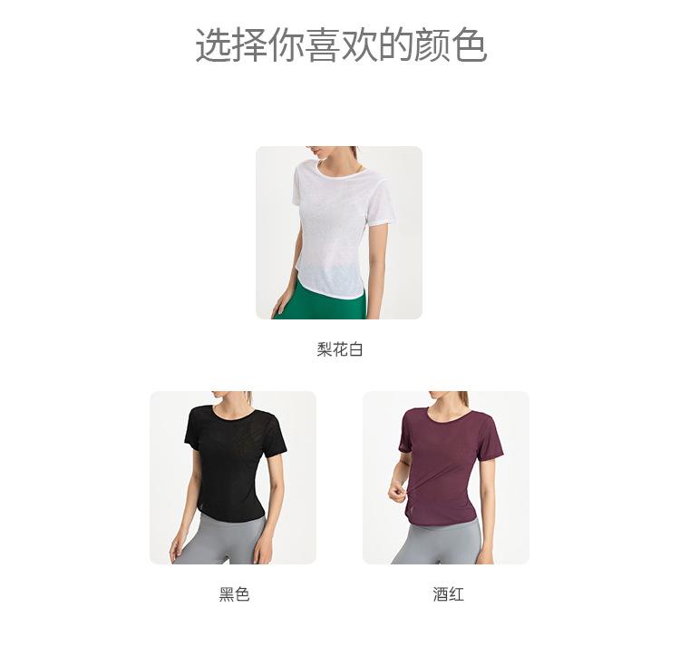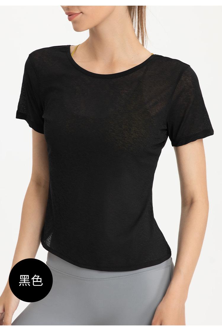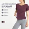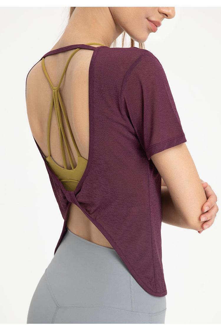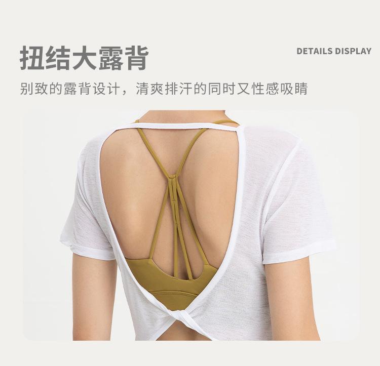 Nueva camiseta de yoga de manga corta para mujer, transpirable, fina, con espalda descubierta, para fitness, de verano, de secado rápido, holgada y deportiva.