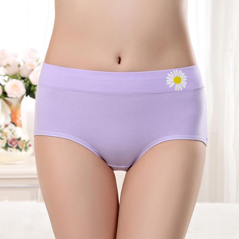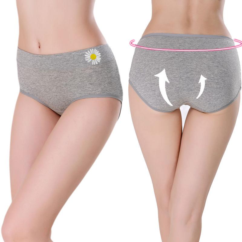 Bragas estampadas para mujer, cintura media, realce de abdomen, cadera, color sólido, entrepierna de algodón, pantalones triangulares de crisantemo, pantalones de mujer de talla grande, lote de cabeza