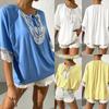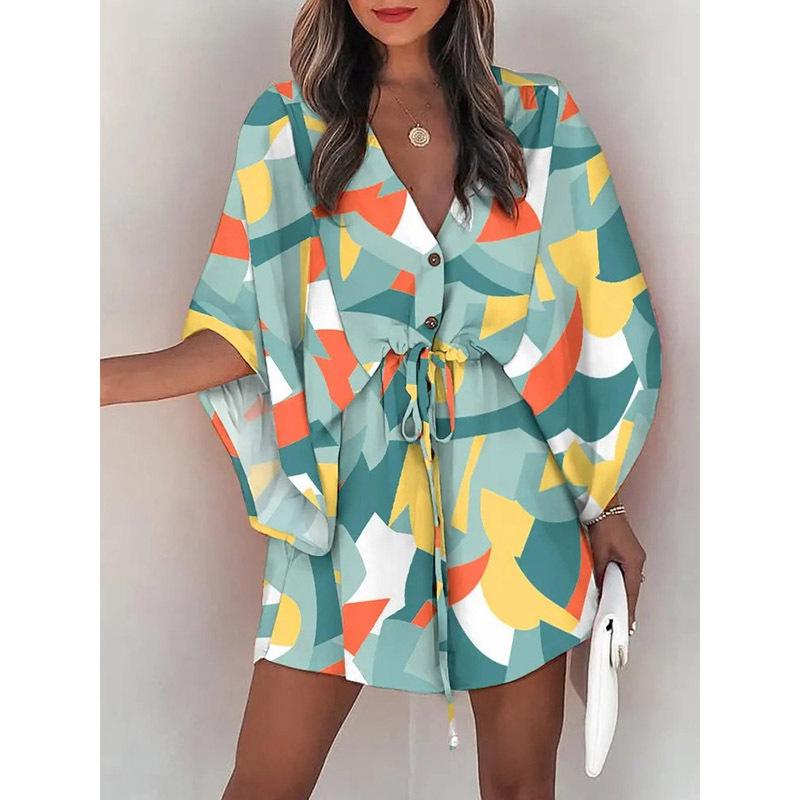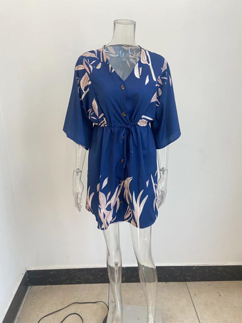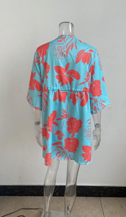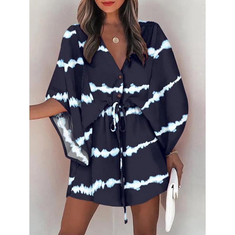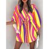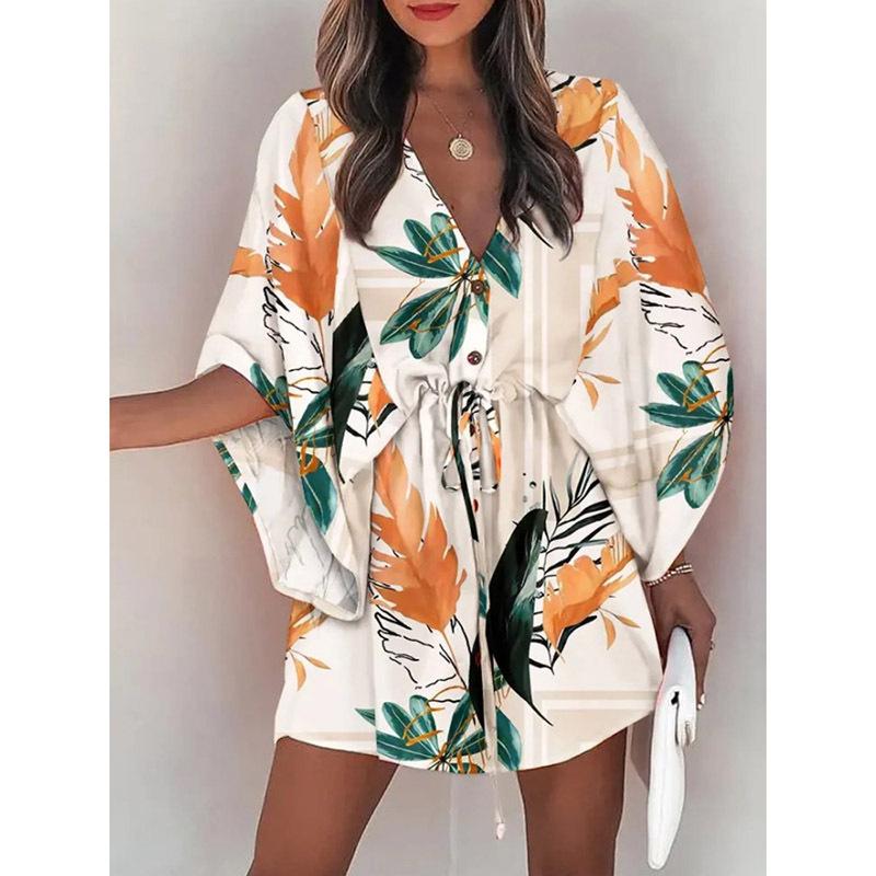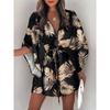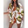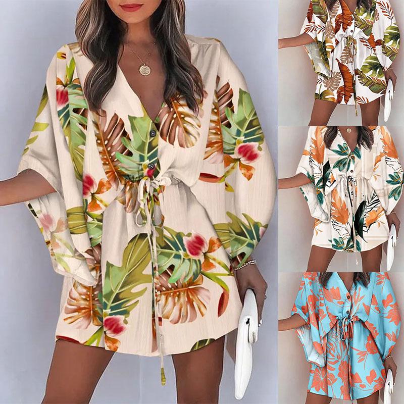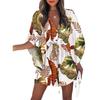 Falda de playa estampada con cordones y cuello en V de Amazon con mangas voladoras de verano para mujer de comercio exterior europeo y americano transfronterizo al por mayor