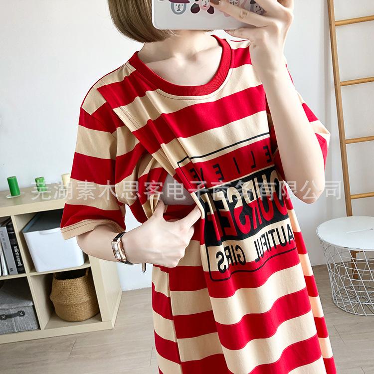 Camisón de lactancia, pijama para embarazadas, de verano, fino, de manga corta, holgado, de talla grande, para uso en el hogar de ancianos posparto