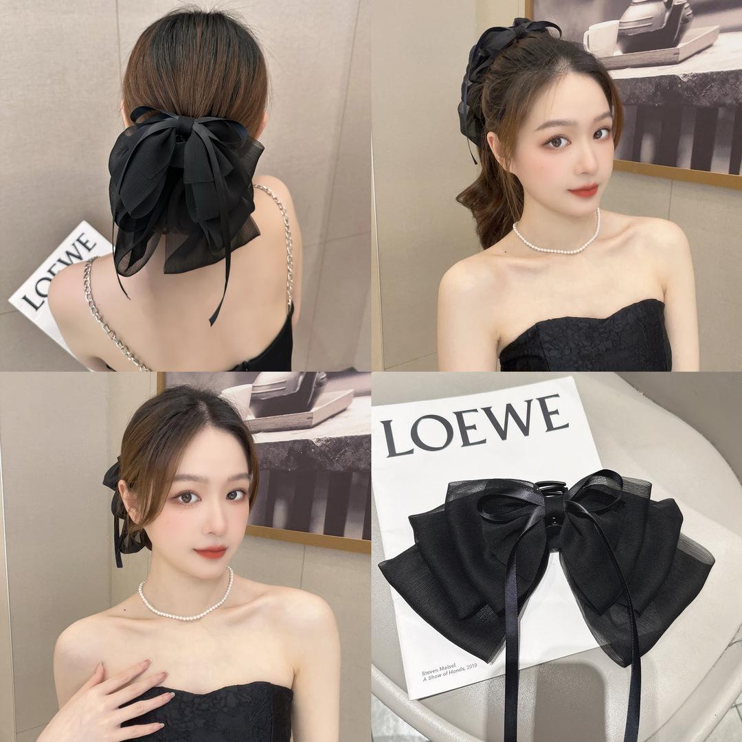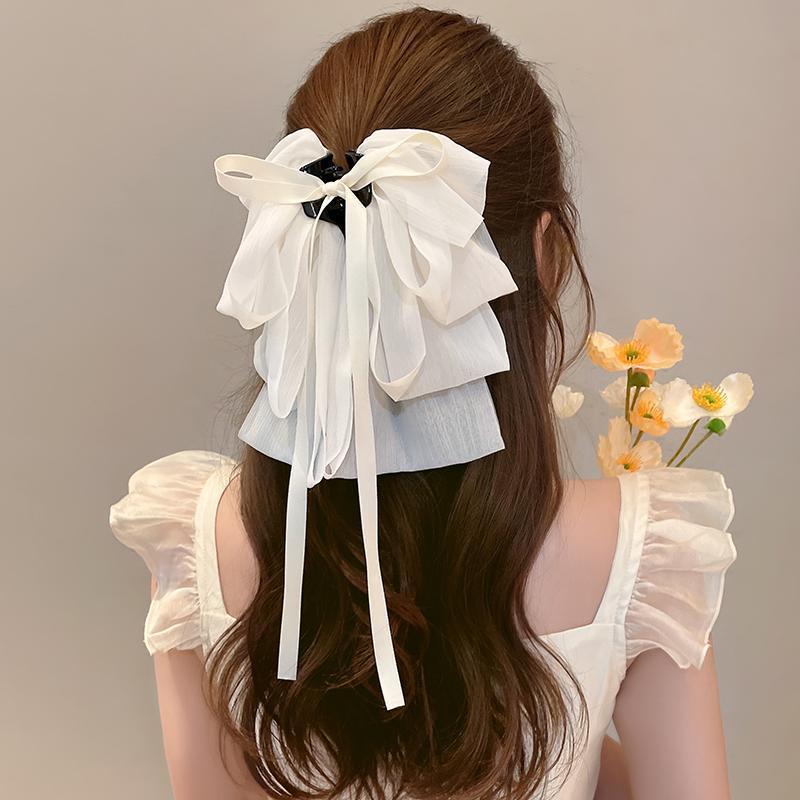 Horquilla de lazo grande con lazo de estilo francés elegante y suave para mujer, pinza para la cabeza, horquilla para la cabeza