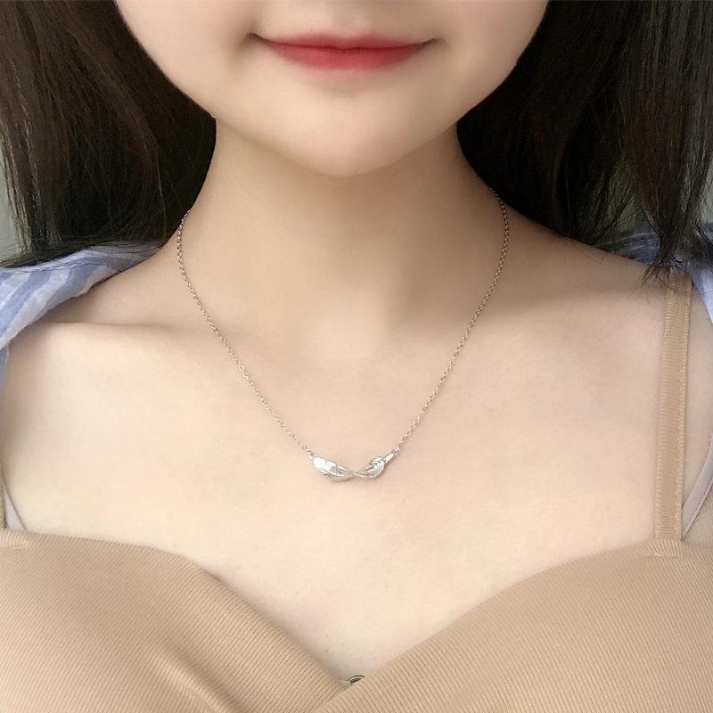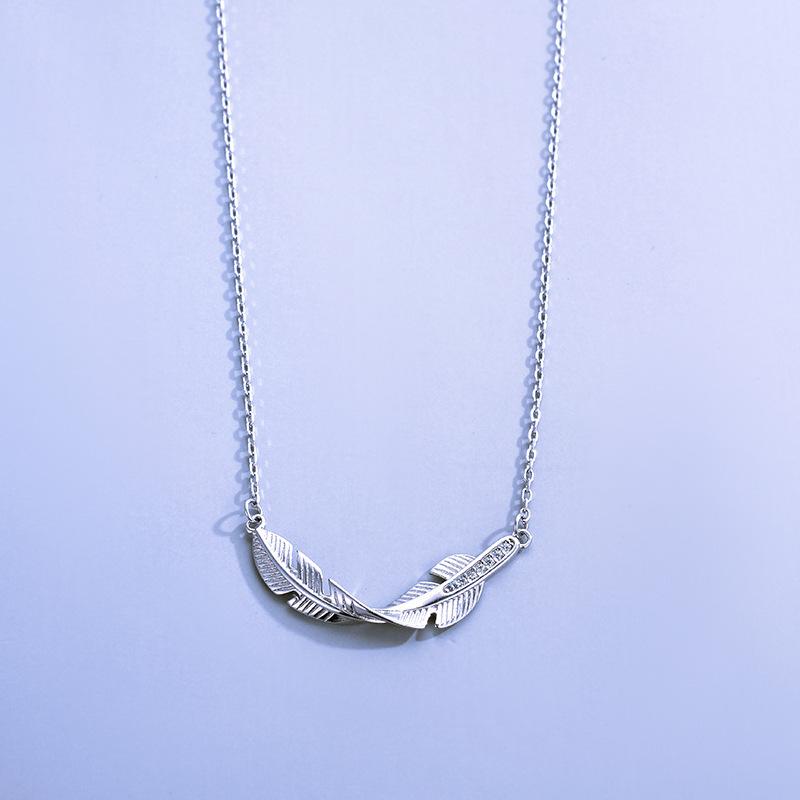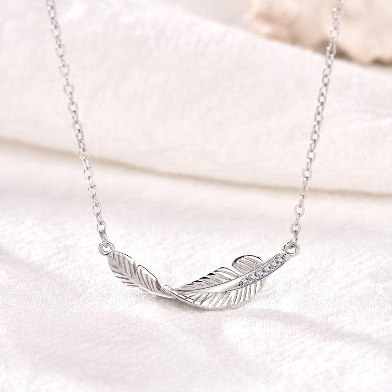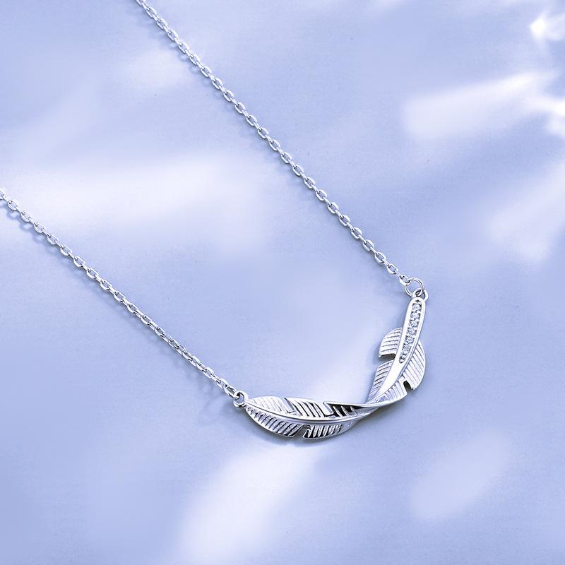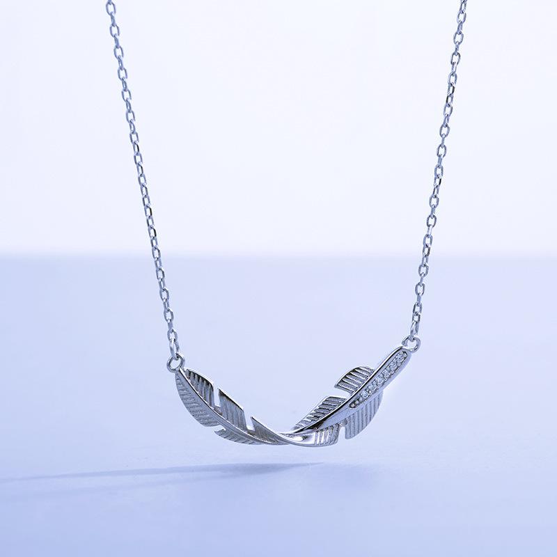 Joyería de plata s925 al por mayor de moda elegante hojas personalidad moderno simple elegante collar de plumas para mujer