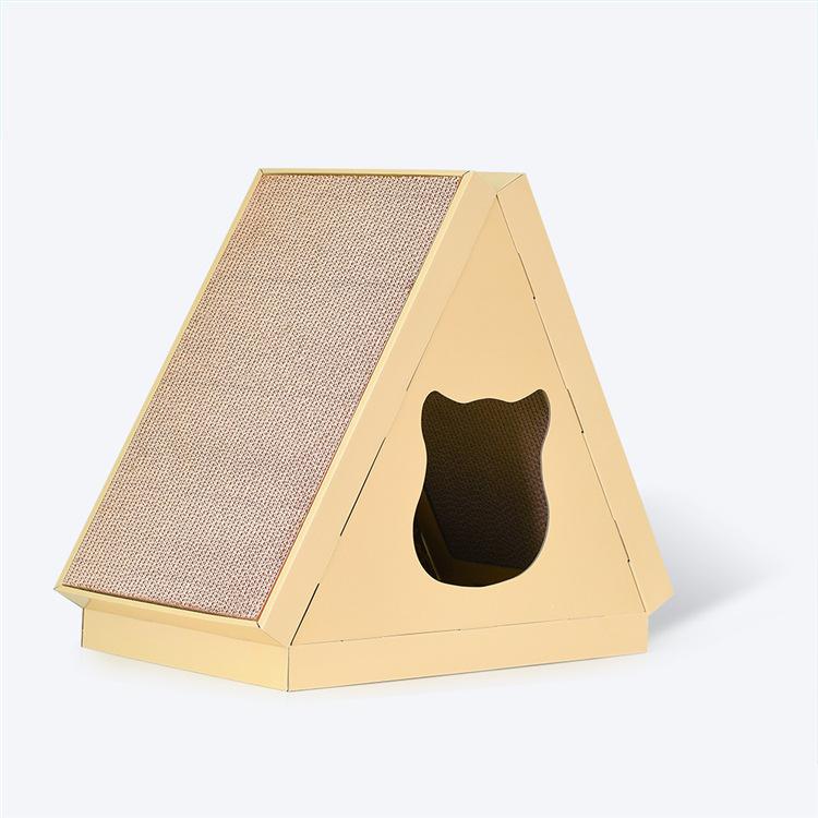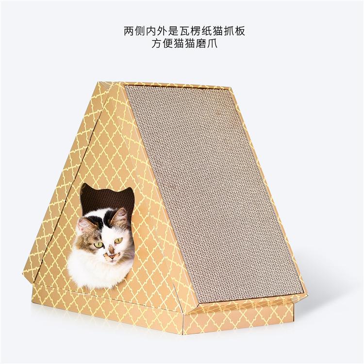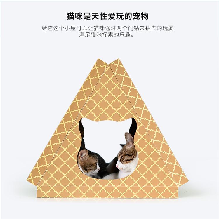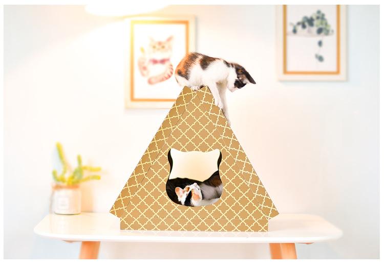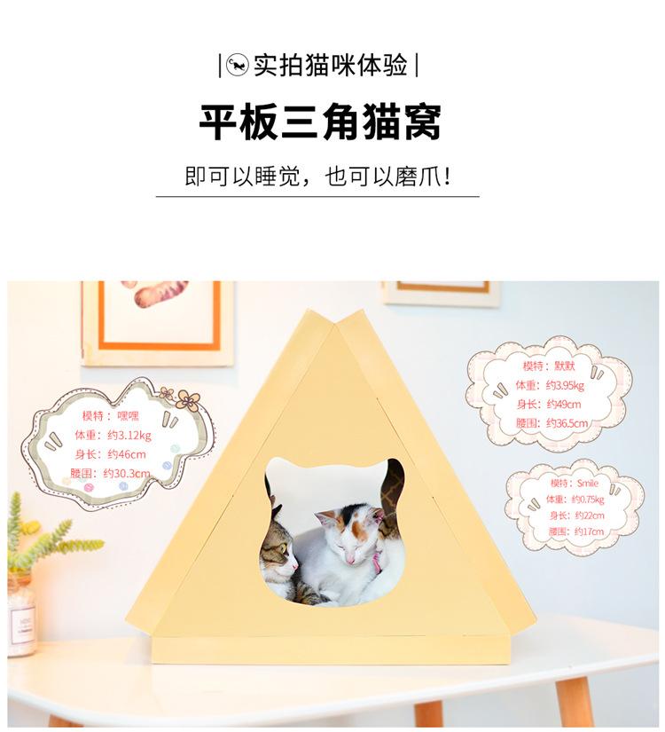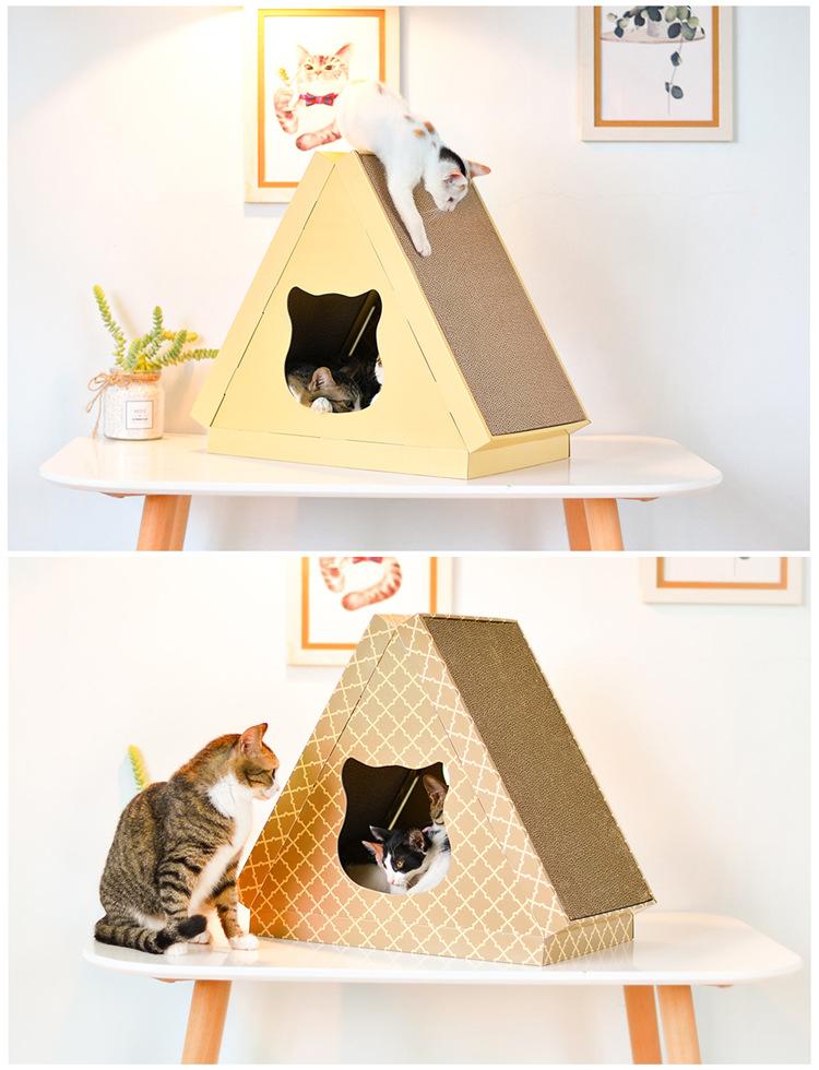 Casa para gatos plana de triángulo grande, tablero rascador para gatos, juguete para pata de gato, nido triangular cálido para gatos